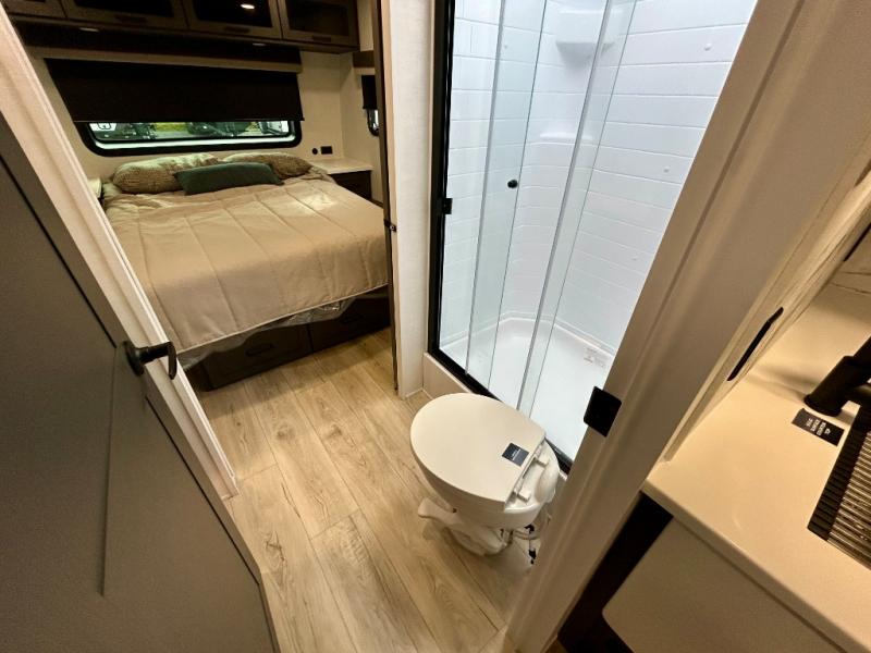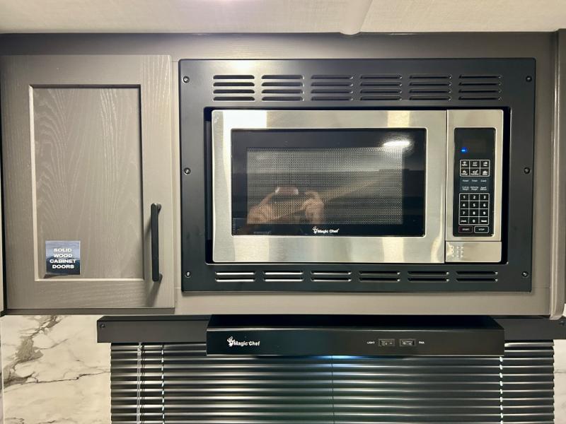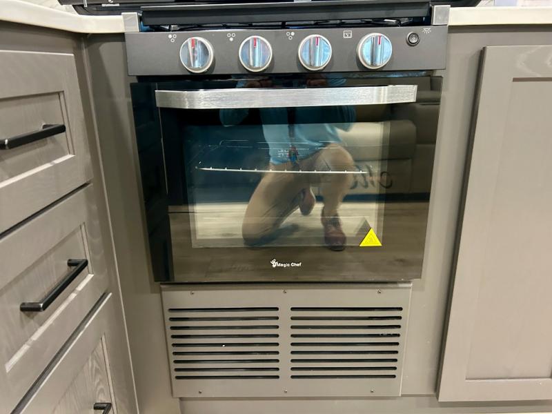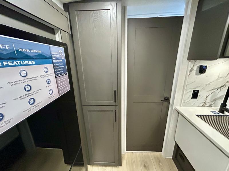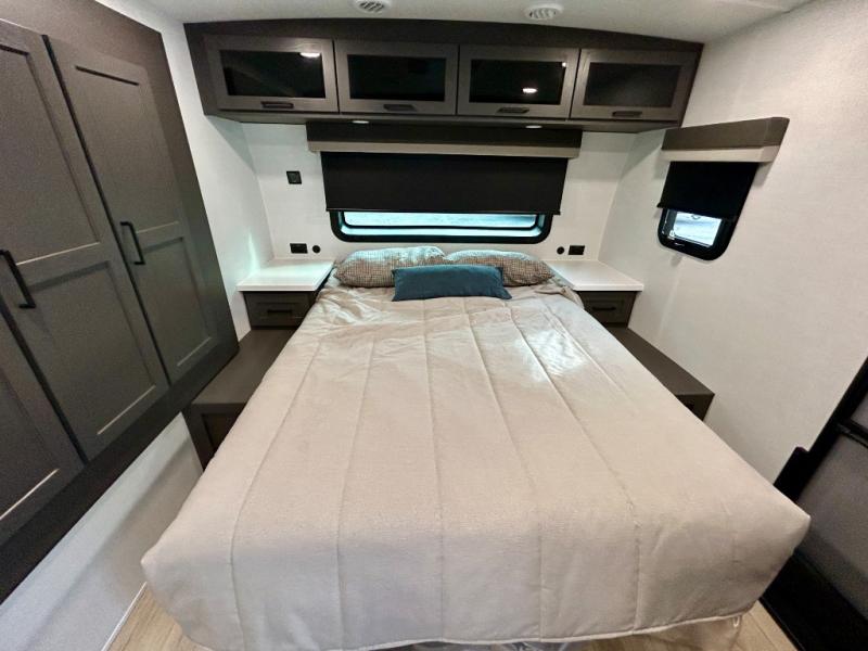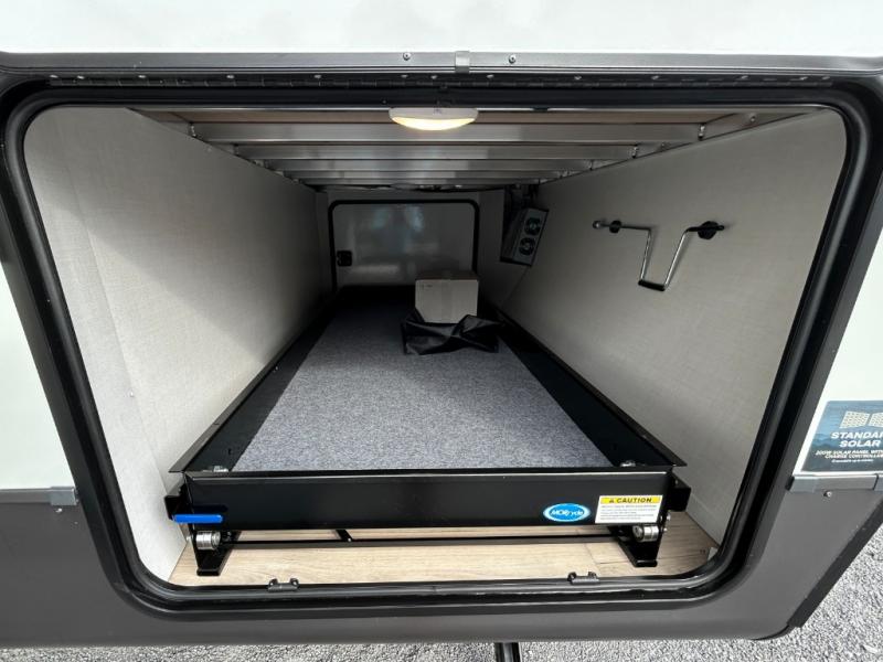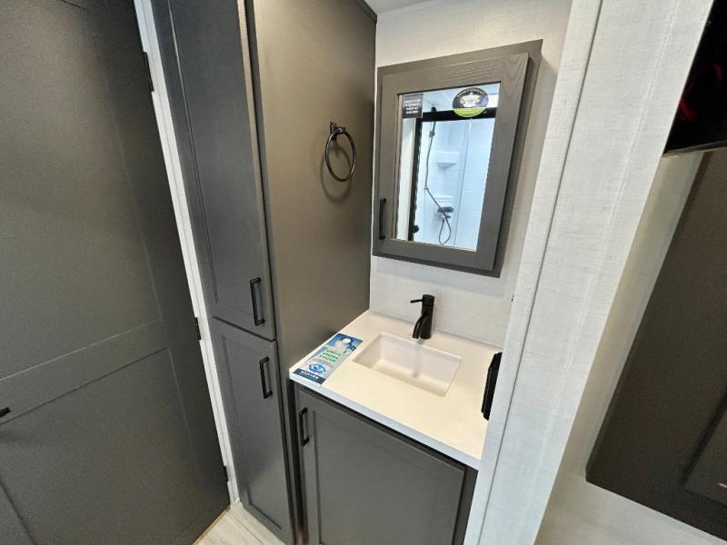 It will be so easy to enjoy time at the campground in this cozy travel trailer. The full kitchen includes a three burner gas oven, a microwave oven, and a 12V refrigerator to cook and store food, and the pantry will let you stock up on snacks. Your crew can get comfortable on the theater seat or around the rear U-shaped dinette, and there is a smart TV here to make it a movie night. The walk-thru bath will let you freshen up each day, and the queen bed in the front bedroom is sure to bring comfort. You will also find one of the dual entry doors here for convenience plus a wardrobe slide out for more storage and floor space. The exterior is just as accommodating with its pass-thru storage, 2" receiver hitch, and 21' power awning!