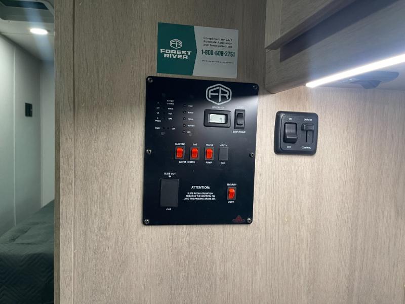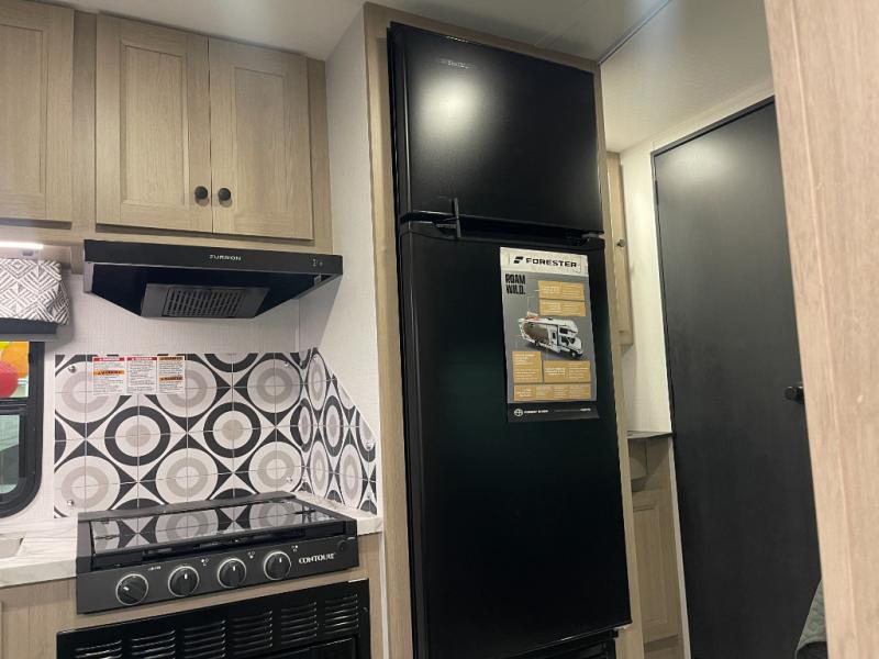 With any Forester LE Class C gas motorhome by Forest River, you will enjoy premier features such as the backup camera/side view cameras with a 3-way monitor, the Winegard Air 360+ digital antenna, and the 15,000 BTU ceiling ducted, ultra quiet roof air with a heat pump when traveling during the warmer months. The exterior includes aluminum framed laminated sidewalls, gel coat exterior fiberglass, a one-piece fiberglass front cap, and slide room toppers. Some of the interior top features are the Maxx Air multi-speed power fan with a cover in the kitchen, the high pressure oxygen infused shower head, and the blackout roller shades for a good night's sleep. Make your selection today!