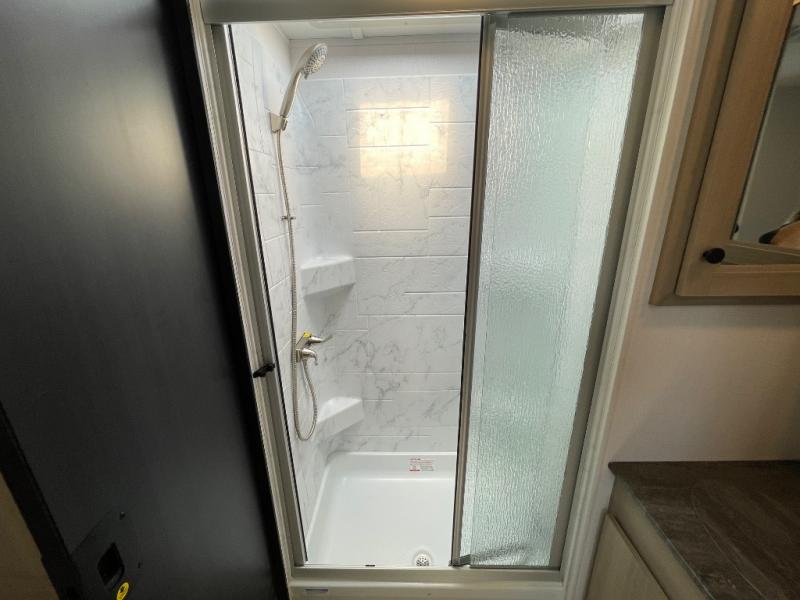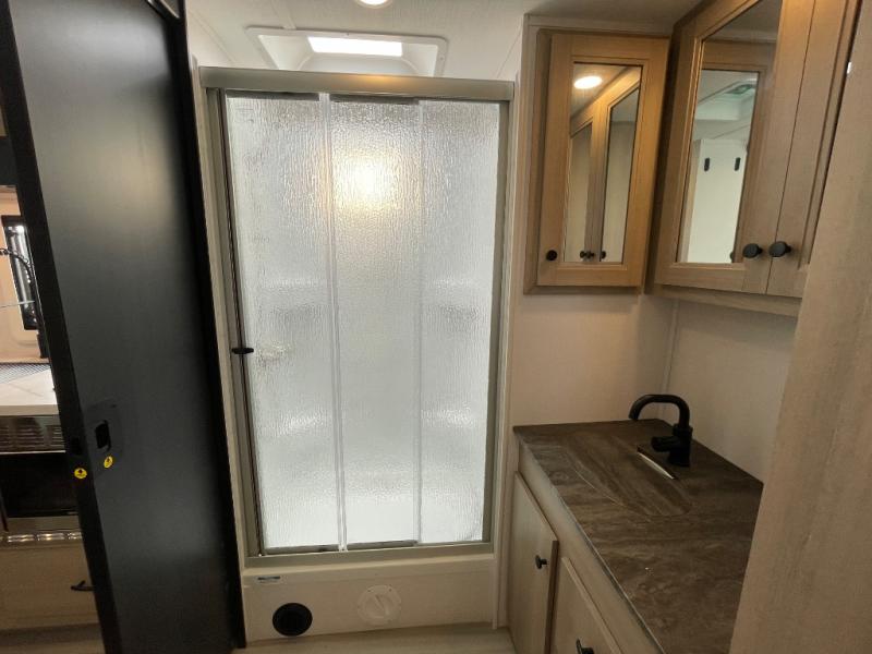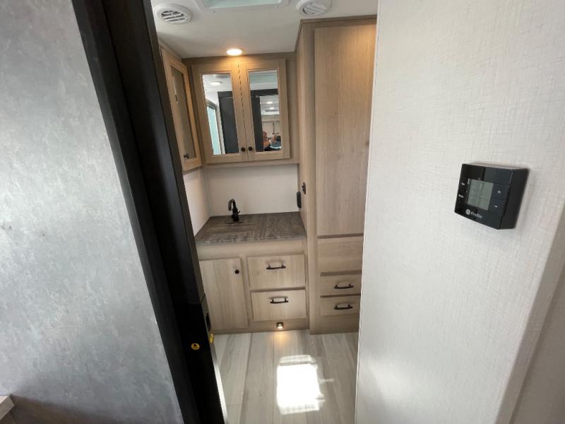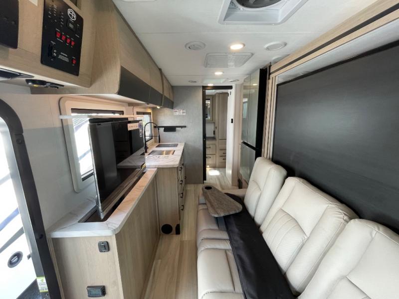 With any Forester MBS Class C diesel motorhome by Forest River, you will have a diesel Mercedes chassis, a 10" touch screen with CarPlay/Android radio with USB and Bluetooth, plus a backup camera with side view cameras and 3-way monitor to easily maneuver the road. The Gateway 4G WiFi capability and Winegard Air 360+ digital antenna will help keep you connected, and the optional 190W charging system gives you the option to go off-grid if you choose. The spacious living area and well-appointed décor will make you feel at home, plus the bathroom's motion sensor light and oxygen-infused shower head with a flexible extension will provide the comfort and style you are wanting in your next RV!