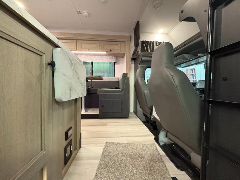 With any Forester Class C gas motorhome by Forest River, you will enjoy comfort at every turn! They offer a smooth ride with the EZ Ryde premium suspension system, and the ultra-leather captain's seats will ensure comfort wherever you go. There are heated, enclosed holding tanks and valves plus block foam insulation to enjoy four-seasons camping, and the gel coat exterior fiberglass is slick and easy to keep clean. A keyless entry comes standard for your convenience, along with a color back-up camera and side view cameras with a 3-way monitor for added safety when parking. The Forester motorhomes also include a Maxx Air multi-speed power fan with a cover, a shower skylight, a cordless 12V charging plate, plus black out roller shades for privacy any time.