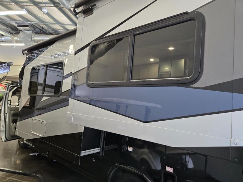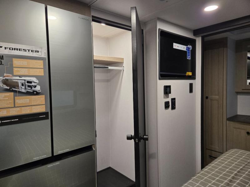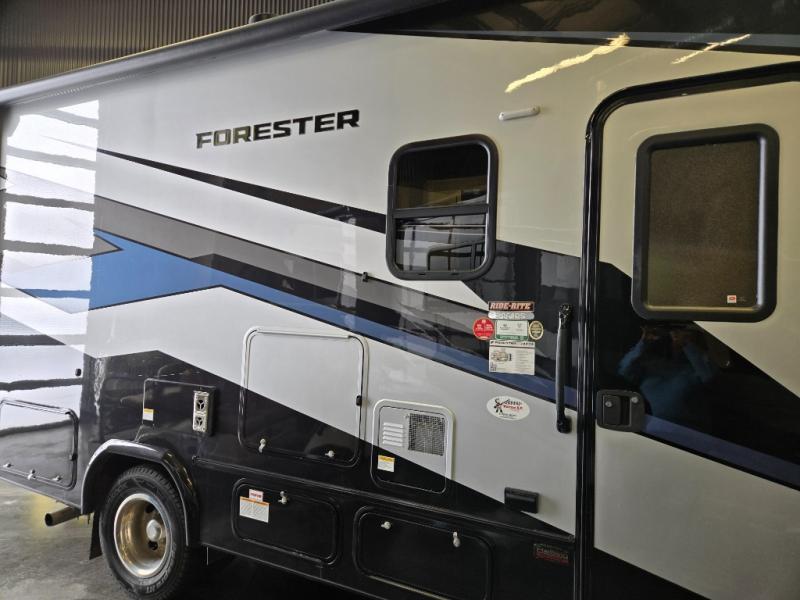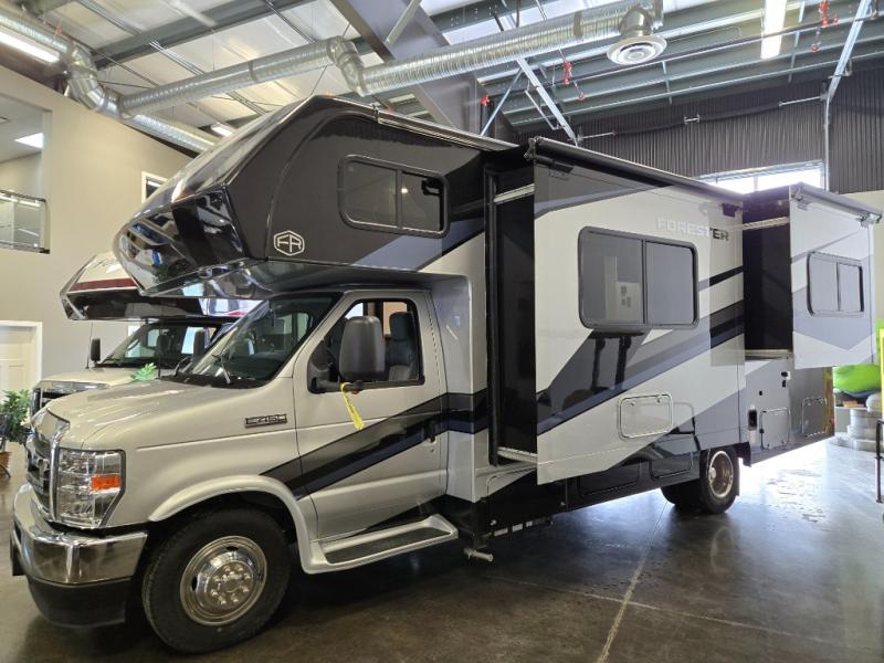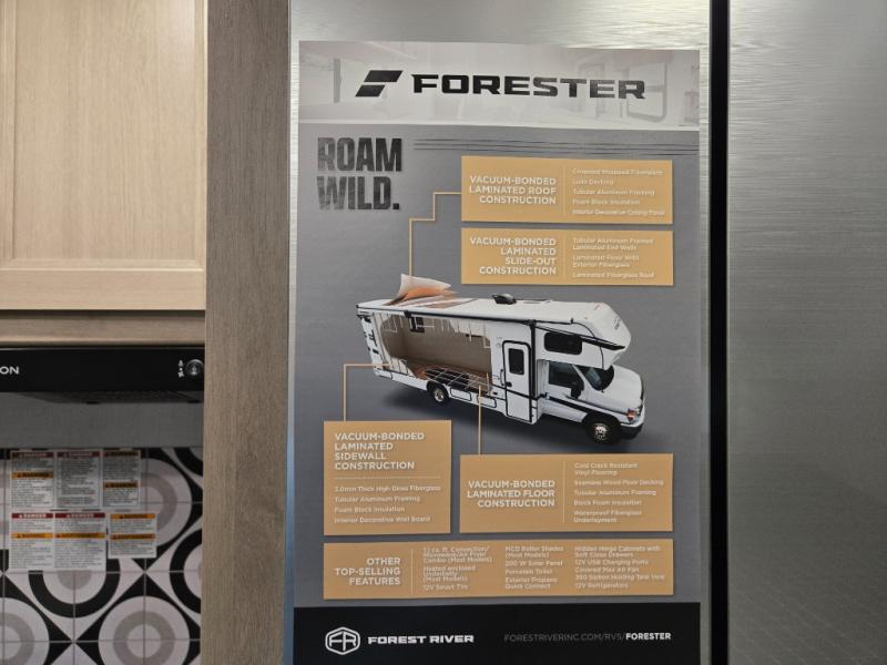 With any Forester Class C gas motorhome by Forest River, you will enjoy comfort at every turn! They offer a smooth ride with the EZ Ryde premium suspension system, and the ultra-leather captain's seats will ensure comfort wherever you go. There are heated, enclosed holding tanks and valves plus block foam insulation to enjoy four-seasons camping, and the gel coat exterior fiberglass is slick and easy to keep clean. A keyless entry comes standard for your convenience, along with a color back-up camera and side view cameras with a 3-way monitor for added safety when parking. The Forester motorhomes also include a Maxx Air multi-speed power fan with a cover, a shower skylight, a cordless 12V charging plate, plus black out roller shades for privacy any time.