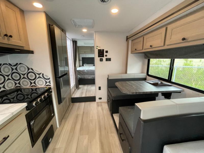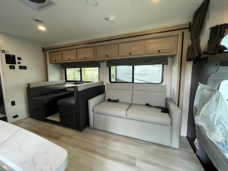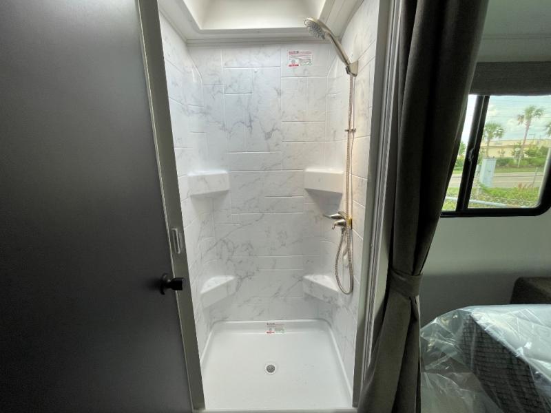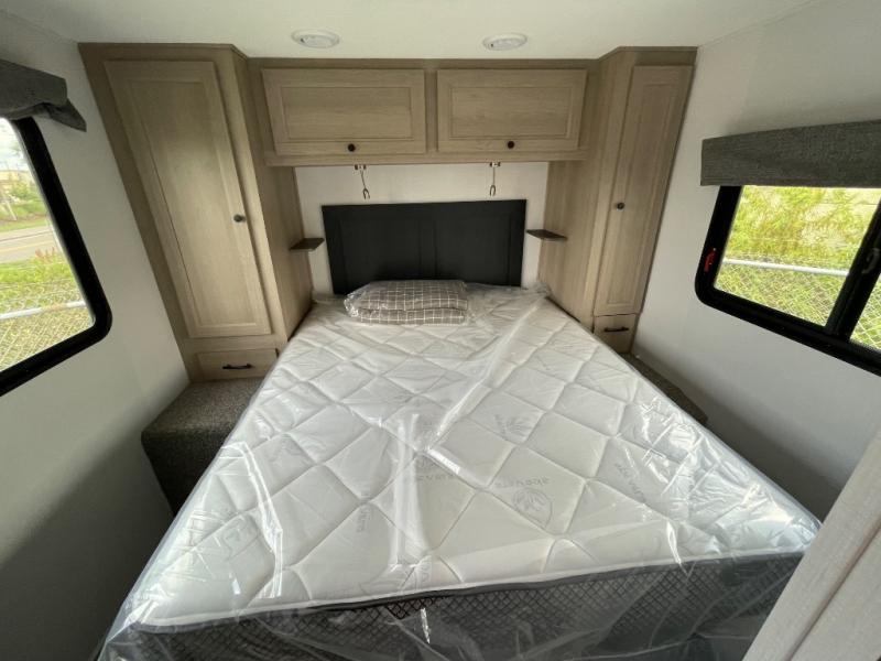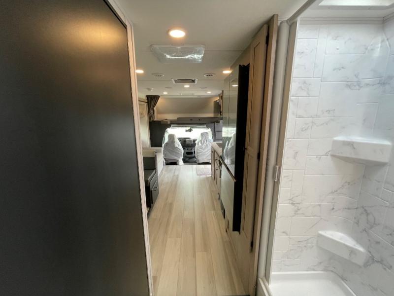 With any Forester LE Class C gas motorhome by Forest River, you will enjoy premier features such as the backup camera/side view cameras with a 3-way monitor the, Winegard Air 360+ digital antenna, and the 15,000 BTU ceiling ducted, ultra quiet roof air with a heat pump when traveling during the warmer months. The exterior includes aluminum framed laminated sidewalls, gel coat exterior fiberglass, a one-piece fiberglass front cap, and slide room toppers. Some of the interior top features are the Maxx Air multi-speed power fan with a cover in the kitchen, the high pressure oxygen infused shower head, and the blackout roller shades for a good night's sleep. Make your selection today!