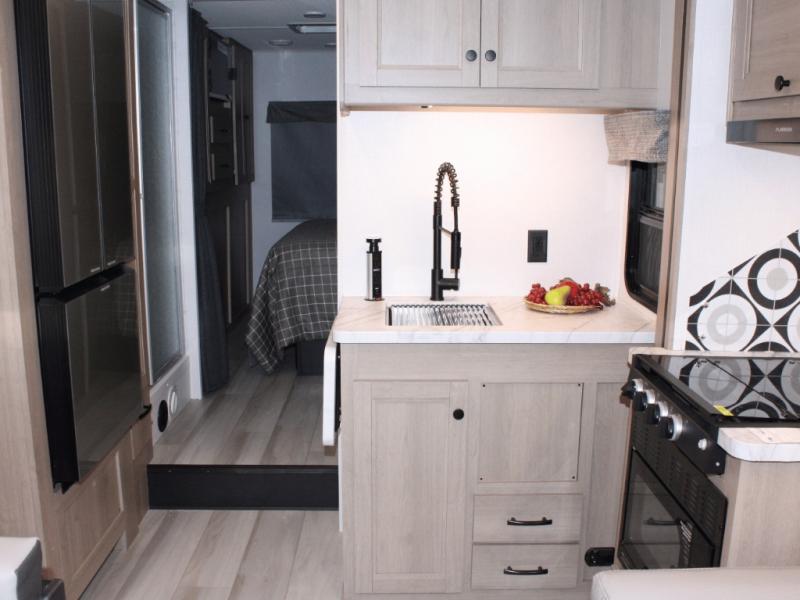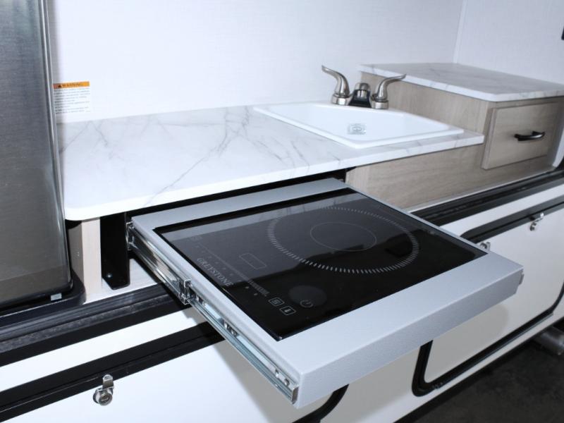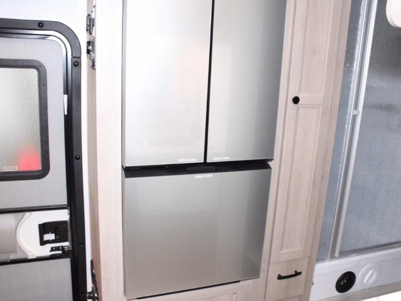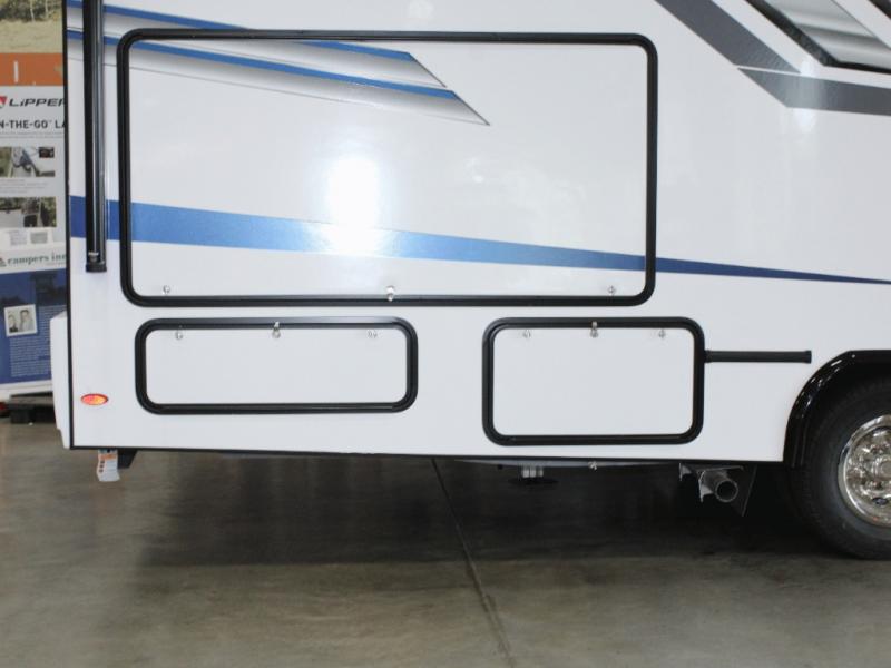 Ready for adventure with a premium camping package, auto-leveling jacks, and a powerful 12V solar charging system!