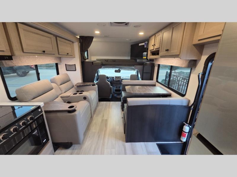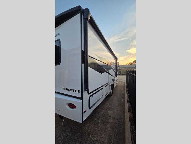 With any Forester Class C gas motorhome by Forest River, you will enjoy comfort at every turn! They offer a smooth ride with the EZ Ryde premium suspension system, and the ultra-leather captain's seats will ensure comfort wherever you go. There are heated, enclosed holding tanks and valves plus block foam insulation to enjoy four-seasons camping, and the gel coat exterior fiberglass is slick and easy to keep clean. A keyless entry comes standard for your convenience, along with a color back-up camera and side view cameras with a 3-way monitor for added safety when parking. The Forester motorhomes also include a Maxx Air multi-speed power fan with a cover, a shower skylight, a cordless 12V charging plate, plus black out roller shades for privacy any time.