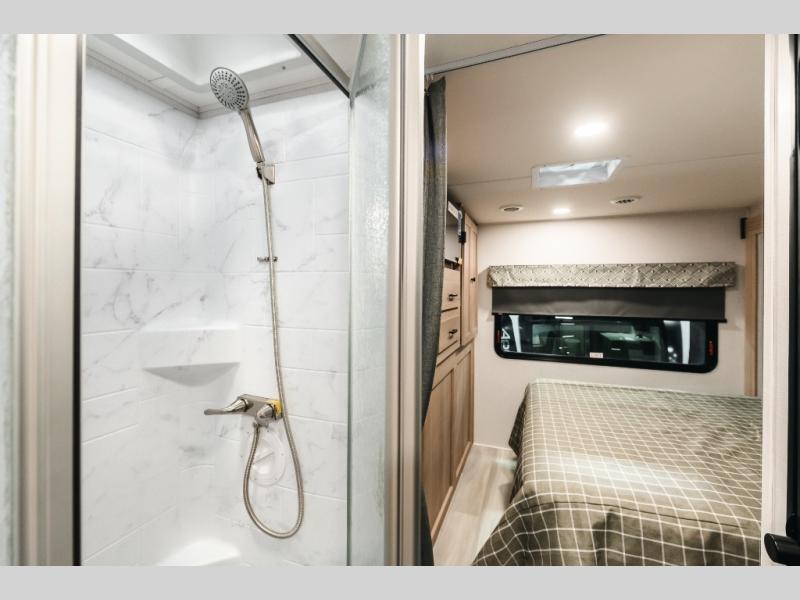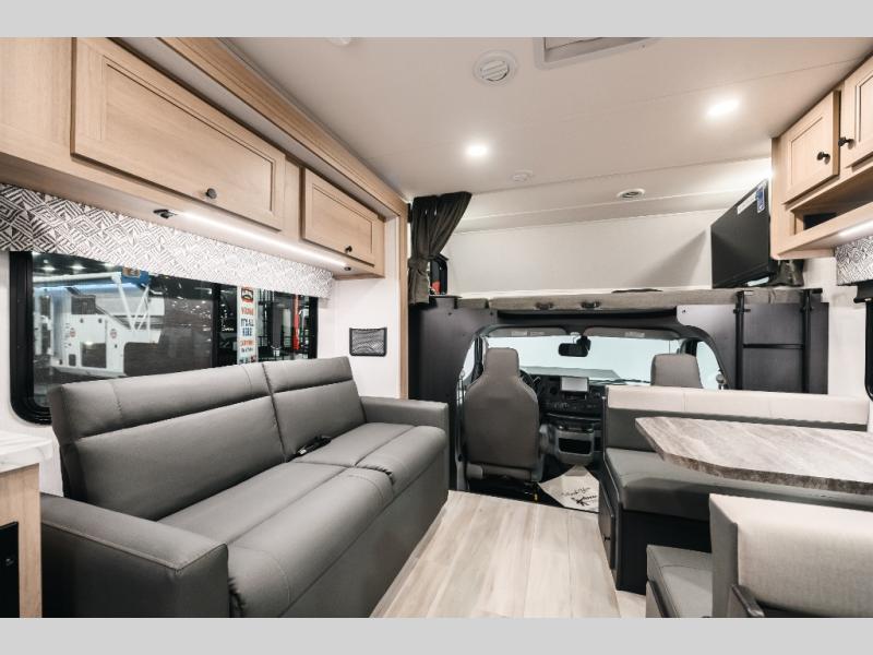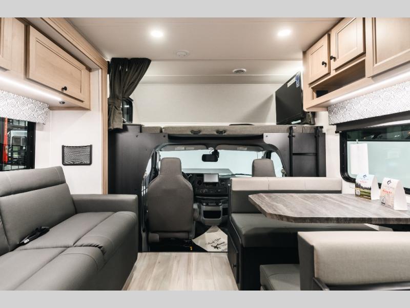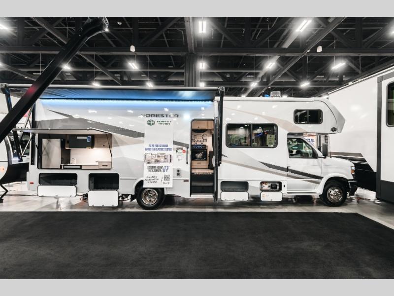 With any Forester Class C gas motorhome by Forest River, you will enjoy comfort at every turn! They offer a smooth ride with the EZ Ryde premium suspension system, and the ultra-leather captain's seats will ensure comfort wherever you go. There are heated, enclosed holding tanks and valves plus block foam insulation to enjoy four-seasons camping, and the gel coat exterior fiberglass is slick and easy to keep clean. A keyless entry comes standard for your convenience, along with a color back-up camera and side view cameras with a 3-way monitor for added safety when parking. The Forester motorhomes also include a Maxx Air multi-speed power fan with a cover, a shower skylight, a cordless 12V charging plate, plus black out roller shades for privacy any time.