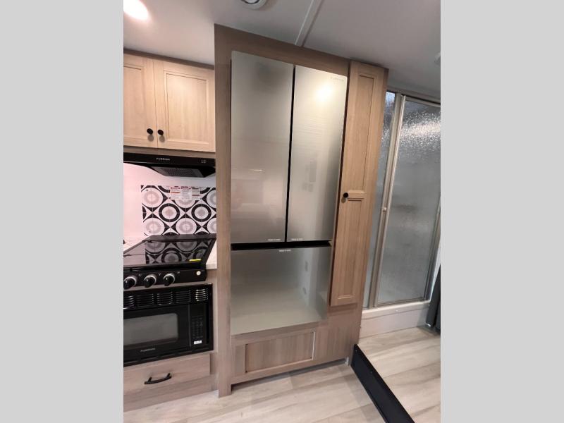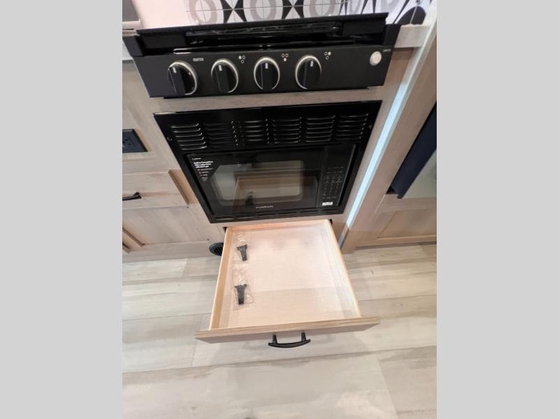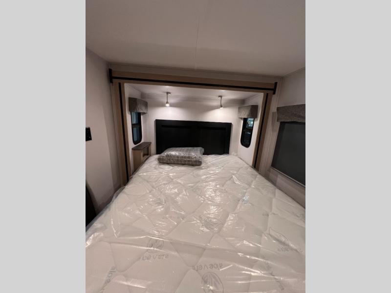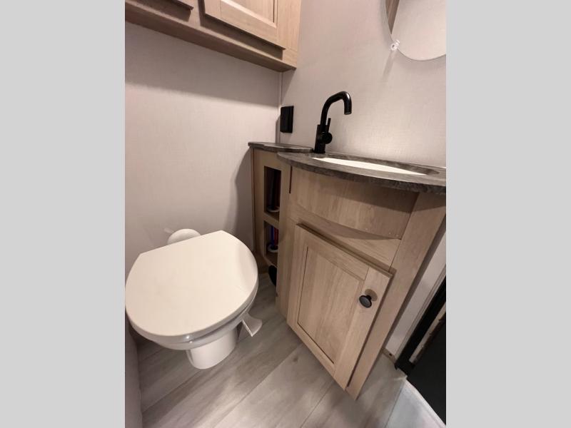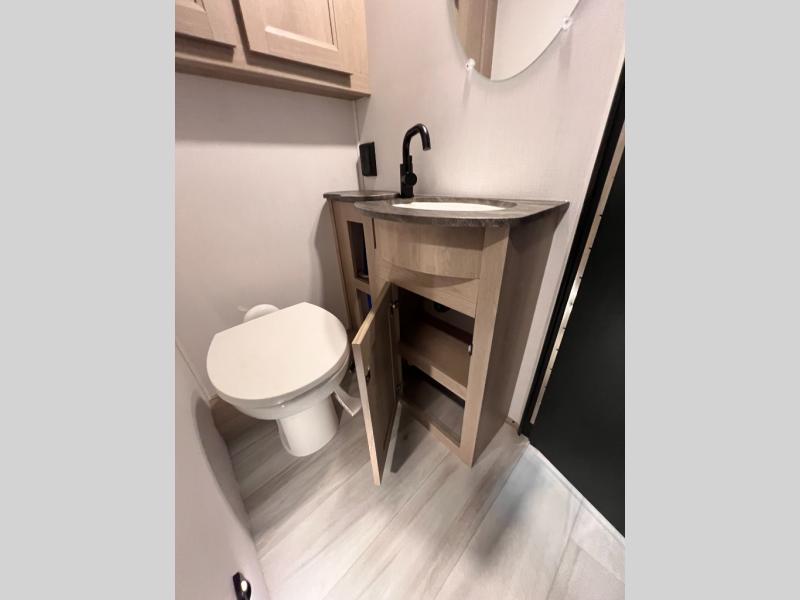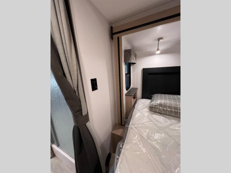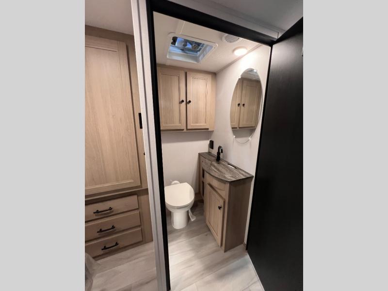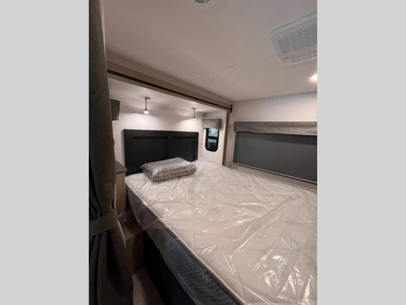 Enjoy home-cooked meals wherever you roam with a 10.7 cu. ft. 12V refrigerator, three-burner cooktop, flip-up countertop, and 1.3 cu. ft. convection microwave. Every detail is designed to make cooking easy and efficient while you’re on the move. The separated bathroom offers a 24" x 36" shower across from a private toilet and sink area, giving you more flexibility and privacy. In the rear, the queen bed slide-out creates a cozy retreat, complete with dual wardrobes, a TV/linen cabinet, and smart storage options. Bring the fun outside with the optional 12V exterior TV and relax under the 15' 6" power awning. Built for year-round use, the Forester features heated, enclosed holding tanks, block foam insulation, and a sleek gel coat fiberglass exterior that’s easy to clean and built to last.