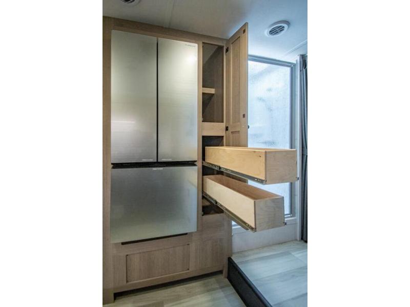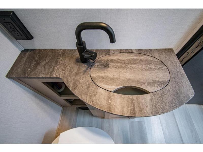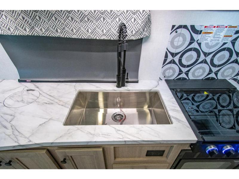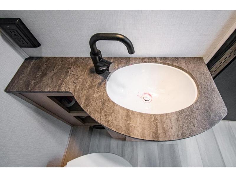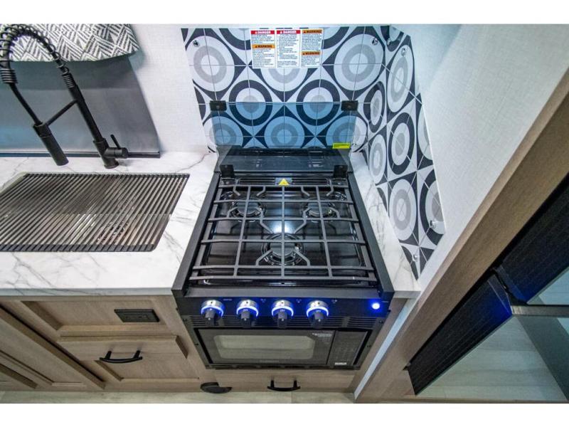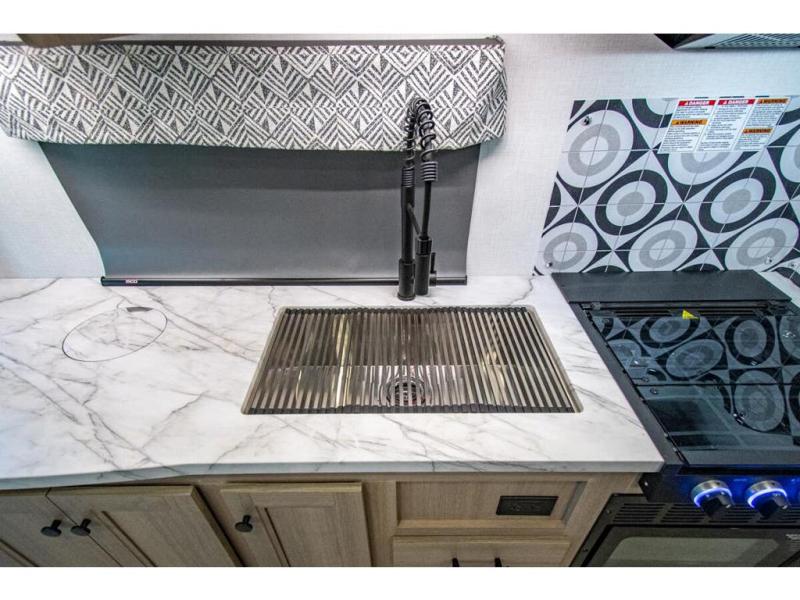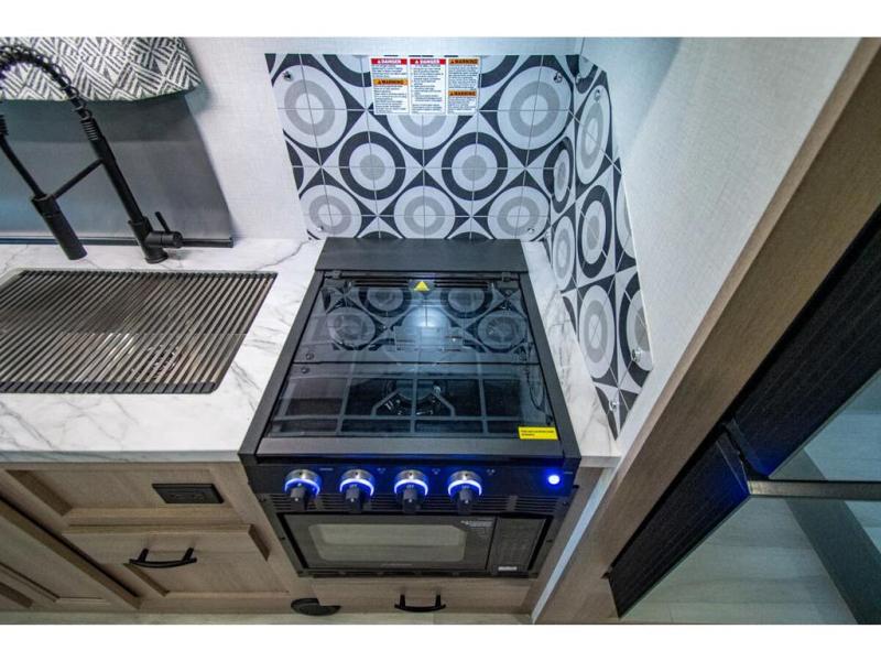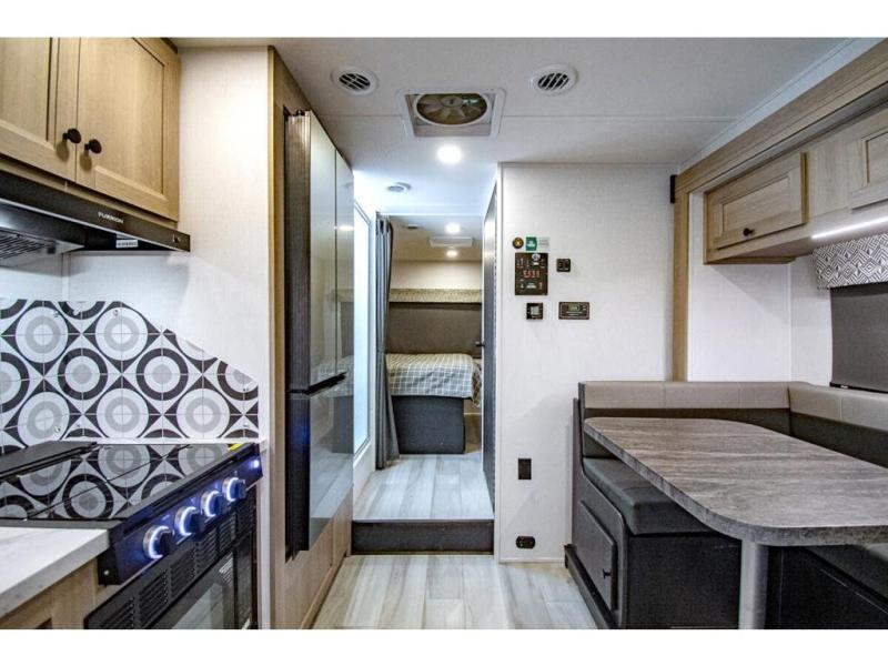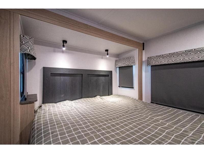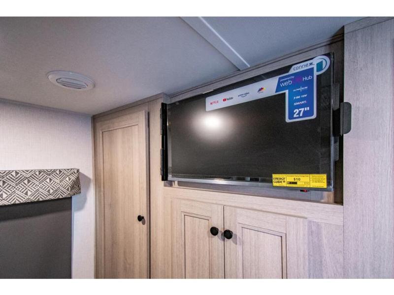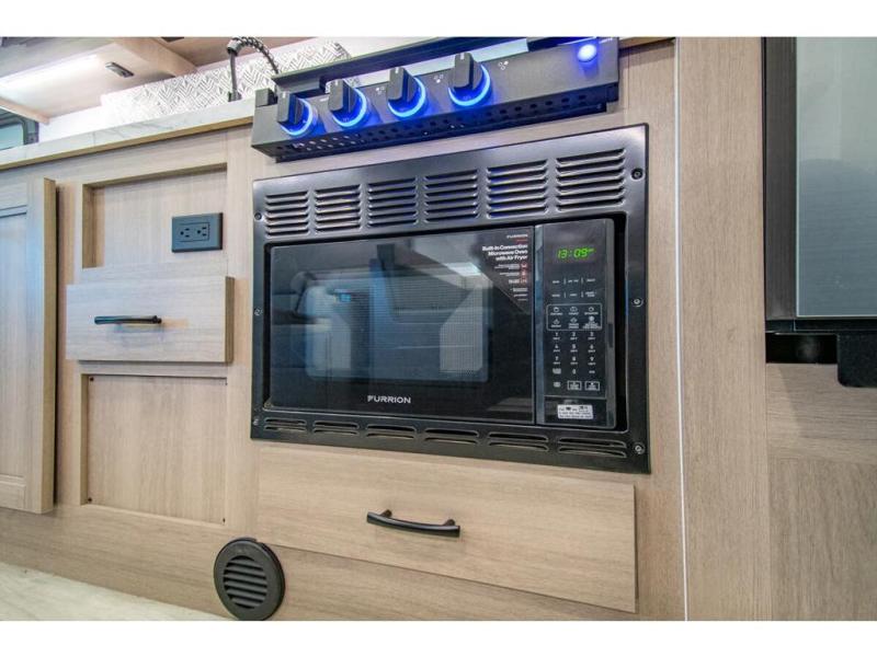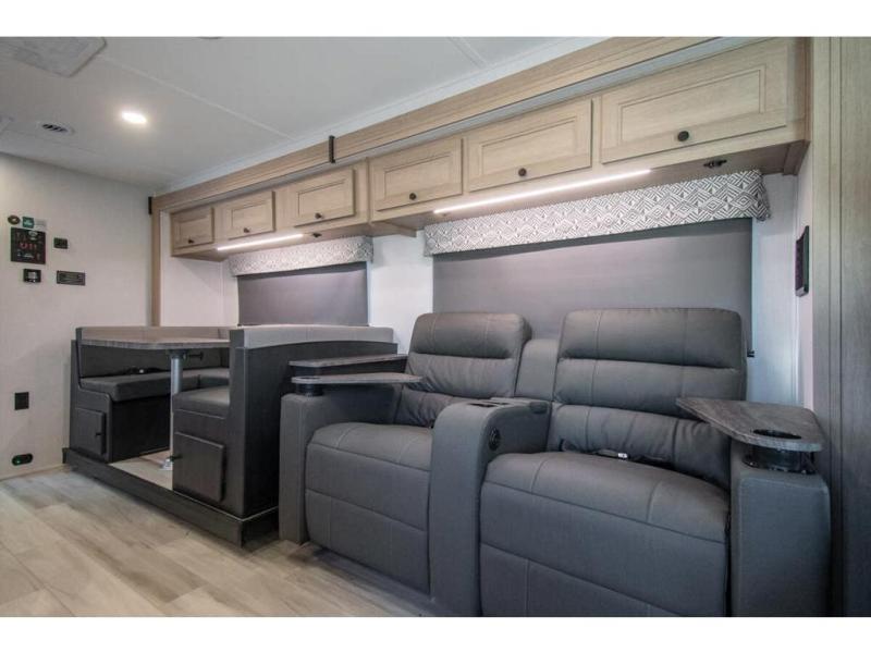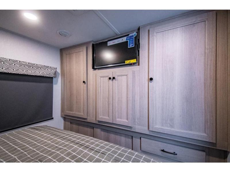 Escape the hustle and bustle of everyday life with this motorhome! It features a 60" x 80" bunk over cab mat which can be switched out for an optional Trekker cap with a built-in entertainment center. The sofa and U-shaped dinette slide offer comfortable places to enjoy meals, socialize, and even sleep once converted. Prepare your best meals with the 10.7 cu. ft. 12V refrigerator, the three burner cooktop, the flip-up countertop, and even the 1.3 cu. ft. undermount convection microwave. The separated bathroom has a 24" x 36" shower across from a toilet with a sink and countertop space, plus it leads directly into the rear private bedroom which has a 60" x 74" queen bed slide across from a linen/12V TV area with wardrobes on either side. You can even add an optional outside 12V TV and stay protected by the 15' 6" power awning!