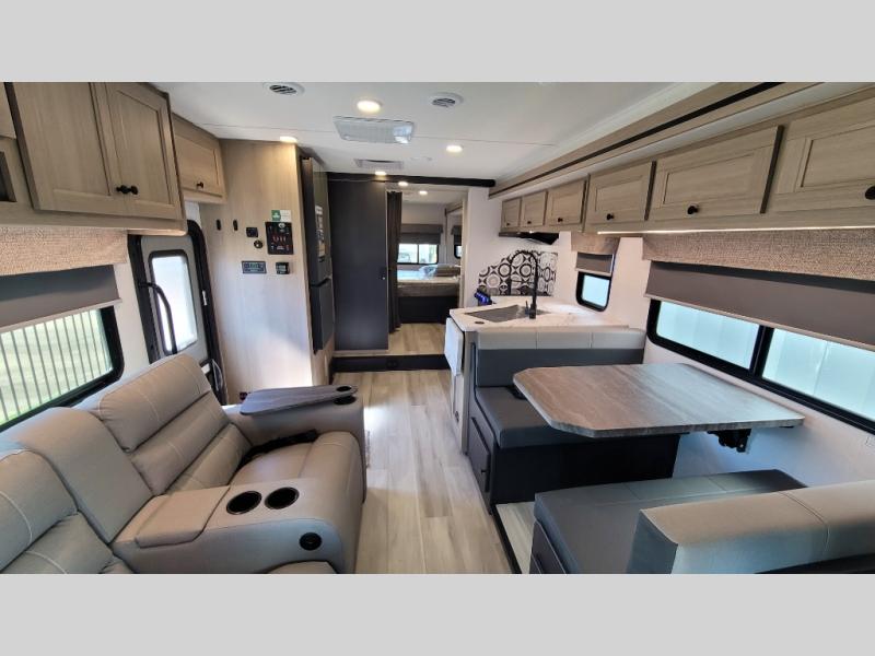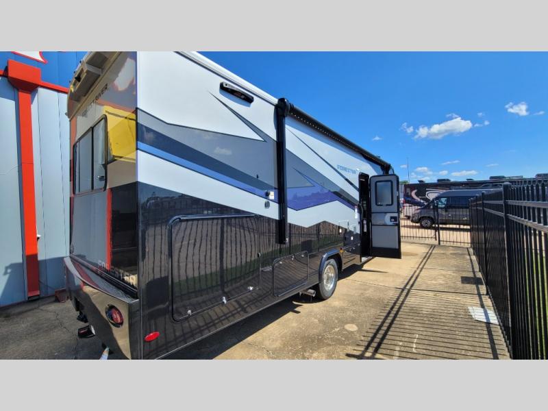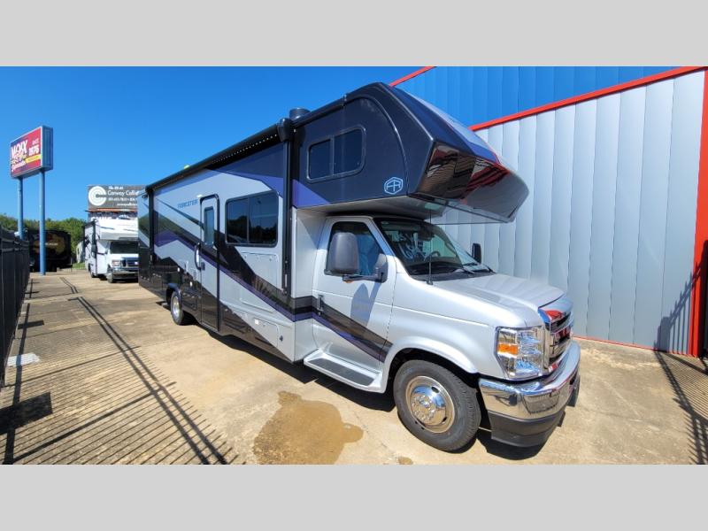 With any Forester Class C gas motorhome by Forest River, you will enjoy comfort at every turn! They offer a smooth ride with the EZ Ryde premium suspension system, and the ultra-leather captain's seats will ensure comfort wherever you go. There are heated, enclosed holding tanks and valves plus block foam insulation to enjoy four-seasons camping, and the gel coat exterior fiberglass is slick and easy to keep clean. A keyless entry comes standard for your convenience, along with a color back-up camera and side view cameras with a 3-way monitor for added safety when parking. The Forester motorhomes also include a Maxx Air multi-speed power fan with a cover, a shower skylight, a cordless 12V charging plate, plus black out roller shades for privacy any time.