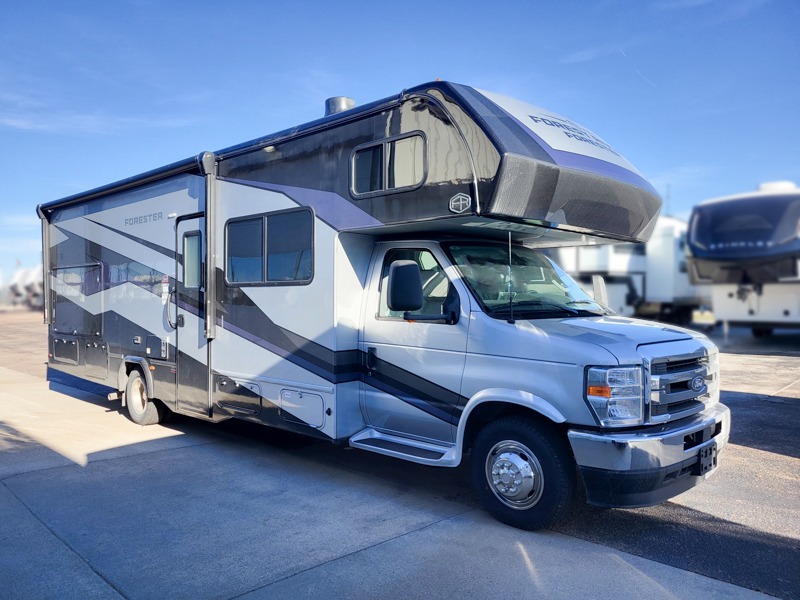 With any Forester Classic Class C gas motorhome by Forest River you will enjoy comfort at every turn! They offer a smooth ride with the EZ Ryde premium suspension system, and the ultra leather captain's seats will ensure comfort wherever you go. There are heated, enclosed holding tanks and valves plus block foam insulation to enjoy four-seasons camping, and the gel coat exterior fiberglass is slick and easy to keep clean. A keyless entry comes standard for your convenience, along with a color back-up camera and side view cameras with a 3-way monitor for added safety when parking. The Forester Classic motorhomes also include a Maxx Air multi-speed power fan with a cover, a shower skylight, a cordless 12V charging plate, plus black out roller shades for privacy any time.