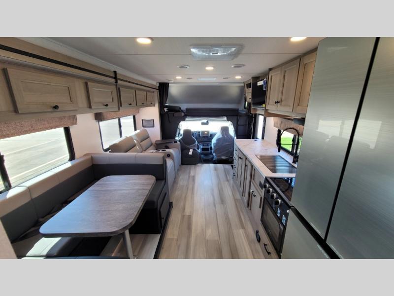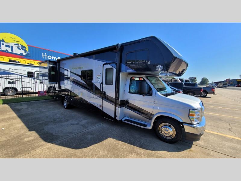 With any Forester Classic Class C gas motorhome by Forest River you will enjoy comfort at every turn! They offer a smooth ride with the EZ Ryde premium suspension system, and the ultra leather captain's seats will ensure comfort wherever you go. There are heated, enclosed holding tanks and valves plus block foam insulation to enjoy four-seasons camping, and the gel coat exterior fiberglass is slick and easy to keep clean. A keyless entry comes standard for your convenience, along with a color back-up camera and side view cameras with a 3-way monitor for added safety when parking. The Forester Classic motorhomes also include a Maxx Air multi-speed power fan with a cover, a shower skylight, a cordless 12V charging plate, plus black out roller shades for privacy any time.