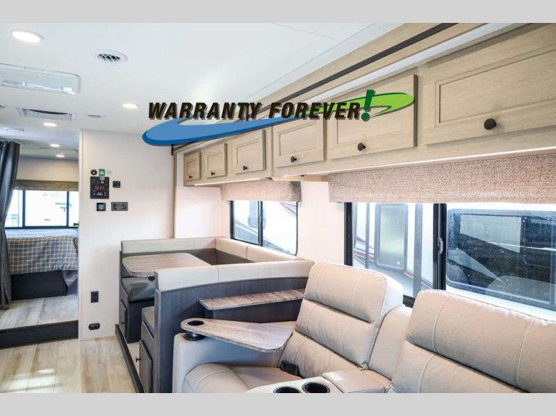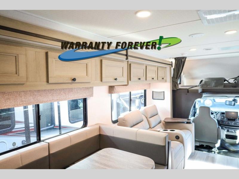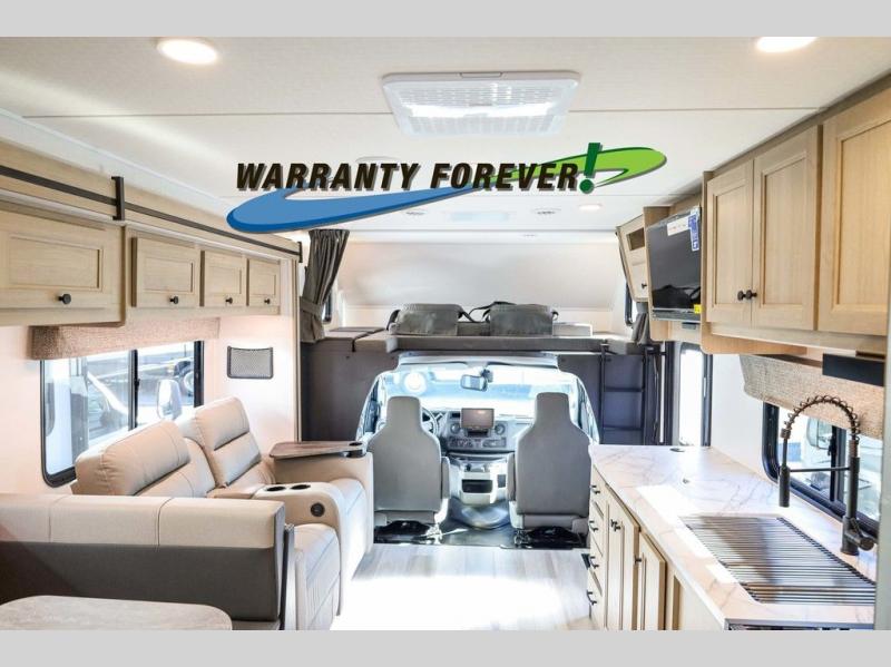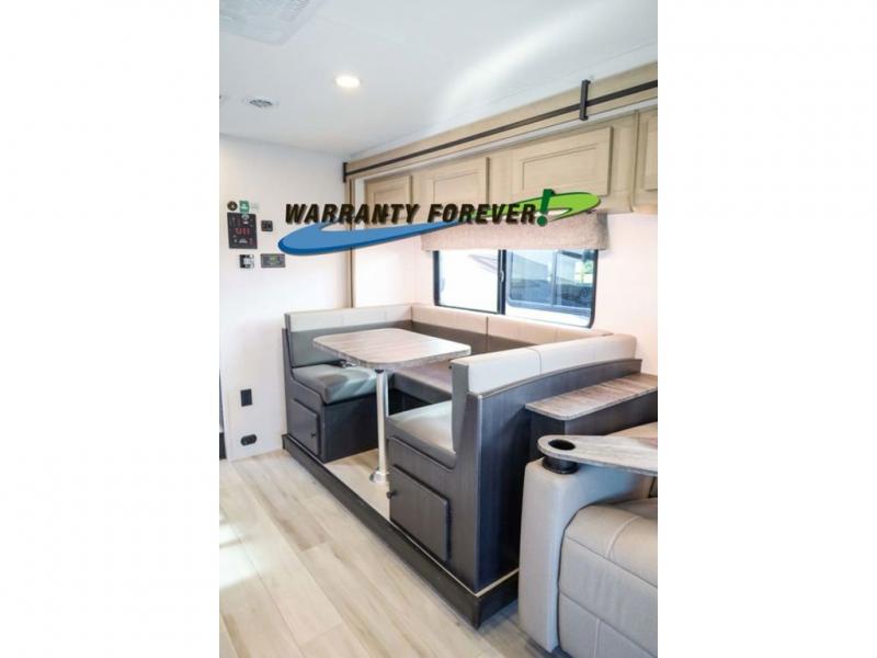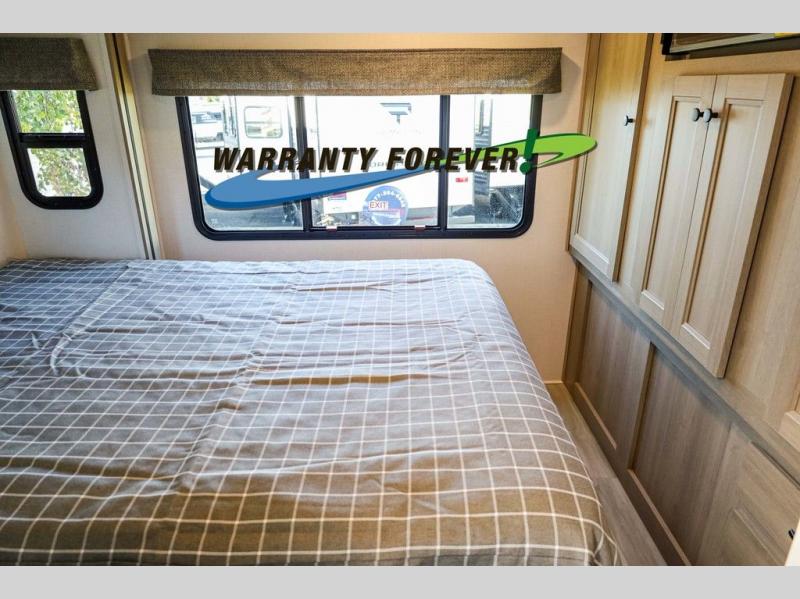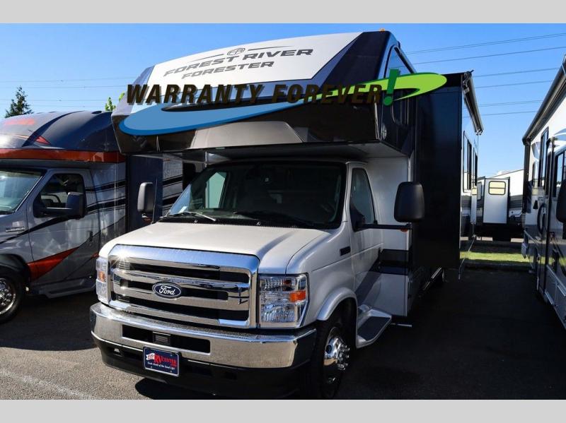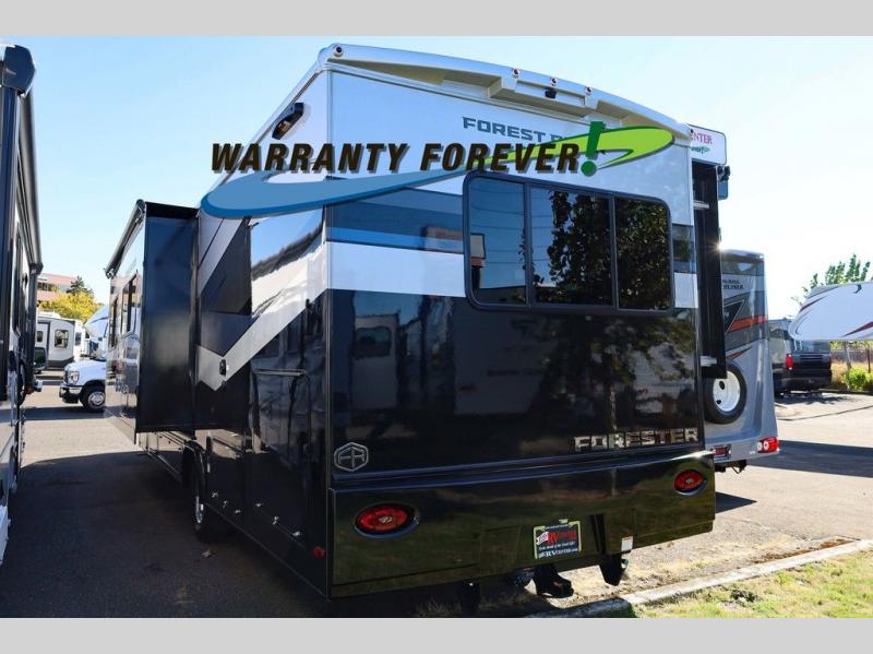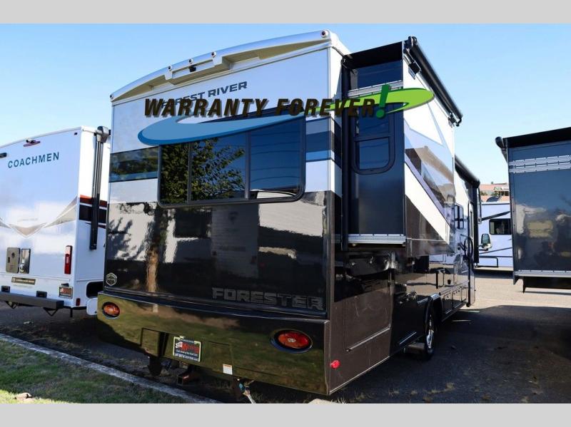 With any Forester Classic Class C gas motorhome by Forest River you will enjoy comfort at every turn! They offer a smooth ride with the EZ Ryde premium suspension system, and the ultra leather captain's seats will ensure comfort wherever you go. There are heated, enclosed holding tanks and valves plus block foam insulation to enjoy four-seasons camping, and the gel coat exterior fiberglass is slick and easy to keep clean. A keyless entry comes standard for your convenience, along with a color back-up camera and side view cameras with a 3-way monitor for added safety when parking. The Forester Classic motorhomes also include a Maxx Air multi-speed power fan with a cover, a shower skylight, a cordless 12V charging plate, plus black out roller shades for privacy any time.