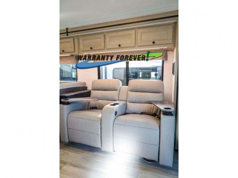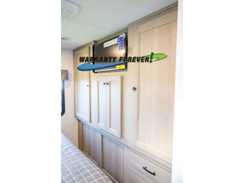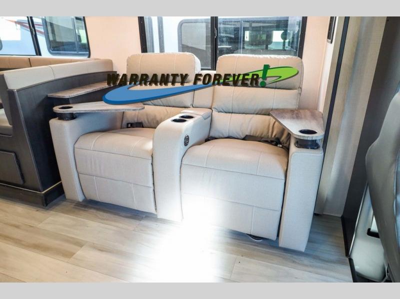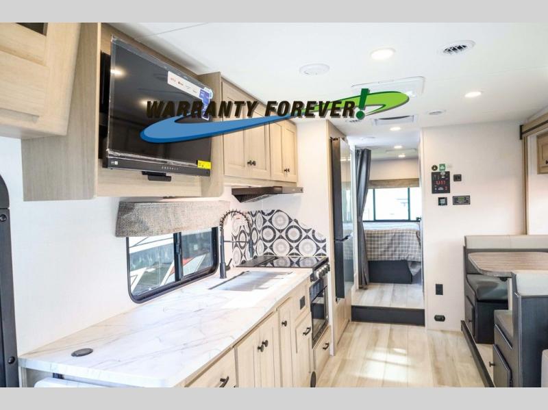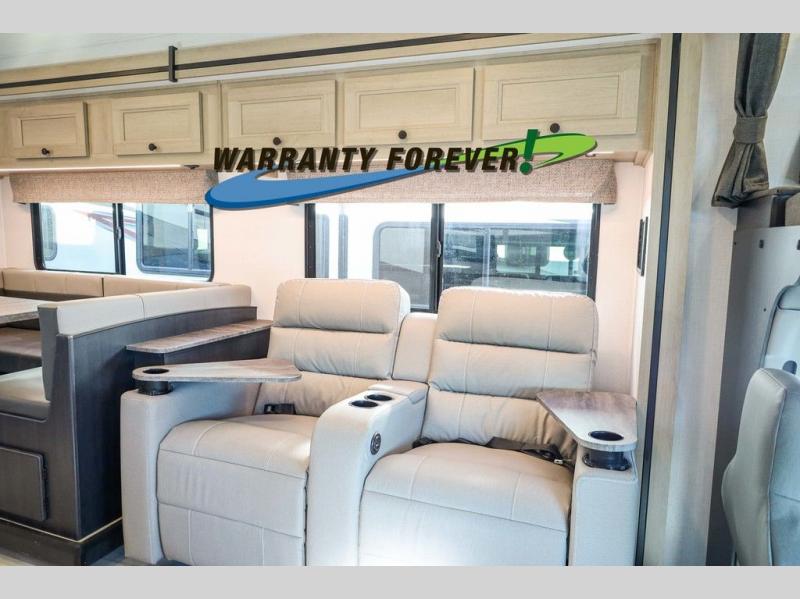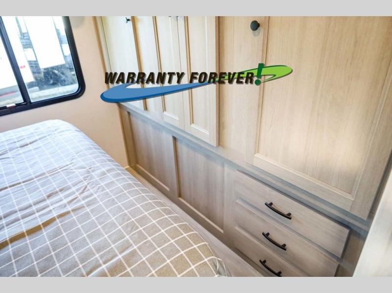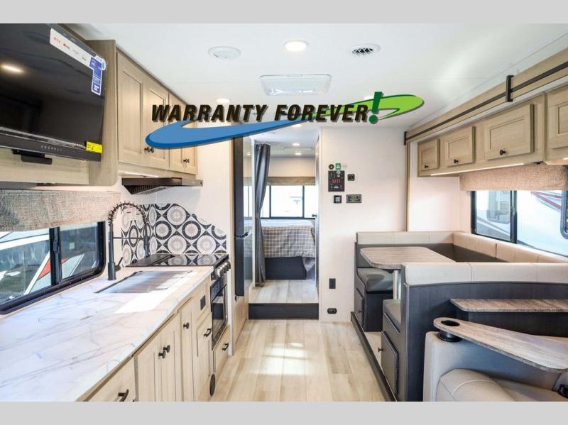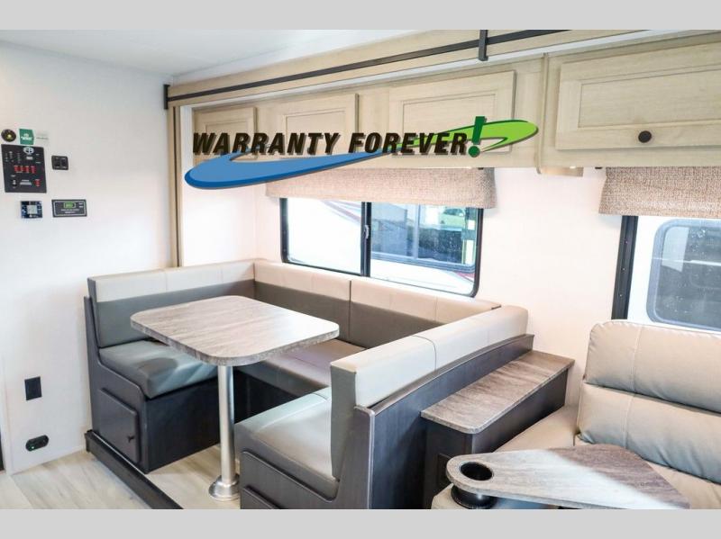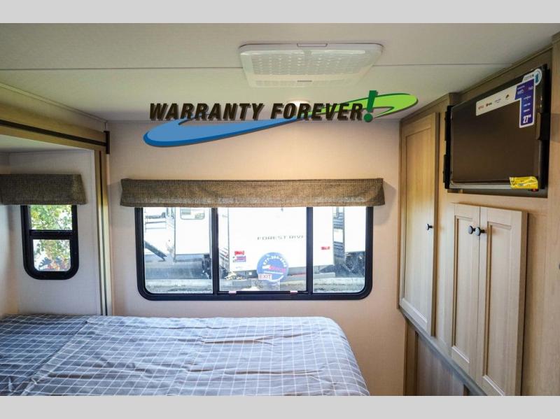 With any Forester Classic Class C gas motorhome by Forest River you will enjoy comfort at every turn! They offer a smooth ride with the EZ Ryde premium suspension system, and the ultra leather captain's seats will ensure comfort wherever you go. There are heated, enclosed holding tanks and valves plus block foam insulation to enjoy four-seasons camping, and the gel coat exterior fiberglass is slick and easy to keep clean. A keyless entry comes standard for your convenience, along with a color back-up camera and side view cameras with a 3-way monitor for added safety when parking. The Forester Classic motorhomes also include a Maxx Air multi-speed power fan with a cover, a shower skylight, a cordless 12V charging plate, plus black out roller shades for privacy any time.