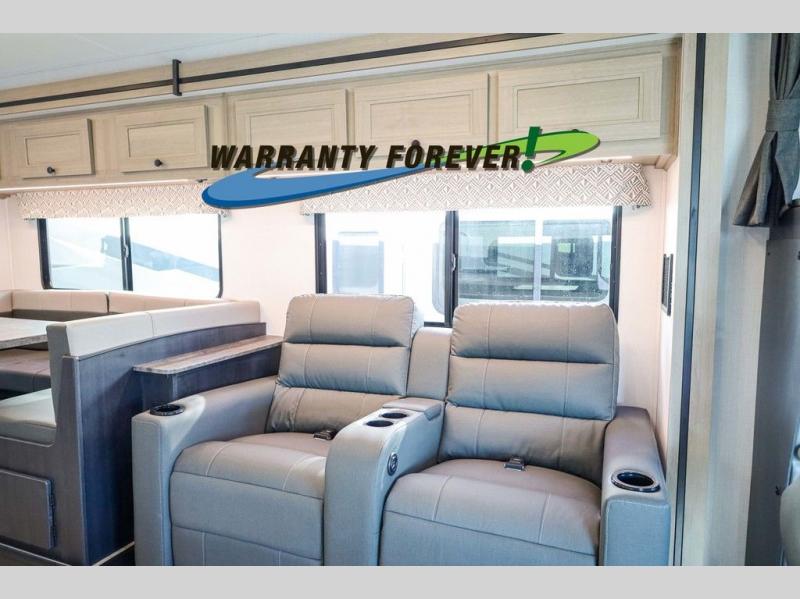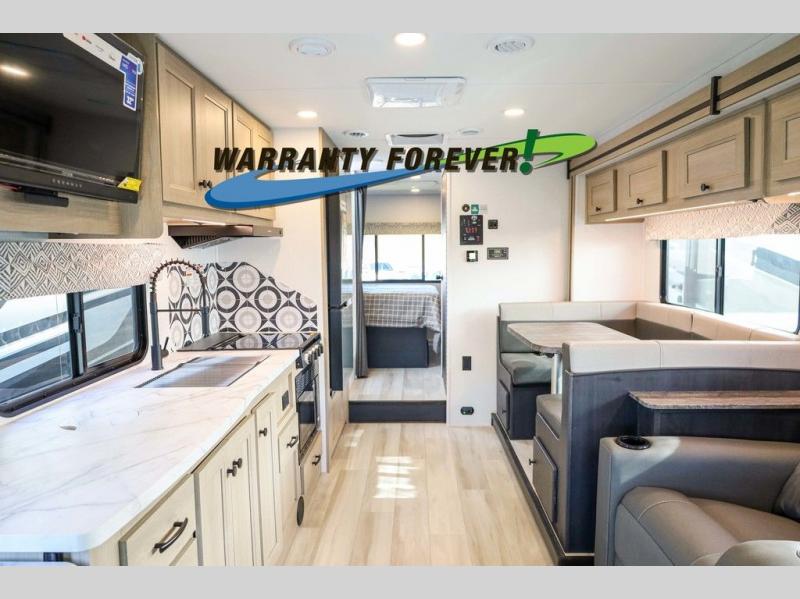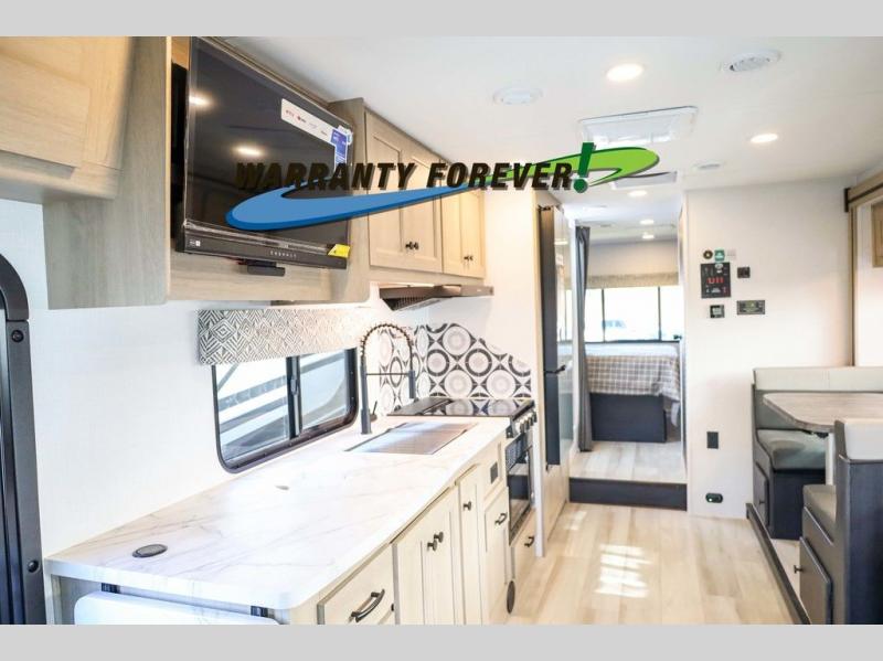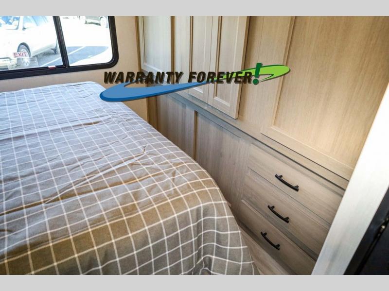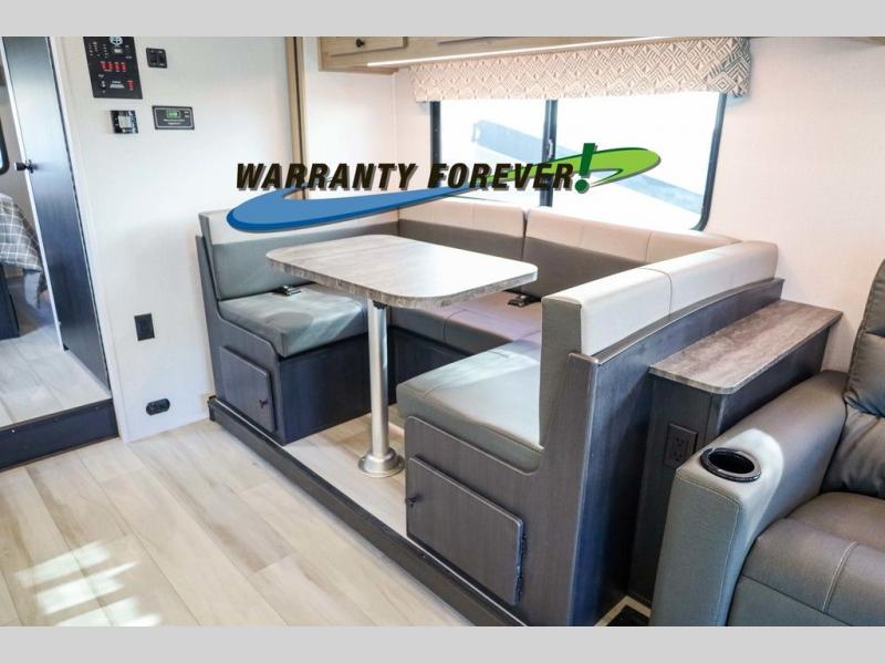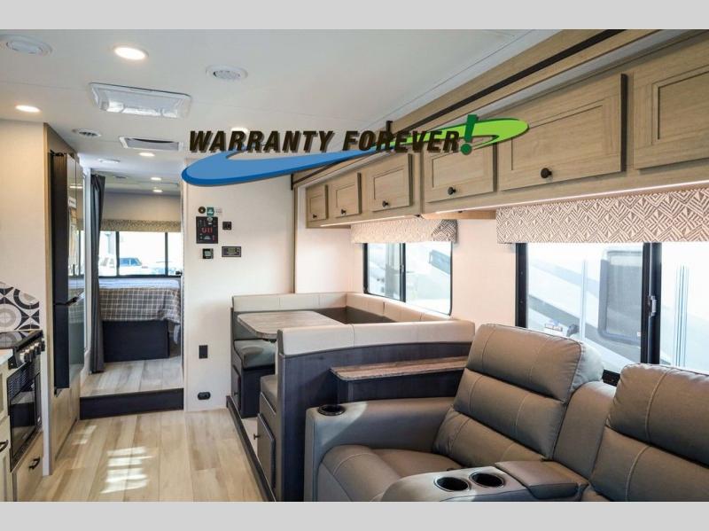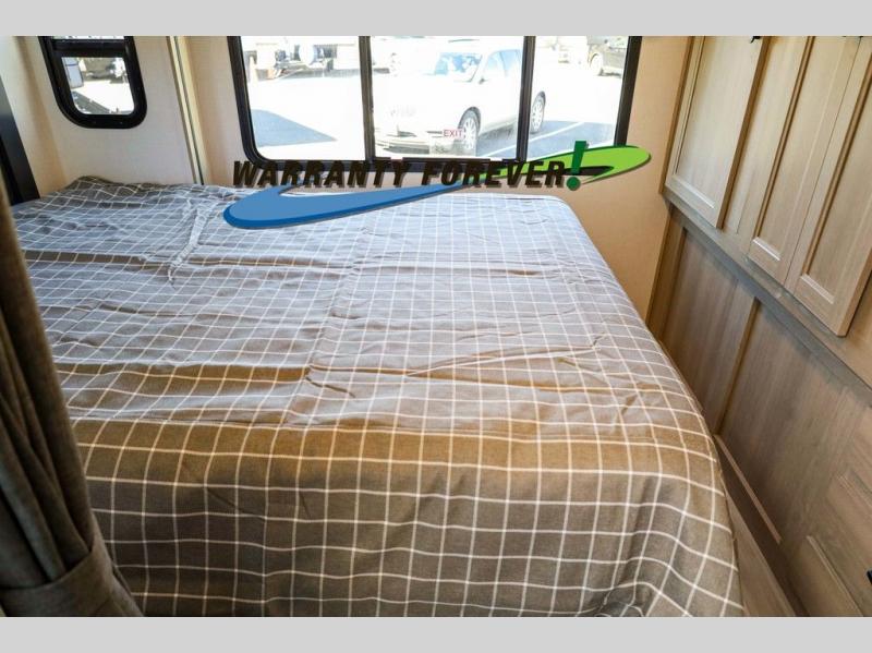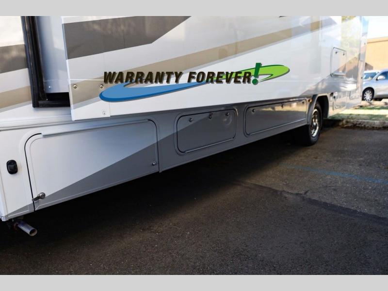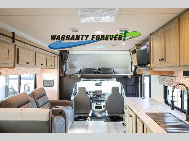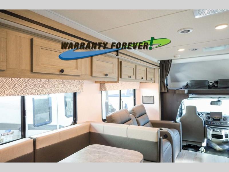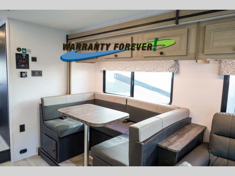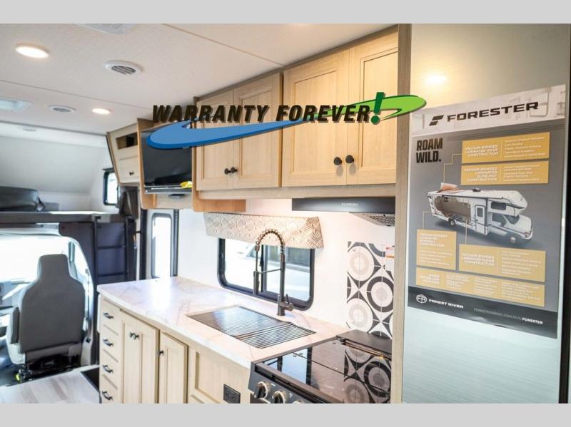 With any Forester Classic Class C gas motorhome by Forest River you will enjoy comfort at every turn! They offer a smooth ride with the EZ Ryde premium suspension system, and the ultra leather captain's seats will ensure comfort wherever you go. There are heated, enclosed holding tanks and valves plus block foam insulation to enjoy four-seasons camping, and the gel coat exterior fiberglass is slick and easy to keep clean. A keyless entry comes standard for your convenience, along with a color back-up camera and side view cameras with a 3-way monitor for added safety when parking. The Forester Classic motorhomes also include a Maxx Air multi-speed power fan with a cover, a shower skylight, a cordless 12V charging plate, plus black out roller shades for privacy any time.