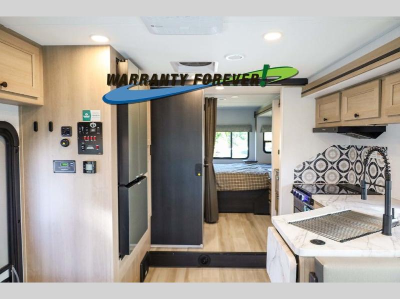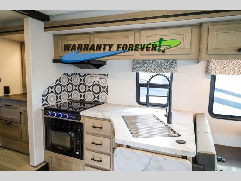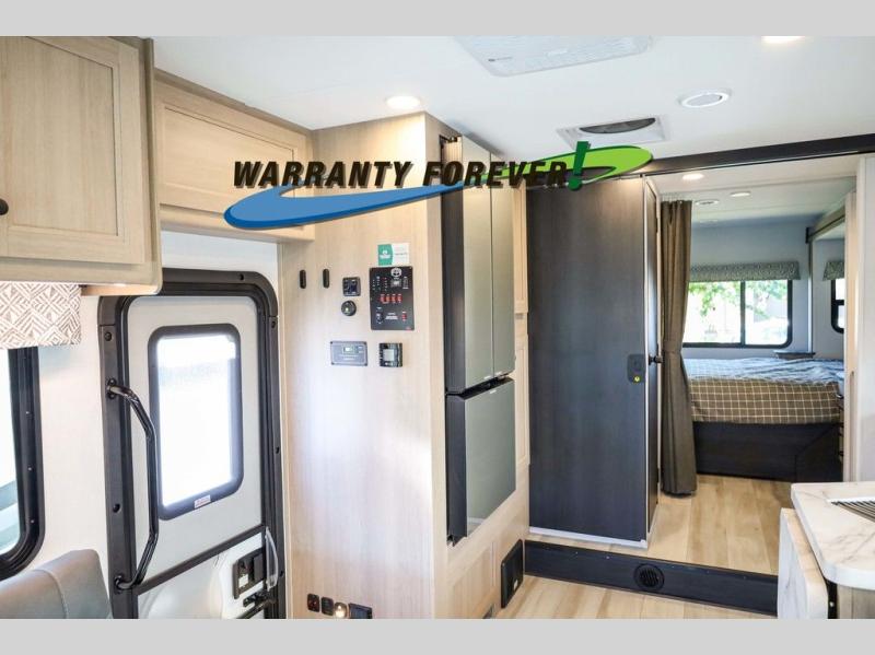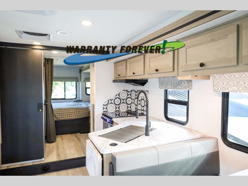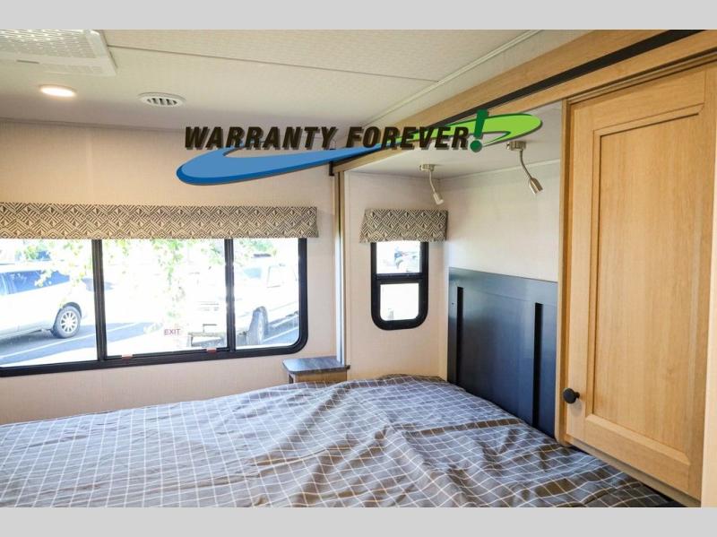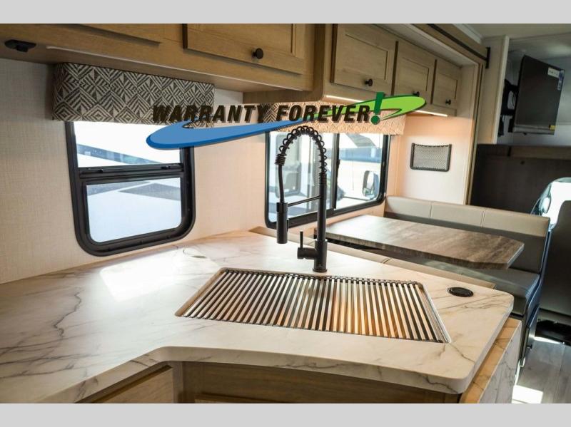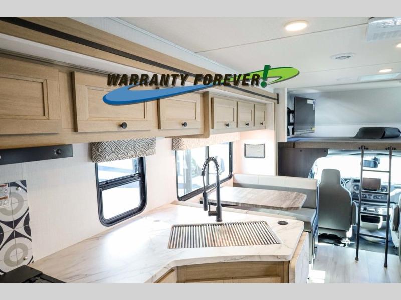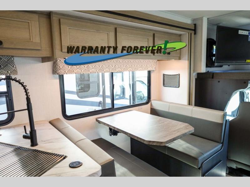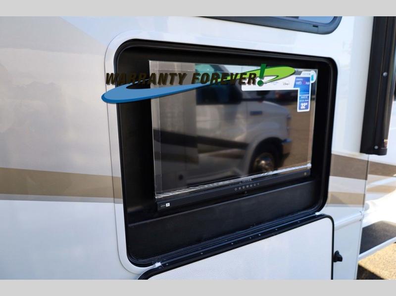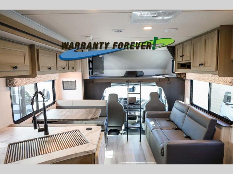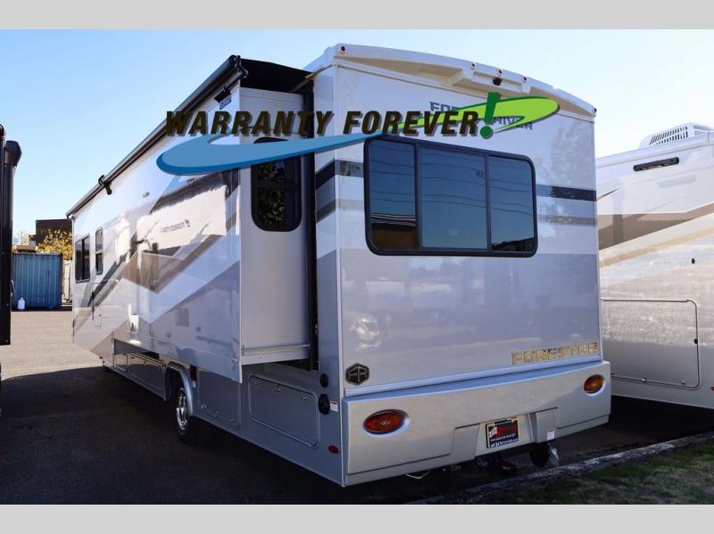 With any Forester Classic Class C gas motorhome by Forest River you will enjoy comfort at every turn! They offer a smooth ride with the EZ Ryde premium suspension system, and the ultra leather captain's seats will ensure comfort wherever you go. There are heated, enclosed holding tanks and valves plus block foam insulation to enjoy four-seasons camping, and the gel coat exterior fiberglass is slick and easy to keep clean. A keyless entry comes standard for your convenience, along with a color back-up camera and side view cameras with a 3-way monitor for added safety when parking. The Forester Classic motorhomes also include a Maxx Air multi-speed power fan with a cover, a shower skylight, a cordless 12V charging plate, plus black out roller shades for privacy any time.
