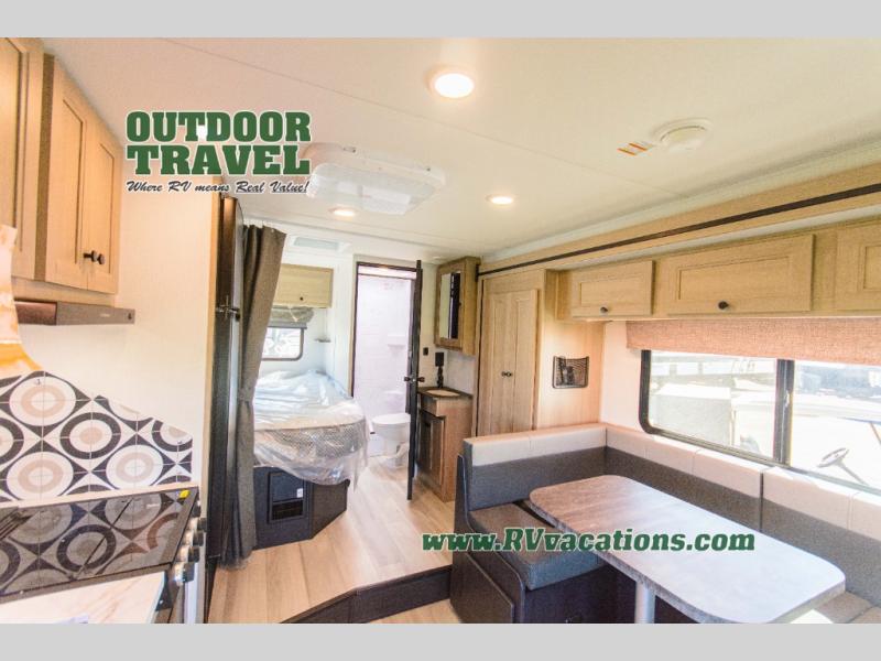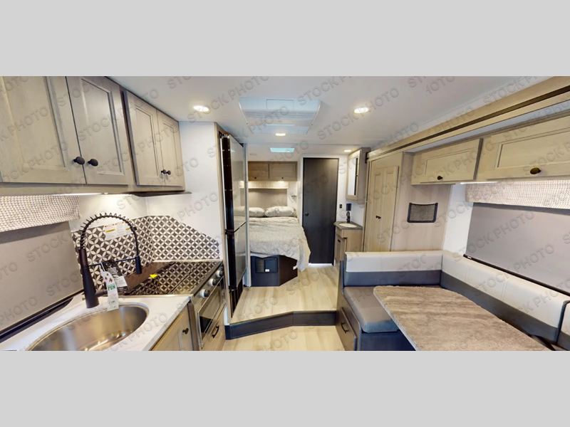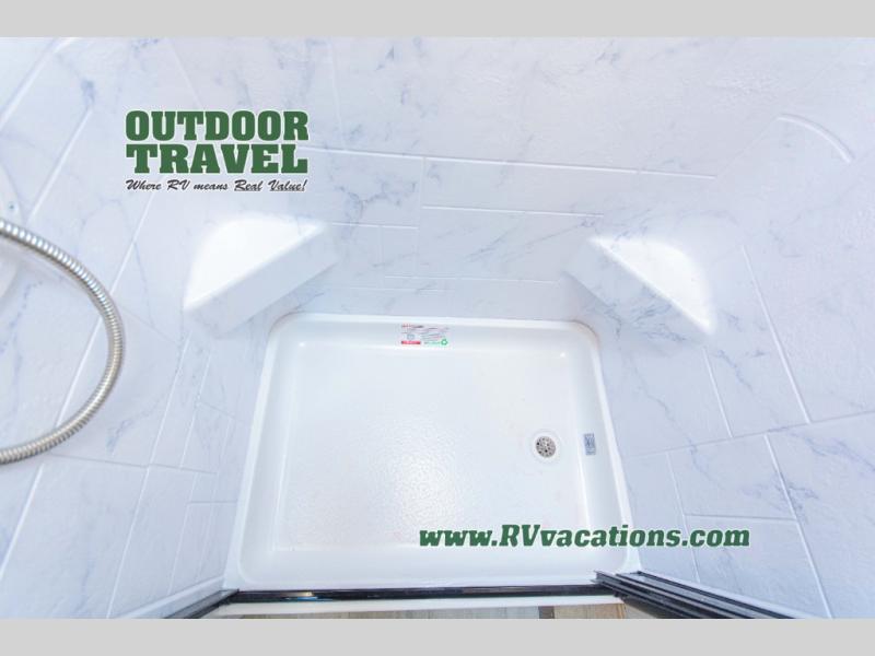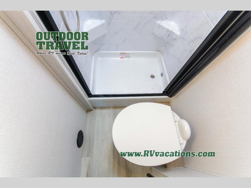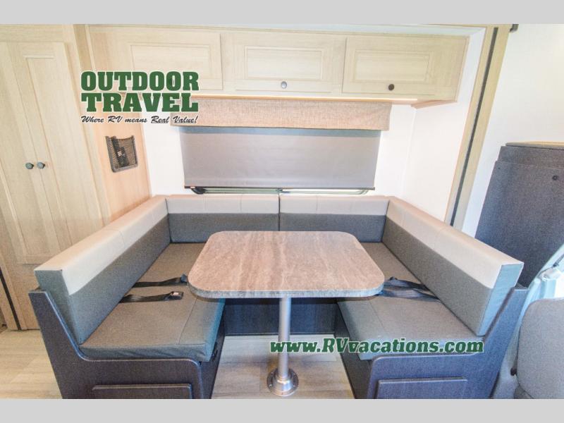 Looking for style, upgraded amenities, and comfort in your next coach? This Forest LE offers a way to travel the country with your own accommodations, plus offers sleeping space to bring along your family and/or friends. The bunk over the cab a queen-sized, plus the rear corner offers a queen bed. And you can utilize the U-dinette as extra sleeping space after dining, playing games and relaxing. The kitchen offers a 10.7 cu. ft. 12V refrigerator, a convection microwave, a recessed three-burner range, soft touch self-closing drawer guides and a cordless 12V charging plate. The private toilet and shower room give you a place to get cleaned up, and the bathroom sink is just outside the door allowing someone else the ability to brush their teeth and wash their face.