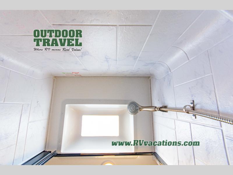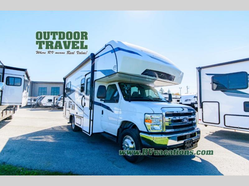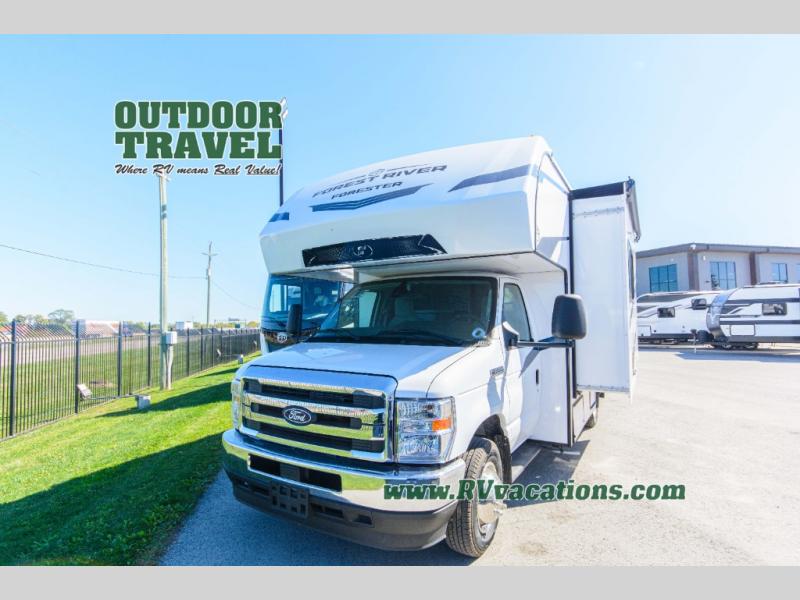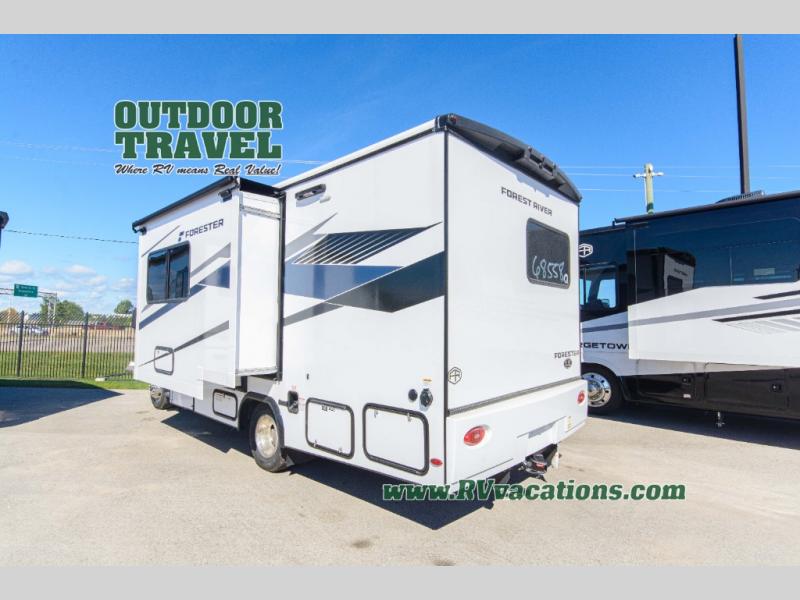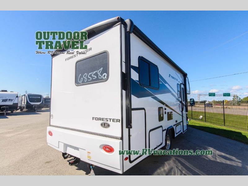 With any Forester LE Class C gas motorhome by Forest River, you will enjoy premier features such as the backup camera/side view cameras with a 3-way monitor, the Winegard Air 360+ digital antenna, and the 15,000 BTU ceiling ducted, ultra quiet roof air with a heat pump when traveling during the warmer months. The exterior includes aluminum framed laminated sidewalls, gel coat exterior fiberglass, a one-piece fiberglass front cap, and slide room toppers. Some of the interior top features are the Maxx Air multi-speed power fan with a cover in the kitchen, the high pressure oxygen infused shower head, and the blackout roller shades for a good night's sleep. Make your selection today!