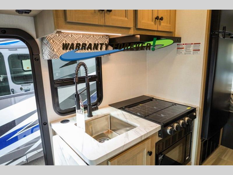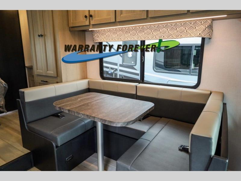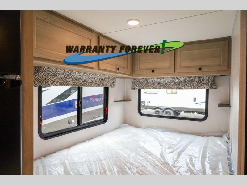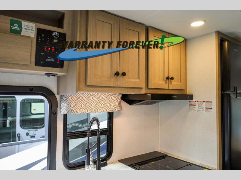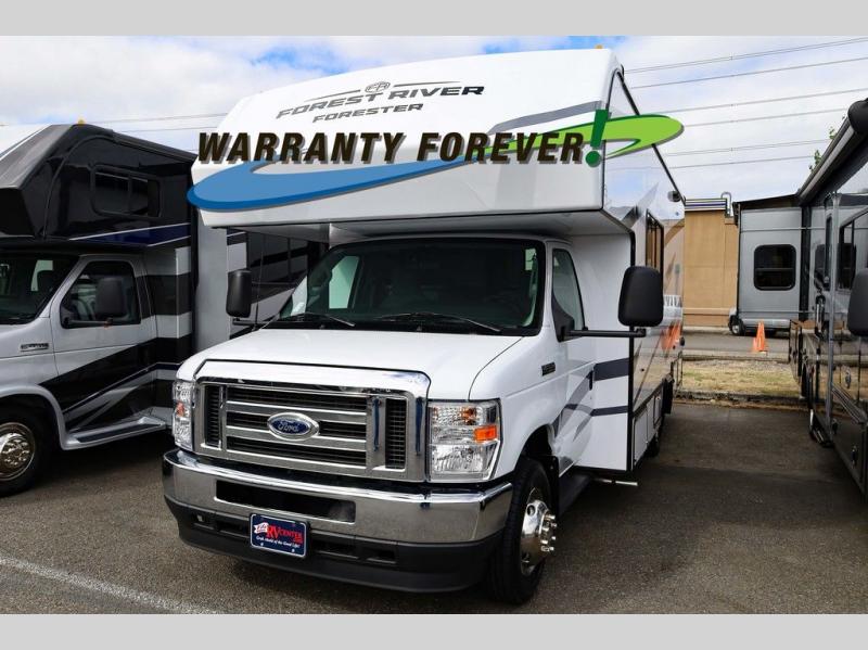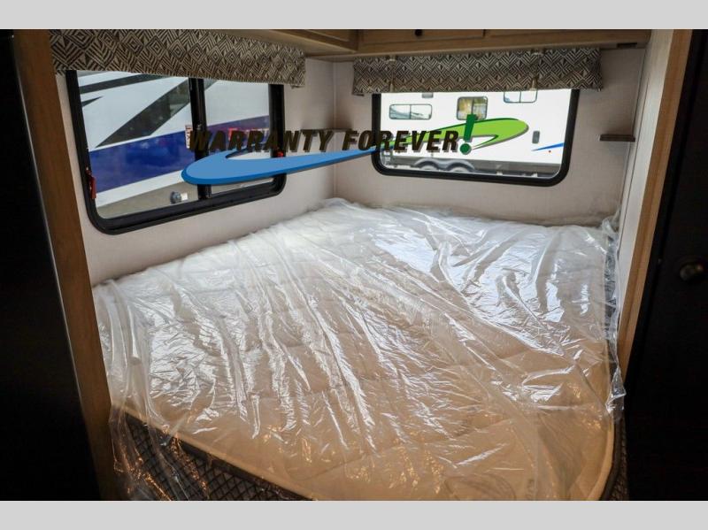 With any Forester LE Class C gas motorhome by Forest River, you will enjoy premier features such as the backup camera/side view cameras with a 3-way monitor, the Winegard Air 360+ digital antenna, and the 15,000 BTU ceiling ducted, ultra quiet roof air with a heat pump when traveling during the warmer months. The exterior includes aluminum framed laminated sidewalls, gel coat exterior fiberglass, a one-piece fiberglass front cap, and slide room toppers. Some of the interior top features are the Maxx Air multi-speed power fan with a cover in the kitchen, the high pressure oxygen infused shower head, and the blackout roller shades for a good night's sleep. Make your selection today!