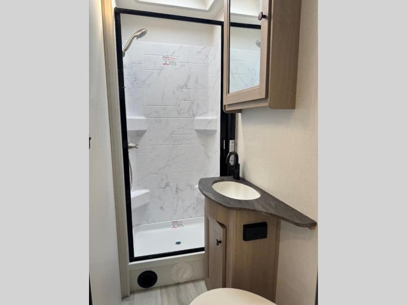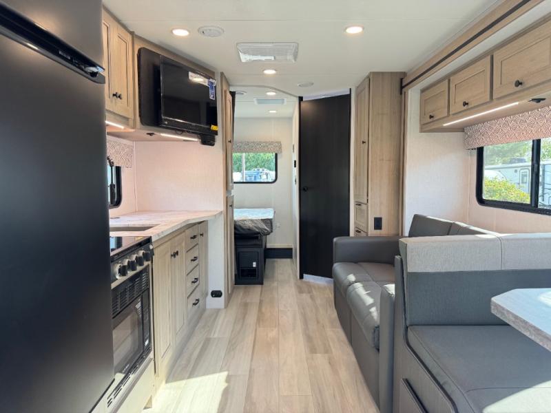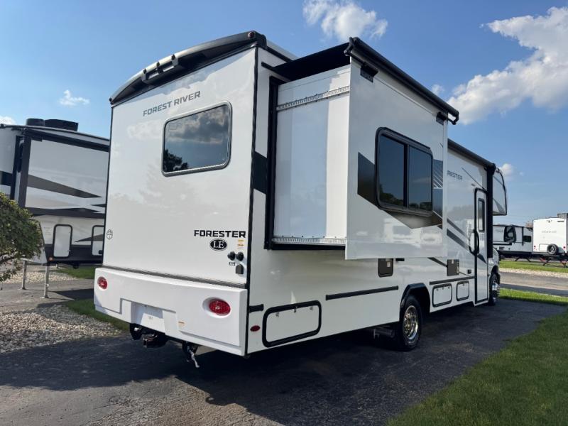 With any Forester LE Class C gas motorhome by Forest River, you will enjoy premier features such as the backup camera/side view cameras with a 3-way monitor, the Winegard Air 360+ digital antenna, and the 15,000 BTU ceiling ducted, ultra quiet roof air with a heat pump when traveling during the warmer months. The exterior includes aluminum framed laminated sidewalls, gel coat exterior fiberglass, a one-piece fiberglass front cap, and slide room toppers. Some of the interior top features are the Maxx Air multi-speed power fan with a cover in the kitchen, the high pressure oxygen infused shower head, and the blackout roller shades for a good night's sleep. Make your selection today!