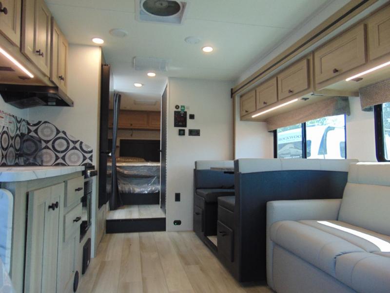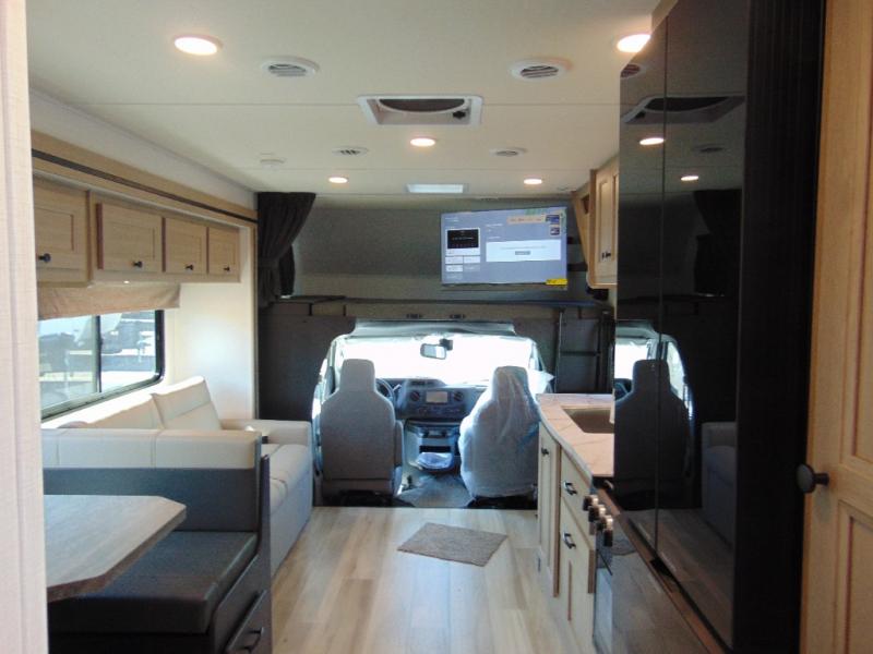 With any Forester LE Class C gas motorhome by Forest River, you will enjoy premier features such as the backup camera/side view cameras with a 3-way monitor the, Winegard Air 360+ digital antenna, and the 15,000 BTU ceiling ducted, ultra quiet roof air with a heat pump when traveling during the warmer months. The exterior includes aluminum framed laminated sidewalls, gel coat exterior fiberglass, a one-piece fiberglass front cap, and slide room toppers. Some of the interior top features are the Maxx Air multi-speed power fan with a cover in the kitchen, the high pressure oxygen infused shower head, and the blackout roller shades for a good night's sleep. Make your selection today!