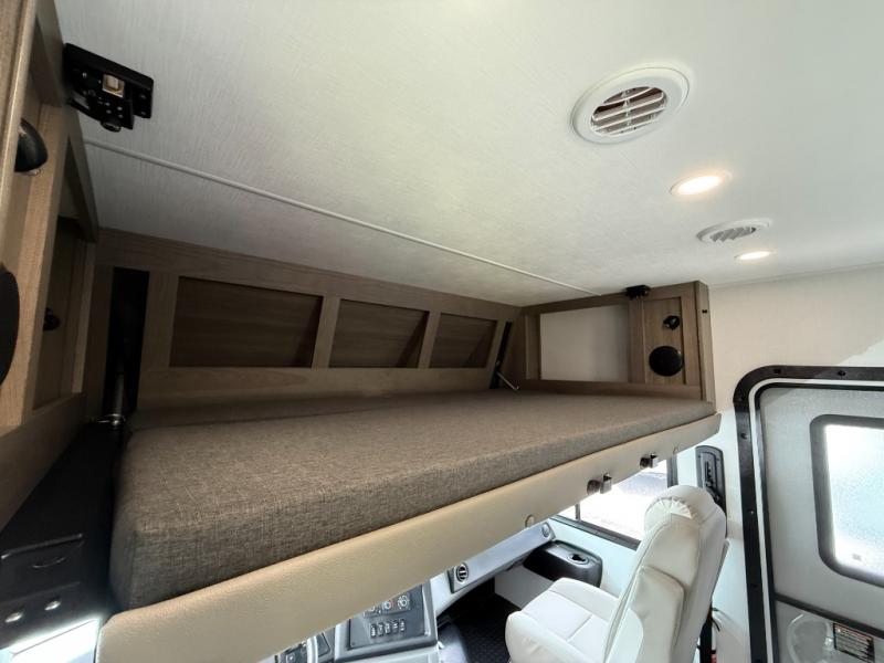 - King-Size Bed and Power Overhead Bunk for sleeping versatility