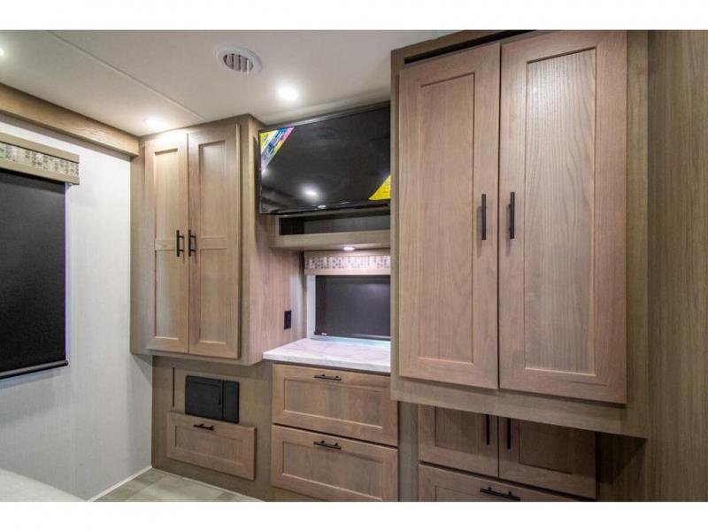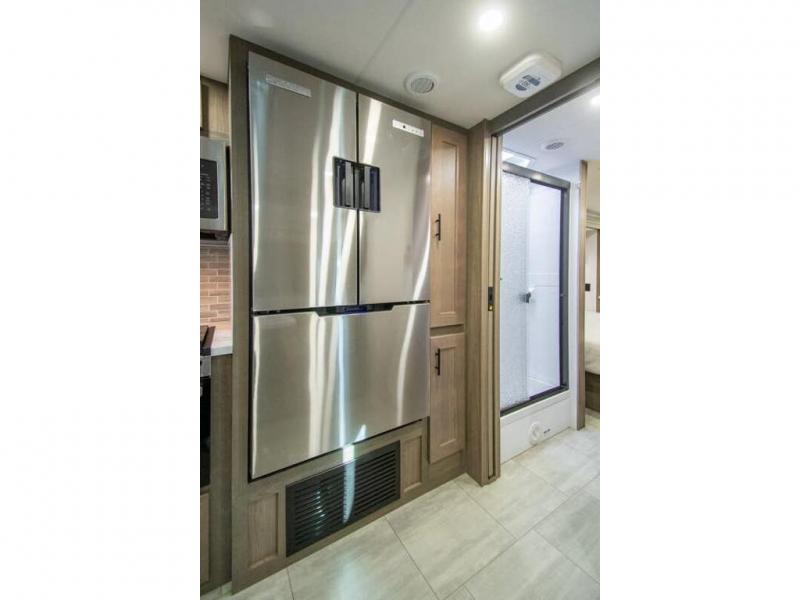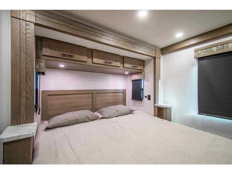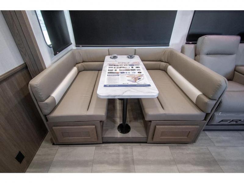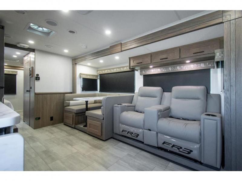 Whether you travel with your spouse, grandkids or friends, this FR3 Class A gas motorhome allows you to travel in style with plenty of additional sleeping choices from the power overhead bunk to the furniture once they are set up at night. You can dine at the wrap-around booth dinette, relax on the hide-a-bed sofa, and make full meals in the kitchen which also includes a residential microwave and countertop extension. The separated bathroom allows someone to take a shower while another freshens up with the private sink and toilet, or maybe you decide to close this area off within the bedroom. Every night you can sleep like a king while watching the 32" LED 12V TV in the bedroom, and maybe you decided to add the washer/dryer option to keep everything clean while on the road.