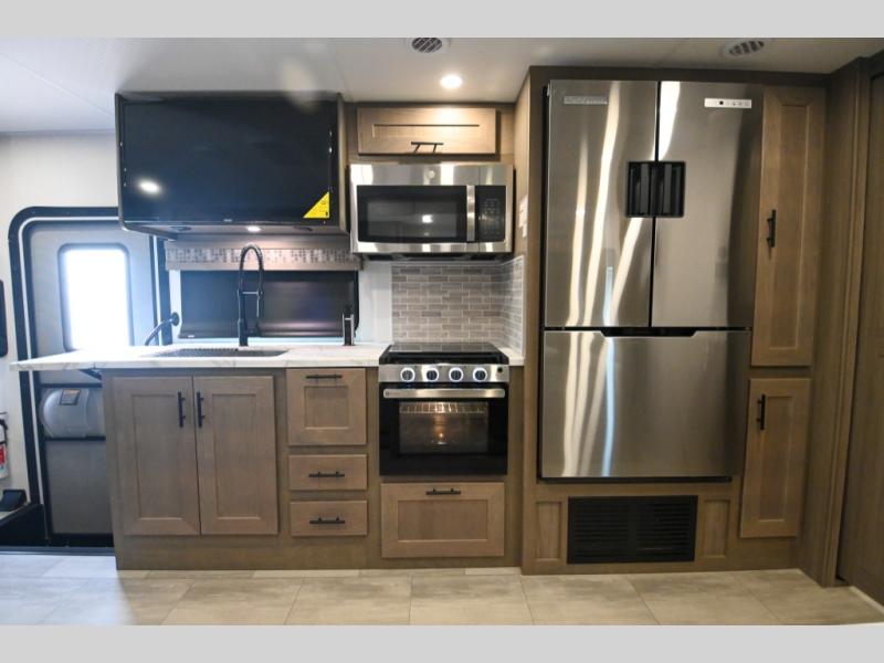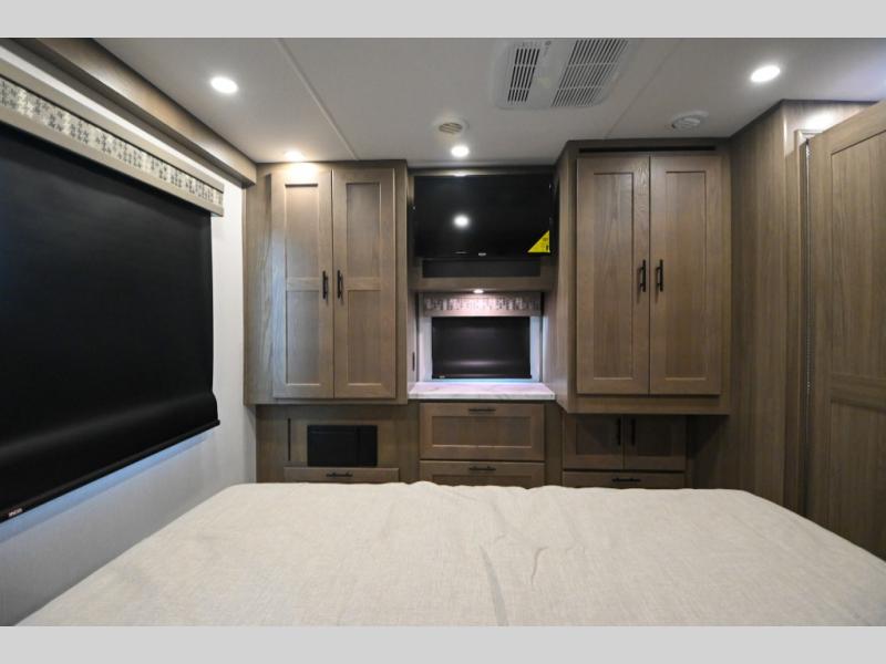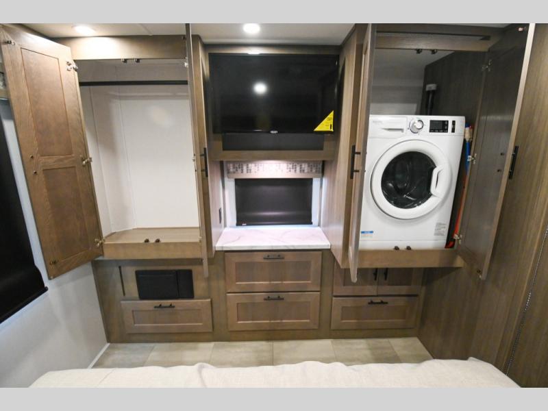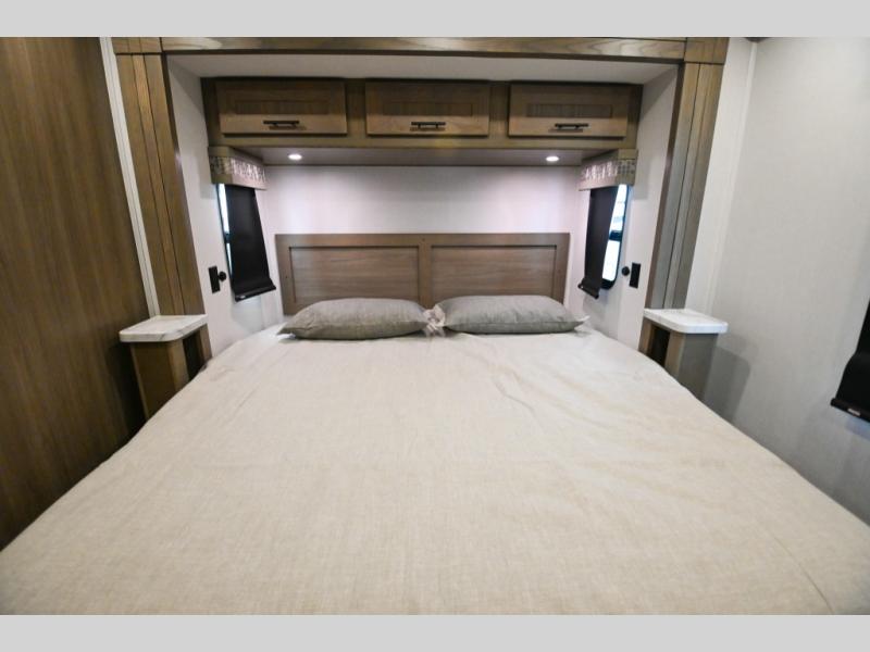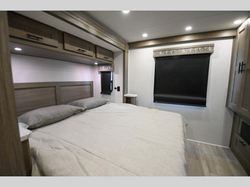 Whether you travel with your spouse, grandkids or friends, this FR3 Class A gas motorhome allows you to travel in style with plenty of additional sleeping choices from the power overhead bunk to the furniture once they are set up at night. You can dine at the wrap-around booth dinette, relax on the hide-a-bed sofa, and make full meals in the kitchen which also includes a residential microwave and countertop extension. The separated bathroom allows someone to take a shower while another freshens up with the private sink and toilet, or maybe you decide to close this area off within the bedroom. Every night you can sleep like a king while watching the 32" LED 12V TV in the bedroom, and maybe you decided to add the washer/dryer option to keep everything clean while on the road.