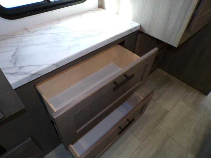 With each FR3 Class A gas motorhome by Forest River, you will find an easy-to-drive coach with a spacious interior allowing you to gather with friends and family with convenience and style found throughout! Each is built with vacuum-bonded construction, a one-piece fiberglass roof with extended rain spouts, a steel firewall and A-pillar extension, Bi-LED headlamps and lower LED fog lights, and grey Rotocast storage boxes with drains. Inside, you will enjoy black hardware, appliances, plumbing fixtures, and a glass shower door frame. You will also find a stainless steel kitchen sink with a bamboo cutting board and roll-up dryer, heavy-duty full-extension ball bearing drawer guides, dual-access dinette storage with doors, and nightstands with charging stations to keep your cellphones ready for whatever is next. Make your selection today!