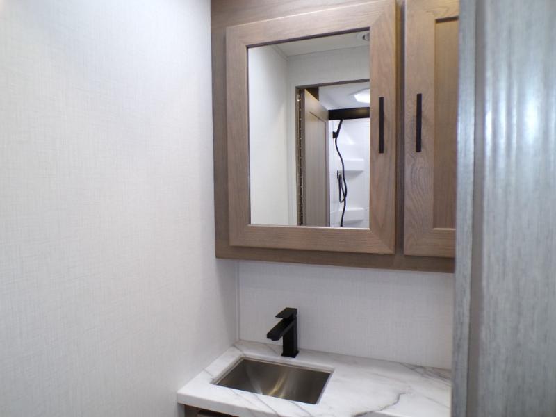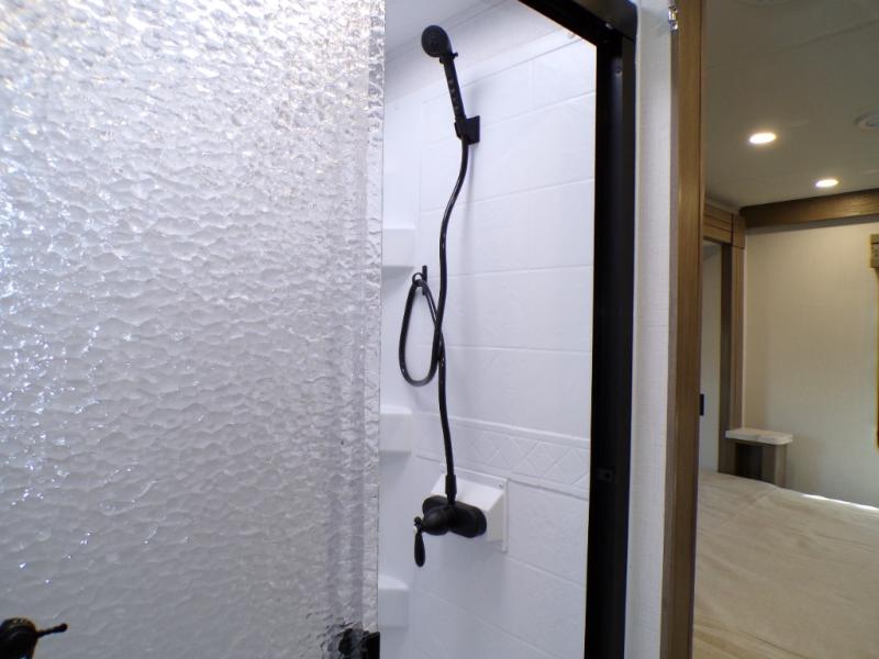 Whether you travel with your spouse, grandkids or friends, this FR3 Class A gas motorhome allows you to travel in style with plenty of additional sleeping choices from the power overhead bunk to the furniture once they are set up at night. You can dine at the wrap-around booth dinette, relax on the hide-a-bed sofa, and make full meals in the kitchen which also includes a residential microwave and countertop extension. The separated bathroom allows someone to take a shower while another freshens up with the private sink and toilet, or maybe you decide to close this area off within the bedroom. Every night you can rest nice and snug while watching the 32" LED 12V TV in the bedroom, and maybe you decided to add the washer/dryer option to keep everything clean while on the road.