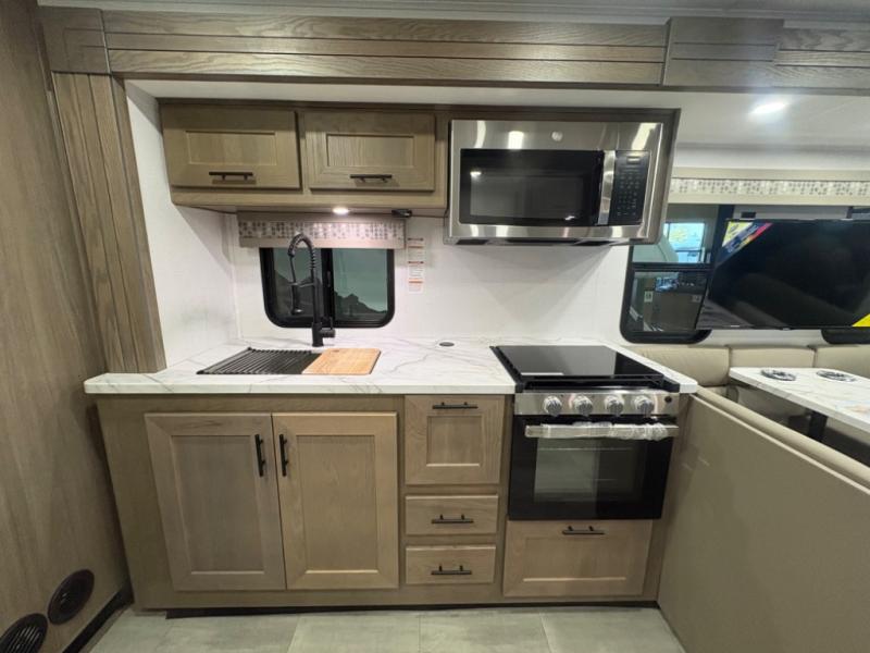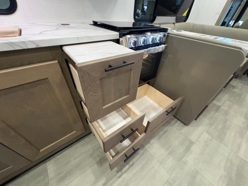 With each FR3 Class A gas motorhome by Forest River, you will find an easy-to-drive coach with a spacious interior allowing you to gather with friends and family with convenience and style found throughout! Each is built with vacuum-bonded construction, a one-piece fiberglass roof with extended rain spouts, a steel firewall and A-pillar extension, Bi-LED headlamps and lower LED fog lights, and grey Rotocast storage boxes with drains, plus more! Inside, you will enjoy black hardware, appliances, plumbing fixtures, and a glass shower door frame. Plus, you will also find a stainless steel kitchen sink with a bamboo cutting board and roll-up dryer, heavy-duty full-extension ball bearing drawer guides, dual-access dinette storage with doors, and nightstands with charging stations to keep your cellphones ready for whatever is next. Make your selection today!