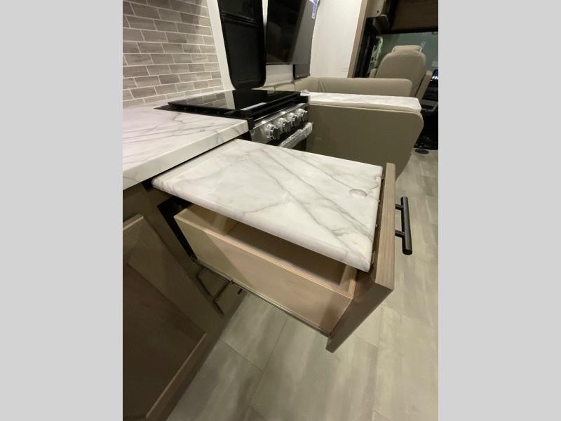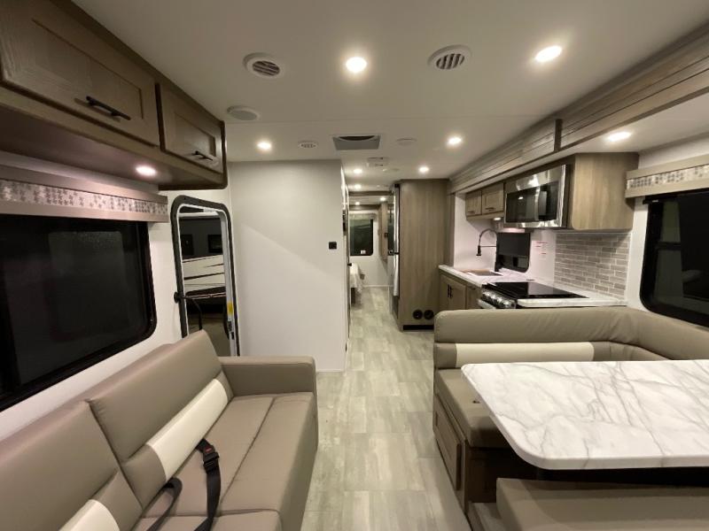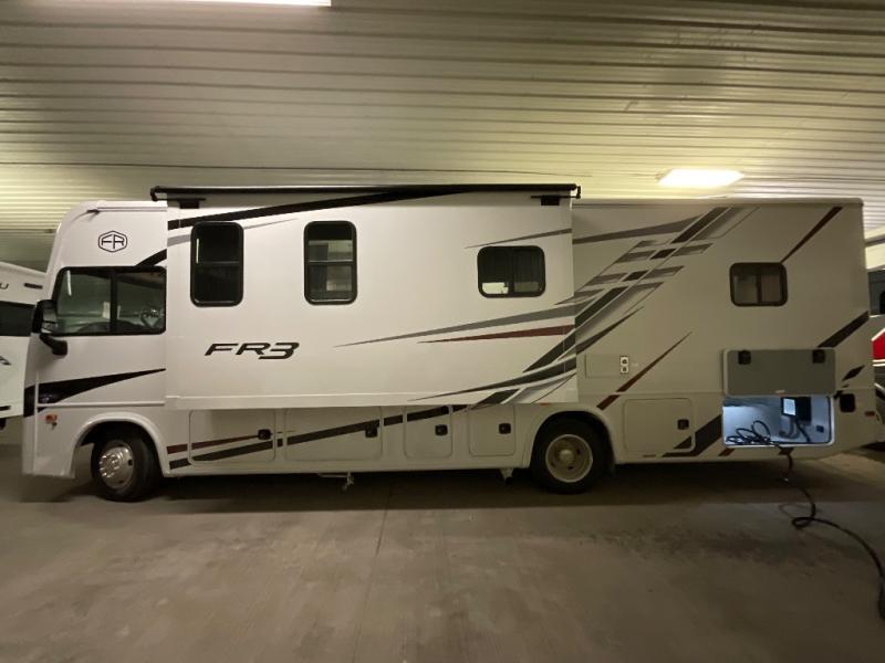 With each FR3 Class A gas motorhome by Forest River, you will find an easy-to-drive coach with a spacious interior allowing you to gather with friends and family with convenience and style found throughout! Each is built with vacuum-bonded construction, a one-piece fiberglass roof with extended rain spouts, a steel firewall and A-pillar extension, Bi-LED headlamps and lower LED fog lights, and grey Rotocast storage boxes with drains, plus more! Inside, you will enjoy black hardware, appliances, plumbing fixtures, and a glass shower door frame. Plus, you will also find a stainless steel kitchen sink with a bamboo cutting board and roll-up dryer, heavy-duty full-extension ball bearing drawer guides, dual-access dinette storage with doors, and nightstands with charging stations to keep your cellphones ready for whatever is next. Make your selection today!