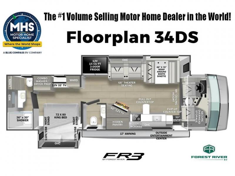 Forest River FR3 Class A gas motorhome 34DS highlights: