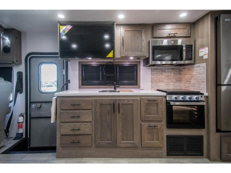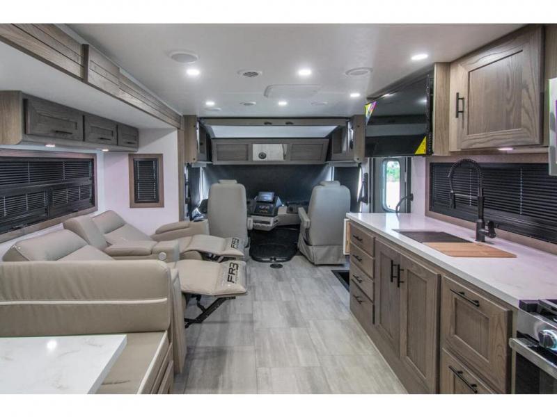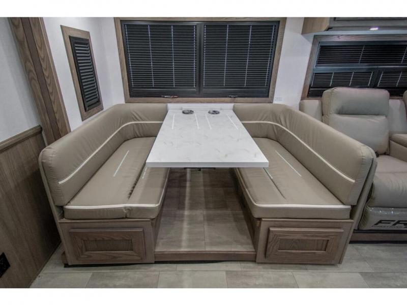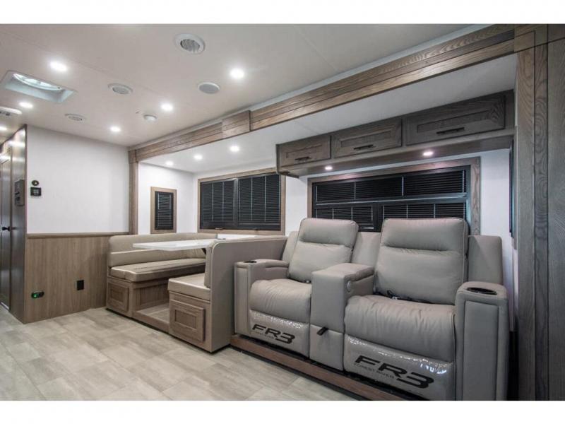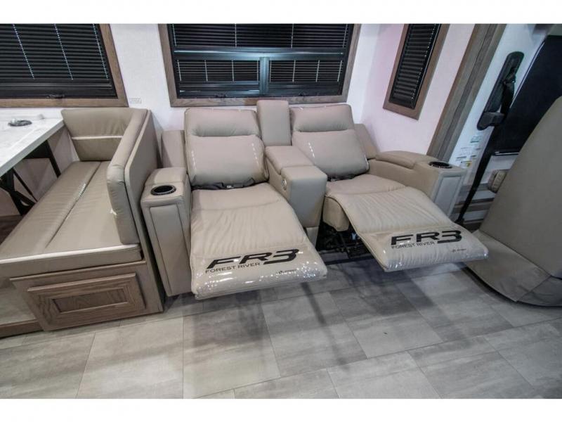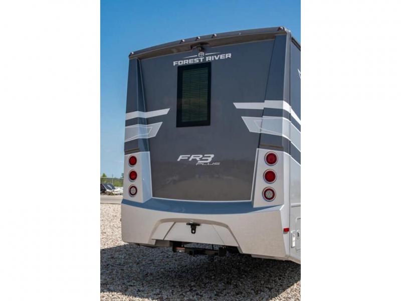 With any FR3 Plus Class A gas motorhome by Forest River, you will find a step up from the FR3, including a modern slick exterior with full-body paint options! Since this coach includes vacuum bonded construction, you can enjoy traveling for years to come, and the full fiberglass front cap provides added protection. Each drive is made comfortable by the two-tone ultra leather captain's seats, plus there is a Sony 10.1" dash radio that includes a color back-up monitor and more to make the journey that much smoother! You will stay powered up by the 6.0kW NPS Yamaha generator, 200W solar panels with a Go Power solar controller, (2) 100 Amp Battle Born lithium batteries, and more. The interior of the FR3 Plus includes solid surface kitchen countertops, IVC residential vinyl flooring, stainless steel kitchen features, and many more comforts!