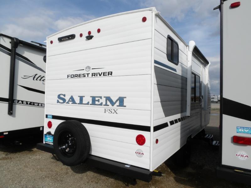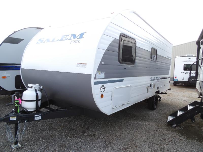 The Forest River Salem FSX travel trailers and toy hauler travel trailers are ultra comfortable and lightweight, perfect for first time or seasoned campers alike! You will love how easy it will be to relax with residential features that will make your space feel just like home, and the durable construction means you can enjoy your RV for years to come. There are a wide variety of floorplans to choose from, including couple's trailers, bunk models, and toy haulers, all with full bath and kitchen amenities and plenty of storage for all your gear!