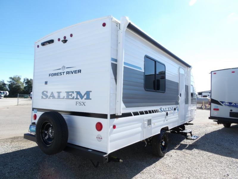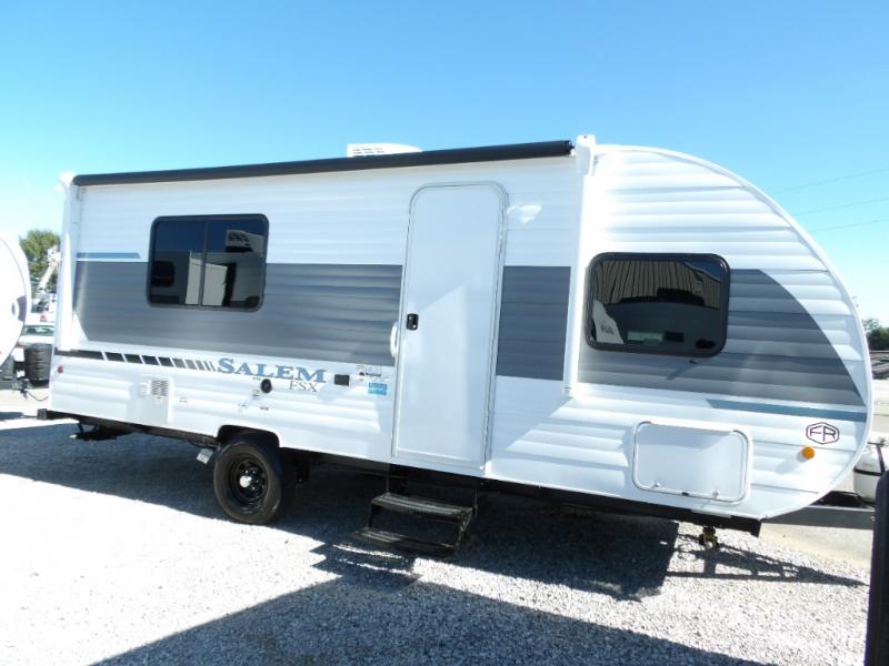The Forest River Salem FSX travel trailers and toy hauler travel trailers are ultra comfortable and lightweight, perfect for first time or seasoned campers alike! You will love how easy it will be to relax with residential features that will make your space feel just like home, and the durable construction means you can enjoy your RV for years to come. There are a wide variety of floorplans to choose from, including couple's trailers, bunk models, and toy haulers, all with full bath and kitchen amenities and plenty of storage for all your gear!