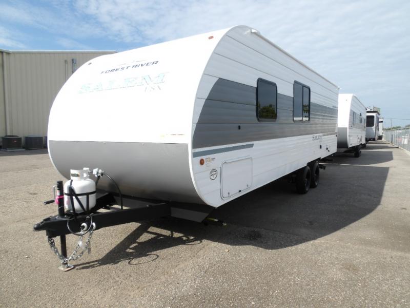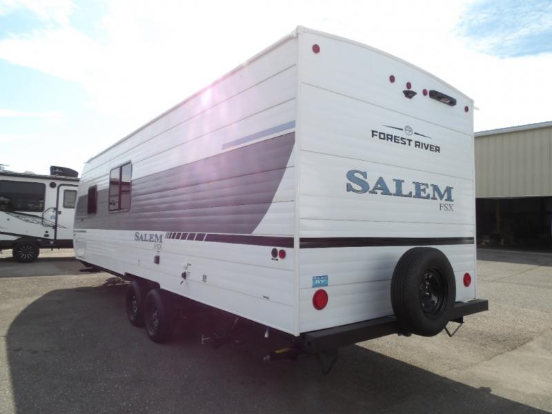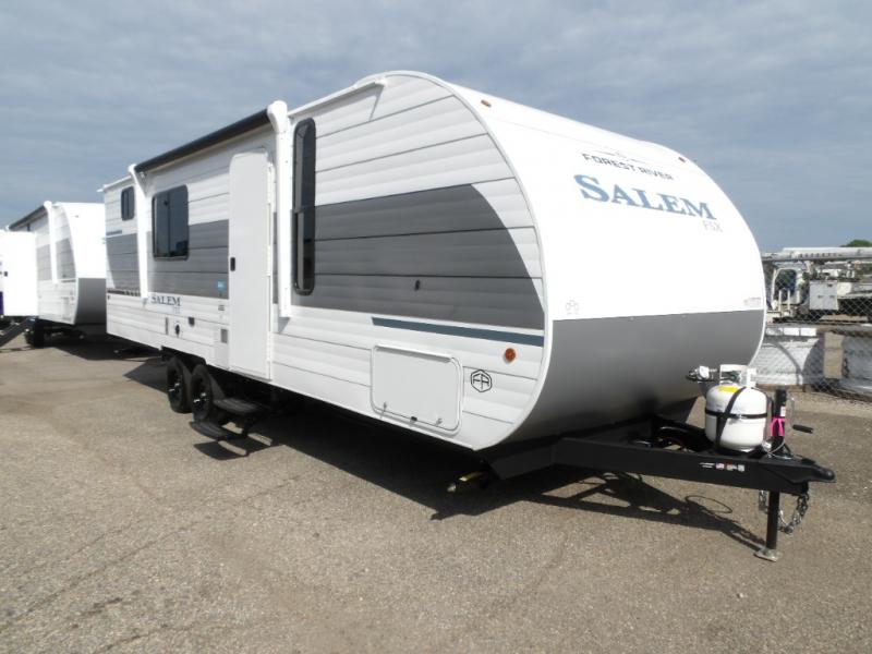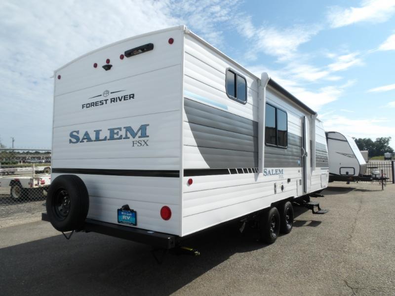 The Forest River Salem FSX travel trailers and toy hauler travel trailers are ultra comfortable and lightweight, perfect for first time or seasoned campers alike! You will love how easy it will be to relax with residential features that will make your space feel just like home, and the durable construction means you can enjoy your RV for years to come. There are a wide variety of floorplans to choose from, including couple's trailers, bunk models, and toy haulers, all with full bath and kitchen amenities and plenty of storage for all your gear!