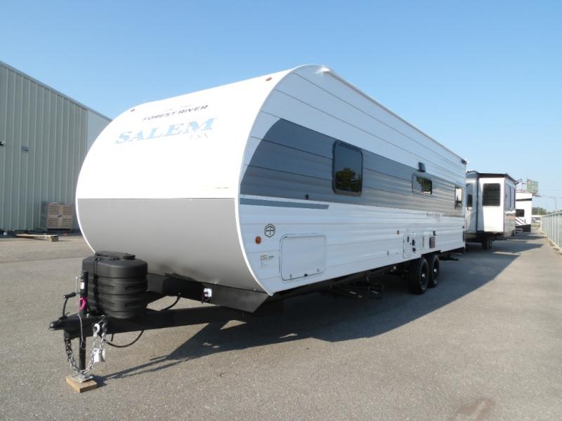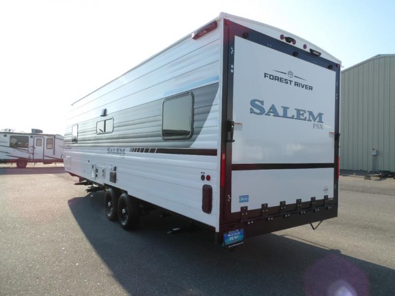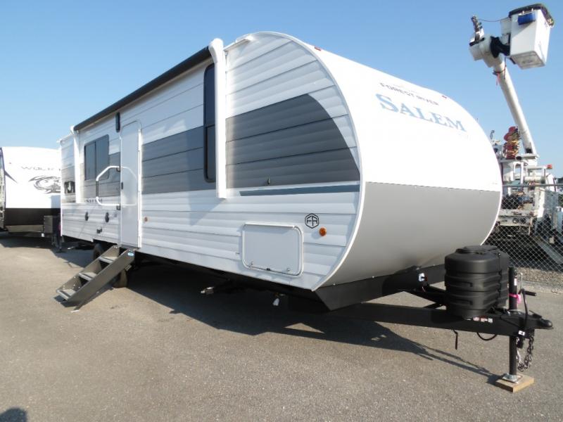 The Forest River Salem FSX travel trailers and toy hauler travel trailers are ultra comfortable and lightweight, perfect for first time or seasoned campers alike! You will love how easy it will be to relax with residential features that will make your space feel just like home, and the durable construction means you can enjoy your RV for years to come. There are a wide variety of floorplans to choose from, including couple's trailers, bunk models, and toy haulers, all with full bath and kitchen amenities and plenty of storage for all your gear!