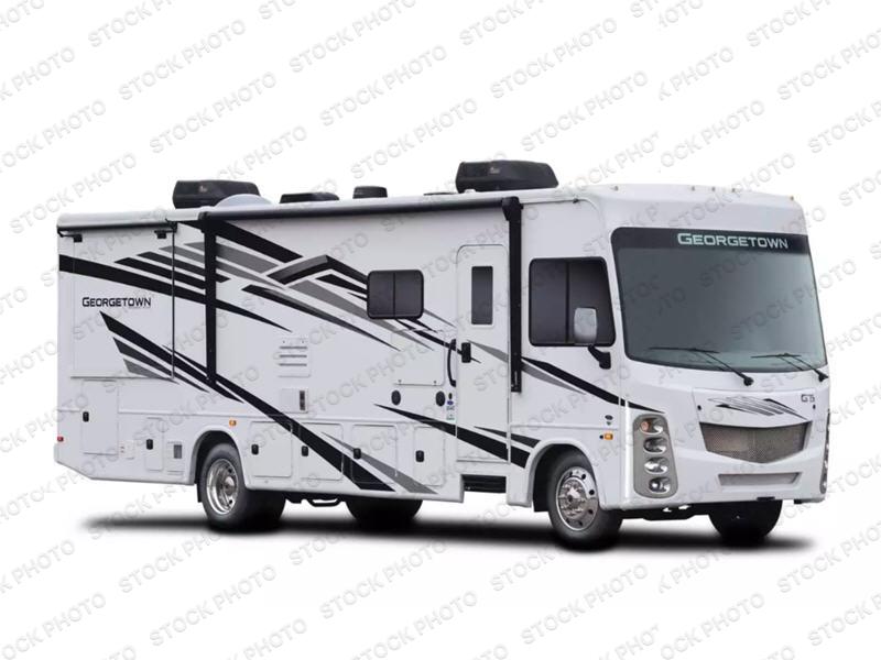 These Forest River Georgetown 3 Series Class A gas motorhomes have been engineered for the road and designed for the driver! Their construction consists of a multi-layered laminated roof system that includes aluminum framing, a crowned fiberglass roof, and block foam insulation. The vacuum bonded gel coated sidewalls, the front cockpit steel structure system and the steel firewall are sure to help with durability and stability. With a hydraulic 4-point leveling system, you can be sure your unit will stay level everywhere you set up. The MORryde 1 1/2" steel truss upfit chassis will hold your unit together for years of fun. A few key features you will appreciate having include a 360 Plus Winegard WiFi to stay connected, a Sony 10" entertainment system to play your favorite tunes, and an exterior solar panel with a controller for off-grid capabilities. Come find your favorite one today!