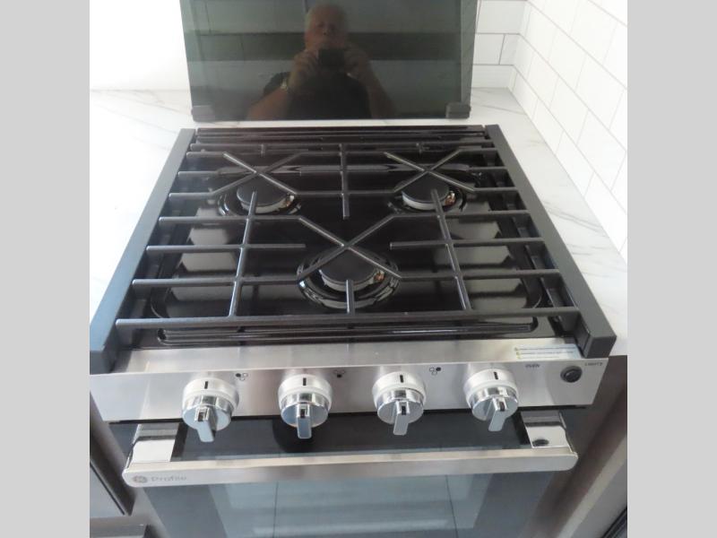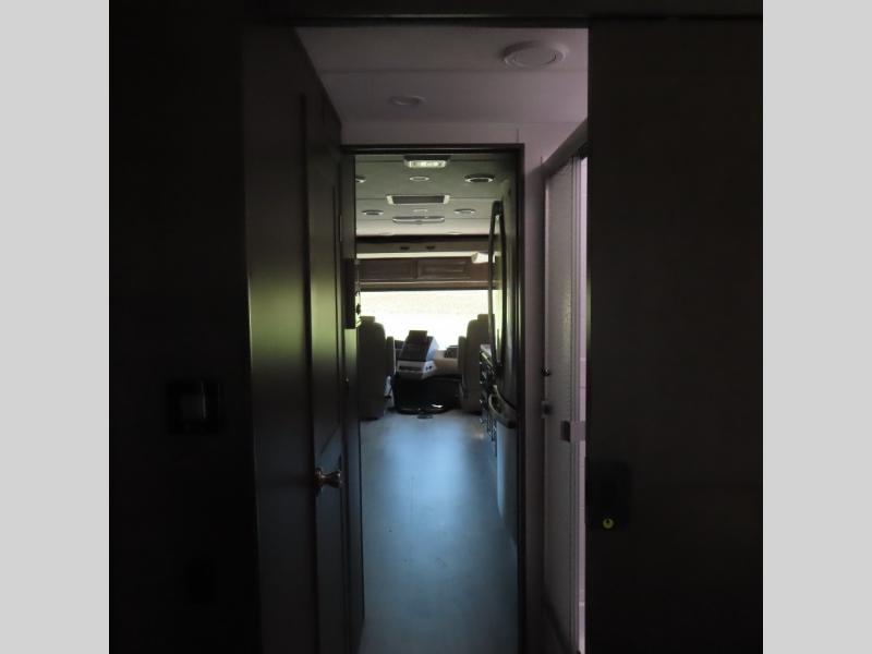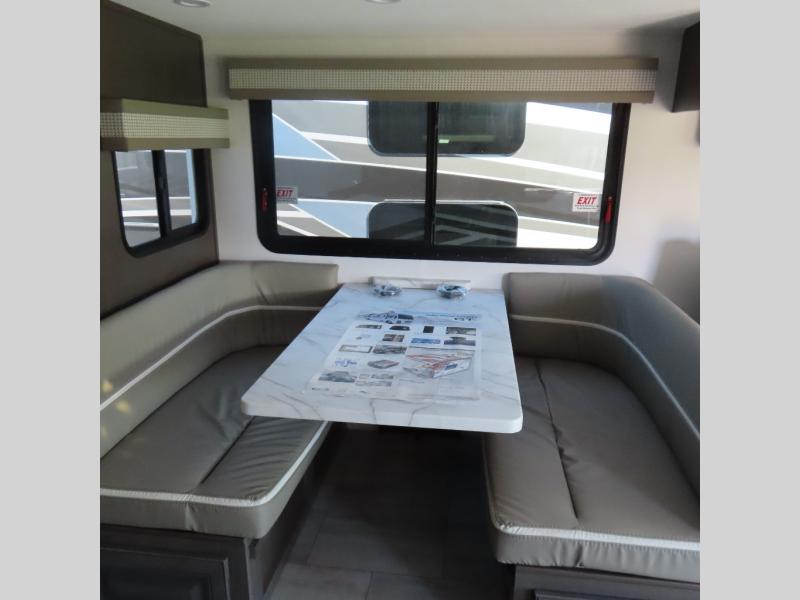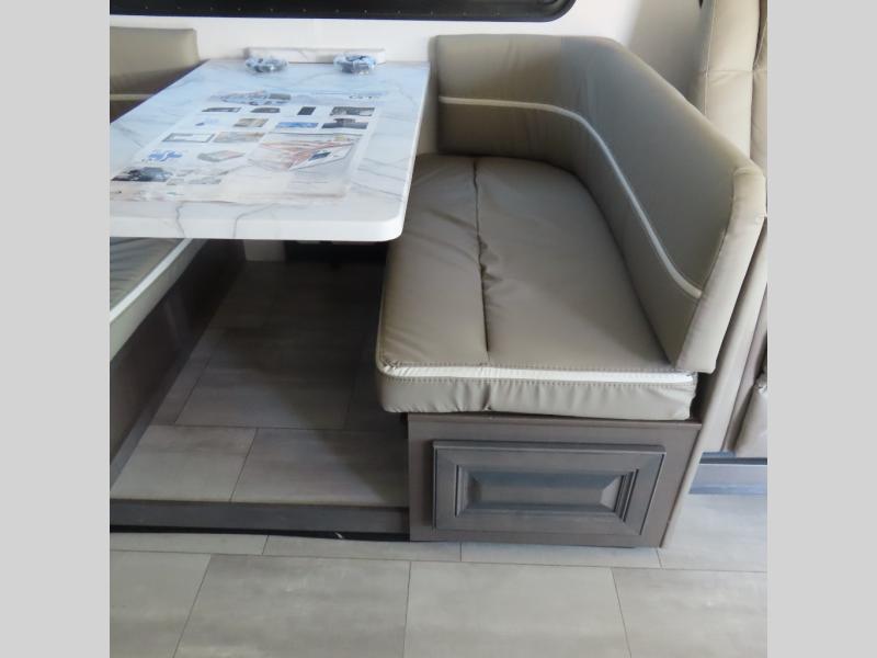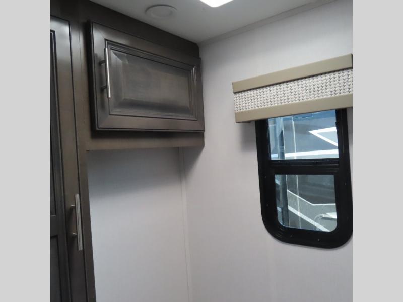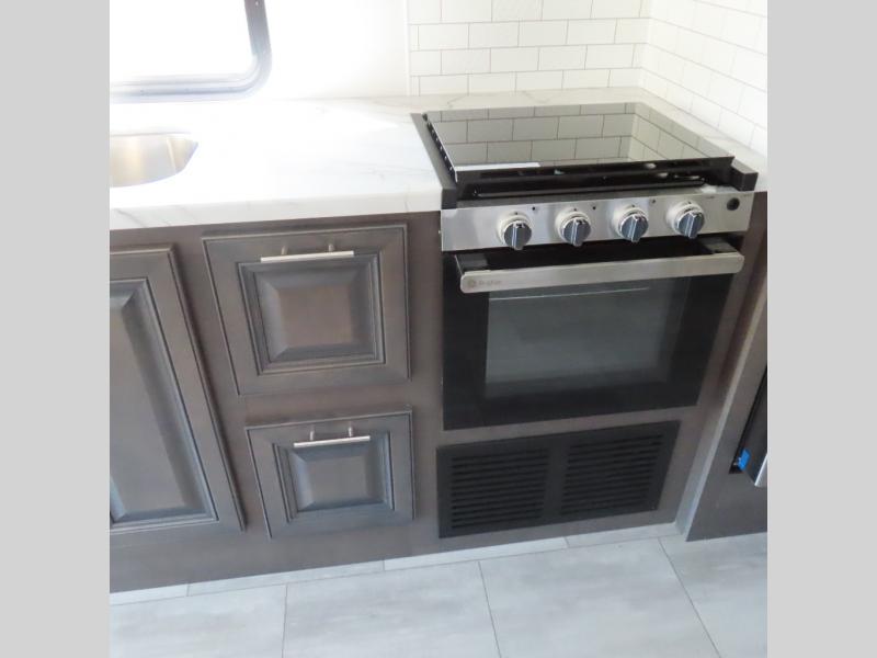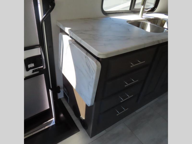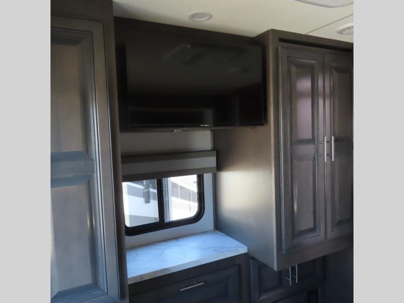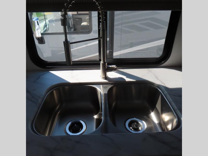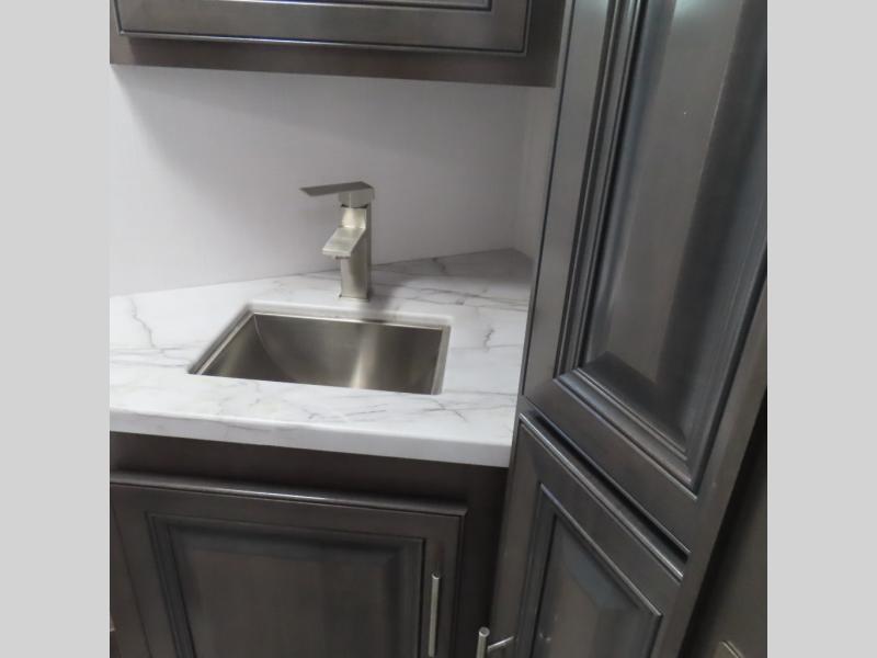 This motorhome is more than just a couple's coach; It's a home on wheels with room for three to four more guests for never ending fun. The hide-a-bed sofa and Dream Dinette slide not only offer comfortable places to eat meals and relax but also transform into extra sleeping spaces. You will have your own privacy in the rear private bedroom with a king bed slide and two closets on either side of a dresser with a TV. The separated bathroom makes it easy for one person to freshen up in the shower while another uses the private toilet and sink with two linen closets for your towels. The chef can keep everyone's bellies full of delicious meals with the three-burner cooktop, the stainless steel 3-door residential refrigerator, and the pantry with shelves, plus there is a stainless steel microwave for popcorn on movie night!