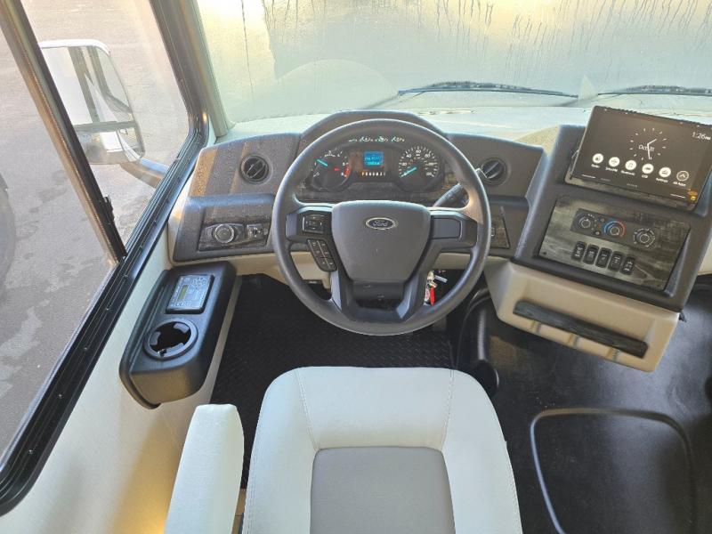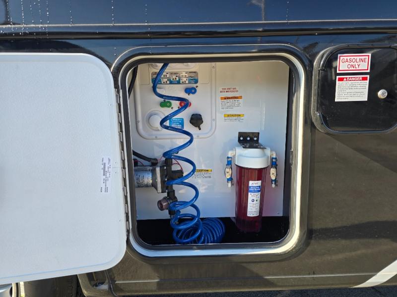 A spacious design and true luxury come together to create these Forest River Georgetown 5 Series Class A gas motorhomes! Their solid surface kitchen countertops, day and night shades throughout, and designer bedspread will have you feeling right at home. The color side and rear cameras help to prevent any dings or bumps while you travel, and the automatic hydraulic leveling jacks will keep your unit leveled wherever you set up. Durable construction consists of a crowned roof, 2" aluminum framed vacuum bonded gel coated sidewalls, plus high density block foam insulation that will allow you to travel at any time of the year. You will appreciate the 50 Amp service, two house batteries, and 6,000-watt Yamaha generator to keep you powered up. An outside shower is also included on all models, along with rotocast storage compartments with drains, a power awning, and so much more!