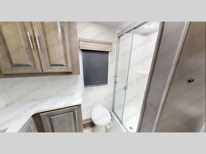 Three slides help to open up this motorhome! The kitchen slide features all of your essentials for cooking delicious meals and you even have a hutch with overhead cabinets to store all of your dishes. The Dream Dinette and Thomas Payne theater seating slide not only open up the living area but also provide comfortable places to eat meals and unwind in front of the 5,000 BTU fireplace and 40" LED TV after a long day of traveling. The half bathroom is close to the kitchen and living area, so you don't have to go far for a quick bathroom break. The master suite will have you feeling right at home with a 72" x 80" king bed slide to lay your head on at night with a dresser across from it that also has a 32" LED TV and wardrobes on either side of it with one of them with an optional washer and dryer. Plus, you even have access to the full rear bathroom which has a shower with a seat to freshen up in each morning!