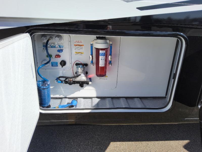 A spacious design and true luxury come together to create these Forest River Georgetown 5 Series Class A gas motorhomes! Their solid surface kitchen countertops, day and night shades throughout, and designer bedspread will have you feeling right at home. The color side and rear cameras help to prevent any dings or bumps while you travel, and the automatic hydraulic leveling jacks will keep your unit leveled wherever you set up. Durable construction consists of a crowned roof, 2" aluminum framed vacuum bonded gel coated sidewalls, plus high density block foam insulation that will allow you to travel at any time of the year. You will appreciate the 50 Amp service, two house batteries, and 6,000 watt Yamaha generator to keep you powered up. An outside shower is also included on all models, along with rotocast storage compartments with drains, a power awning, and so much more!