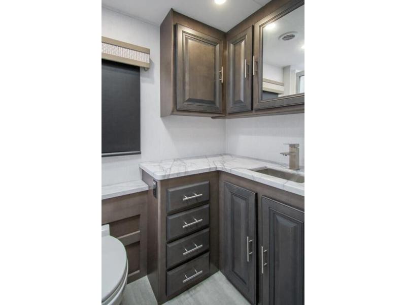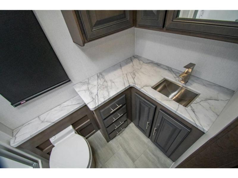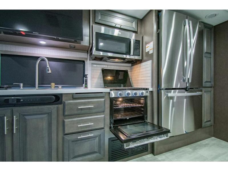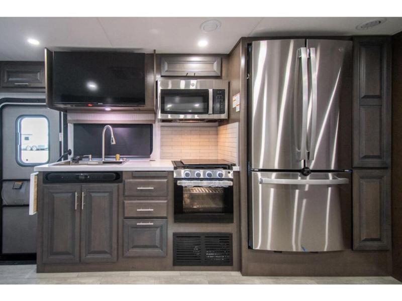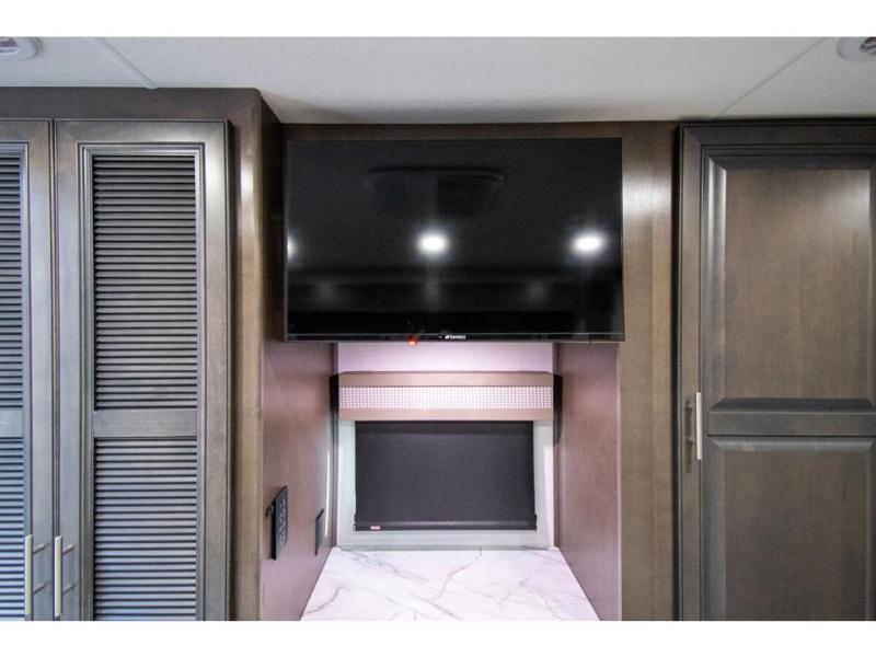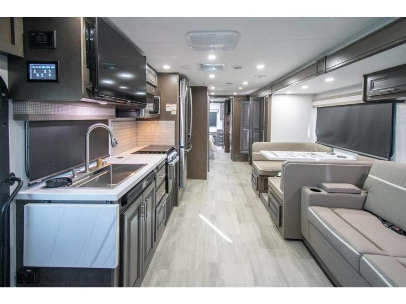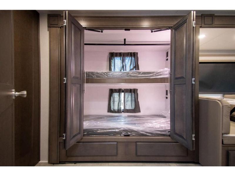 The Georgetown 36F5 measures approximately 39 feet 7 inch in length. Floor plan highlights include (2) slide-out rooms, 2 Full baths, Bunk Beds, a king size bed in the master suite, and a massive living and dining area perfect for the big families and extended stays! It rides the Ford® chassis with high performance 7.3L PFI V-8. You will also find a 6-speed TorqShift® automatic transmission, an updated instrument cluster, automatic headlights and a tilt and telescoping steering wheel. In addition, this RV features the Artic package, forced air heat for holding tanks, CPAP Prep, porcelain toilet, solid surface kitchen countertops and raised panel solid wood cabinet doors.