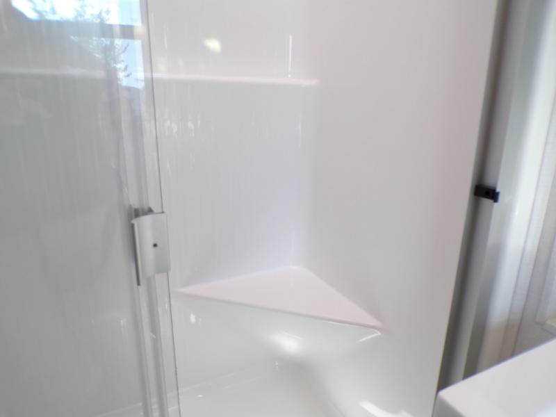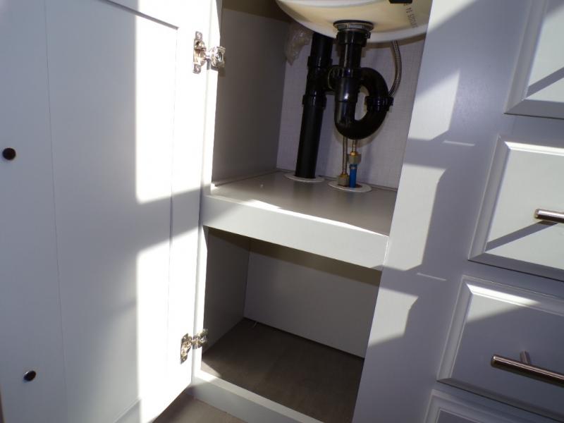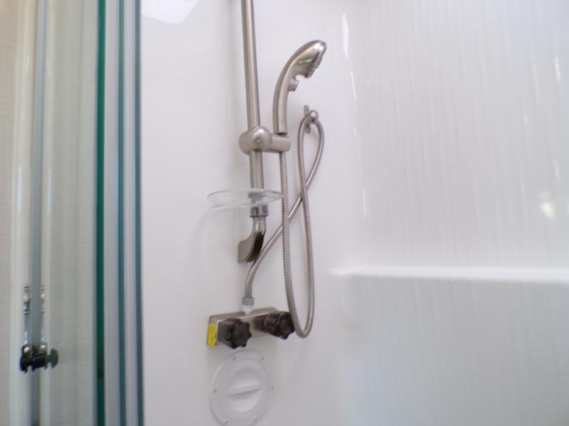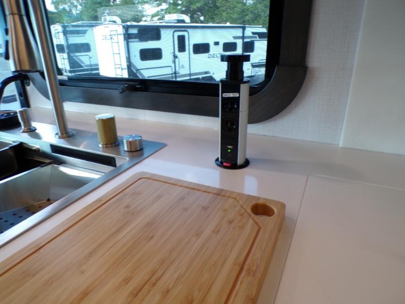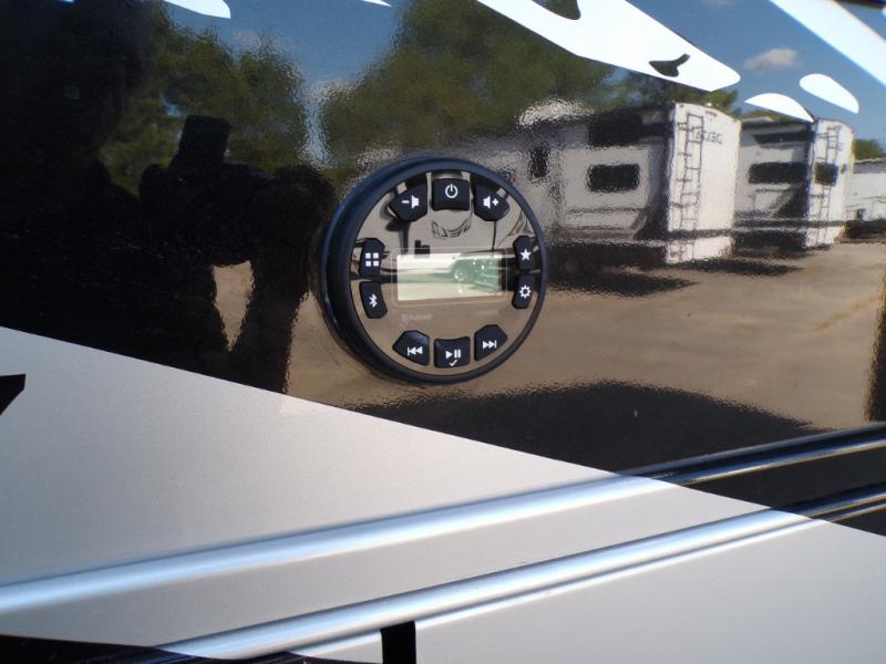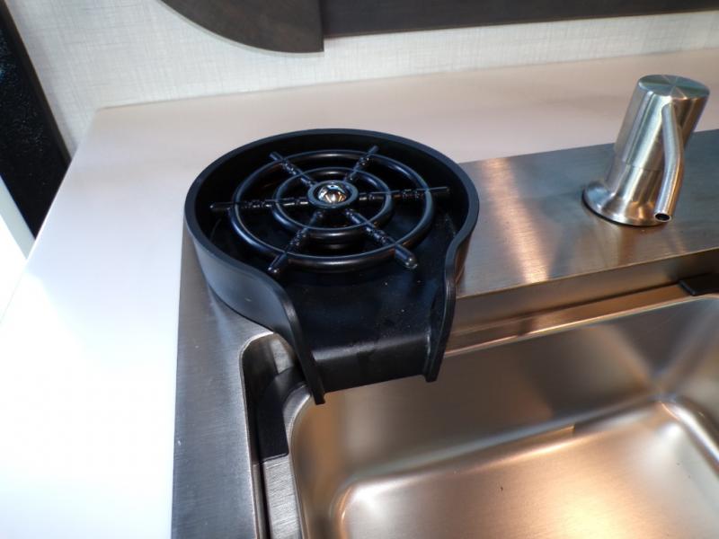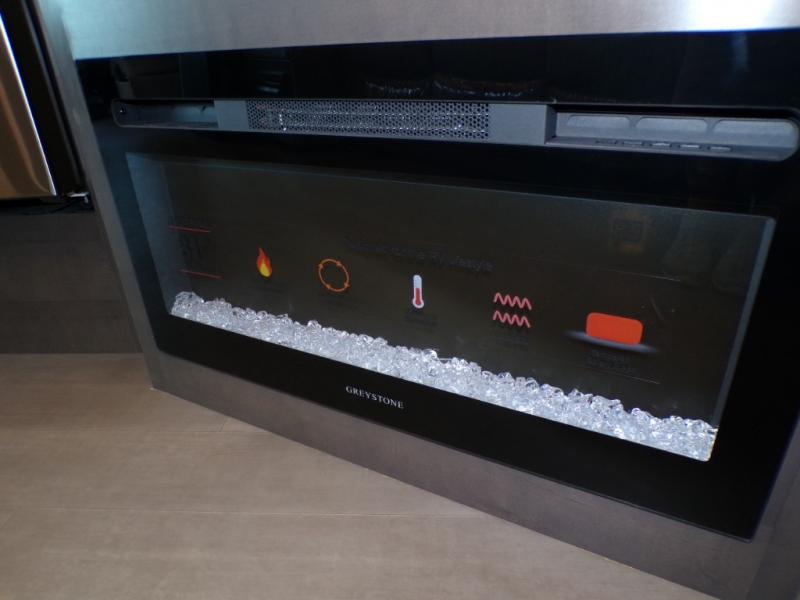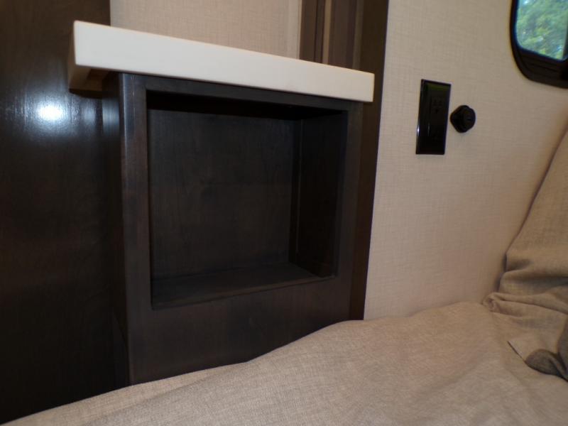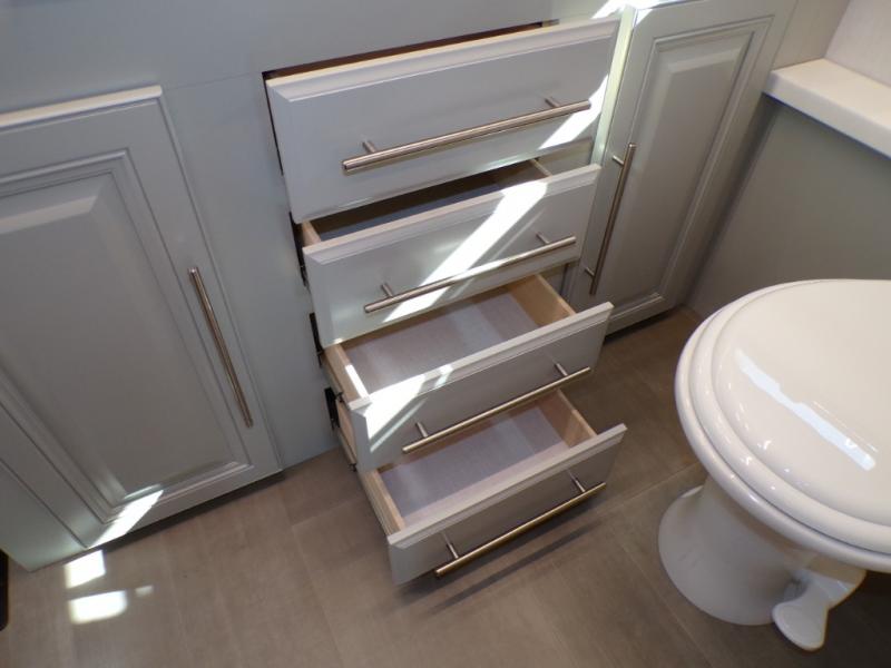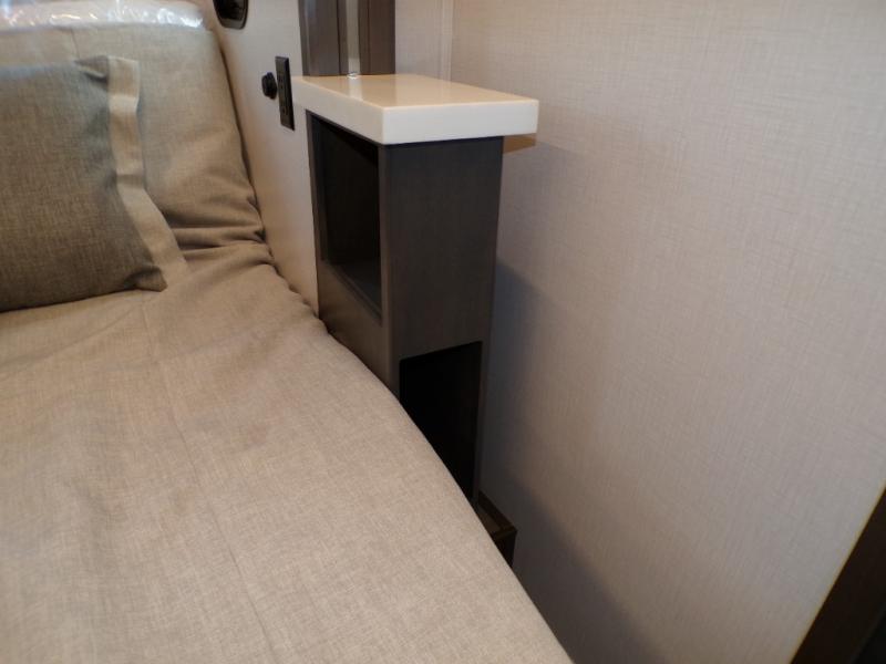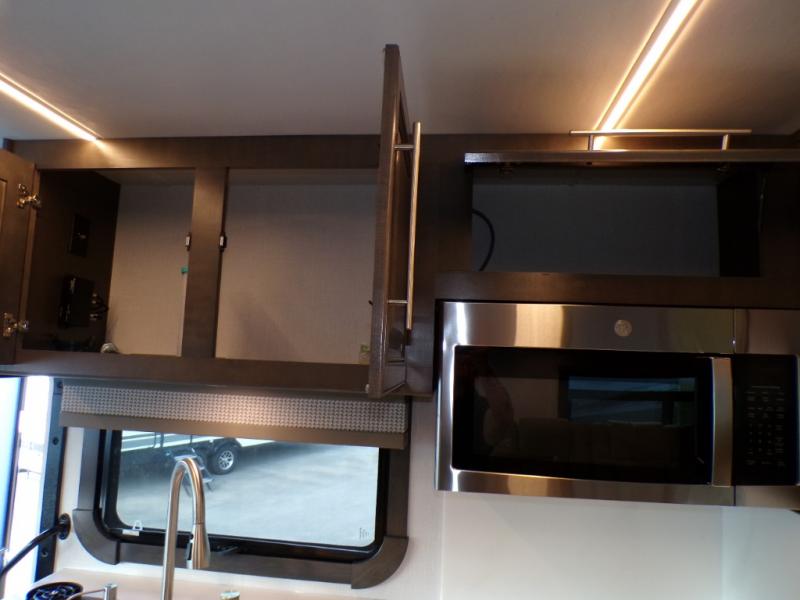 Comfort and convenience are found all throughout this motorhome! Starting with the full rear master bath that has a shower with a seat and a dual sink vanity, plus it leads into the private bedroom. Inside the bedroom is a 72" x 80" king bed slide with overhead cabinets across from a dresser with overhead cabinets and a 32" LED TV, a wardrobe, and another wardrobe that is prepped to add an optional stackable washer and dryer. The half bathroom is conveniently near the fully equipped kitchen so you can get back to creating your best home cooked meals fast. Relax in true comfort each night by either playing games at the booth dinette or on the theater seating that comes with power recline, heat, and massage!
