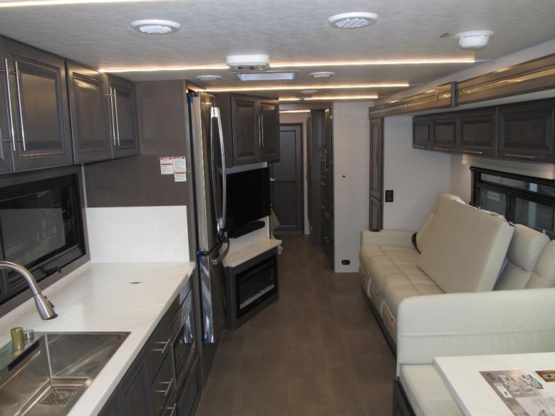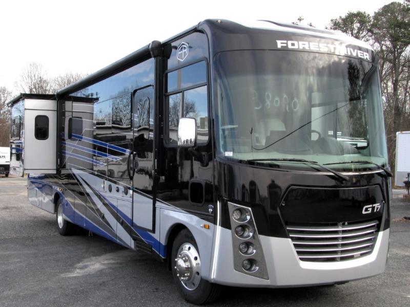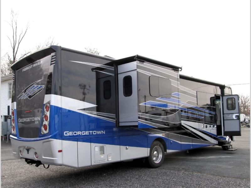 Start exploring your favorite destinations with one of these Forest River Georgetown 7 Series Class A gas motorhomes! Their solid surface kitchen countertops and stainless-steel appliances will have you feeling right at home. There are also day/night shades, wood trim around the windows, a clear glass shower door, and more interior comforts. The Arctic package lets you travel in harsher weather, and the automatic hydraulic 4-point leveling system will keep your unit leveled wherever you set up. The construction consists of aluminum framed vacuum bonded floors and gel coated sidewalls, a crowned roof, and high-density block foam insulation built to support adventures in both warm and cooler months! The drive will be just as enjoyable as the destination with swivel driver's seats, a custom cockpit soft touch dash, and a Sony 10" entertainment system!