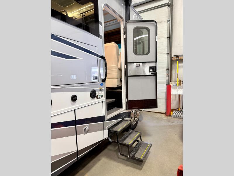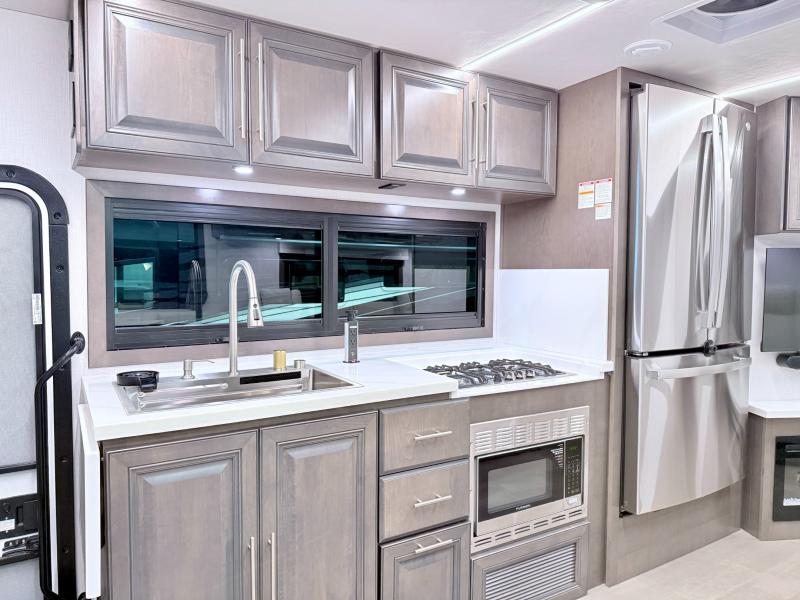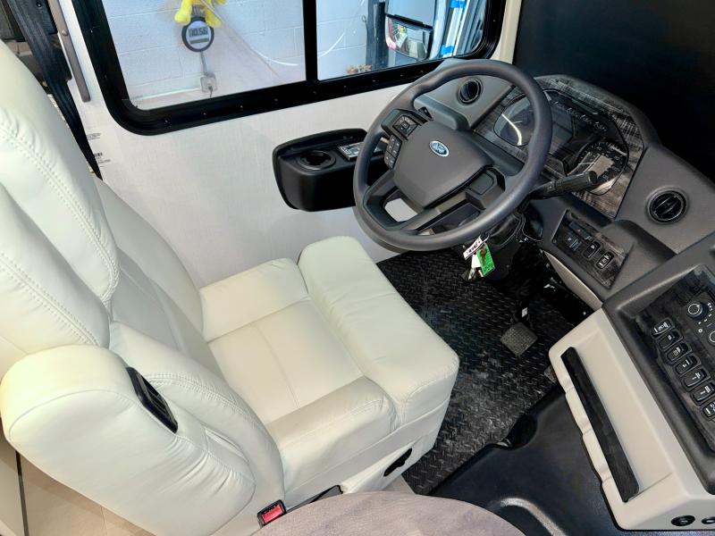 Start exploring your favorite destinations with one of these Forest River Georgetown 7 Series Class A gas motorhomes! Their solid surface kitchen countertops and stainless-steel appliances will have you feeling right at home. There are also day/night shades, wood trim around the windows, a clear glass shower door, and more interior comforts. The Arctic package lets you travel in harsher weather, and the automatic hydraulic 4-point leveling system will keep your unit leveled wherever you set up. The construction consists of aluminum framed vacuum bonded floors and gel coated sidewalls, a crowned roof, and high-density block foam insulation built to support adventures in both warm and cooler months! The drive will be just as enjoyable as the destination with swivel driver's seats, a custom cockpit soft touch dash, and a Sony 10" entertainment system!