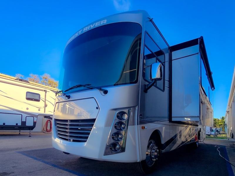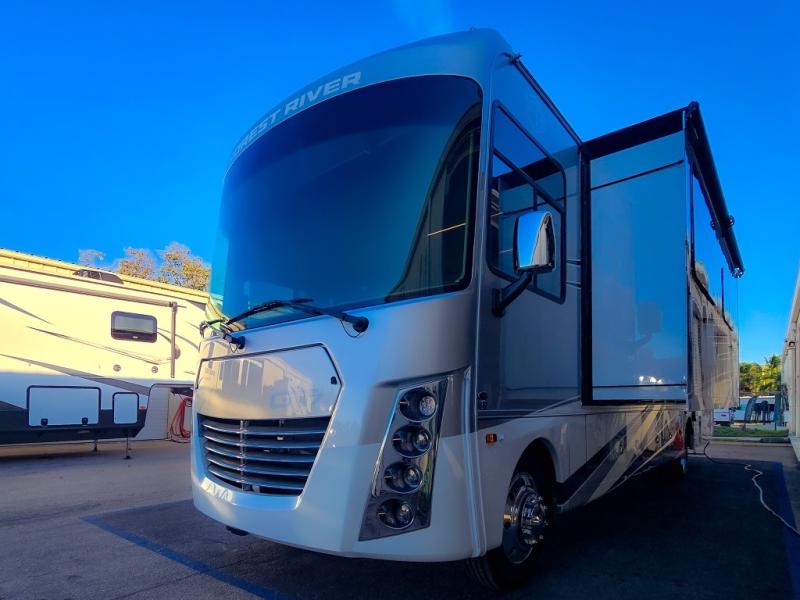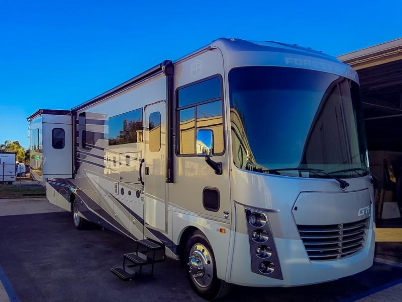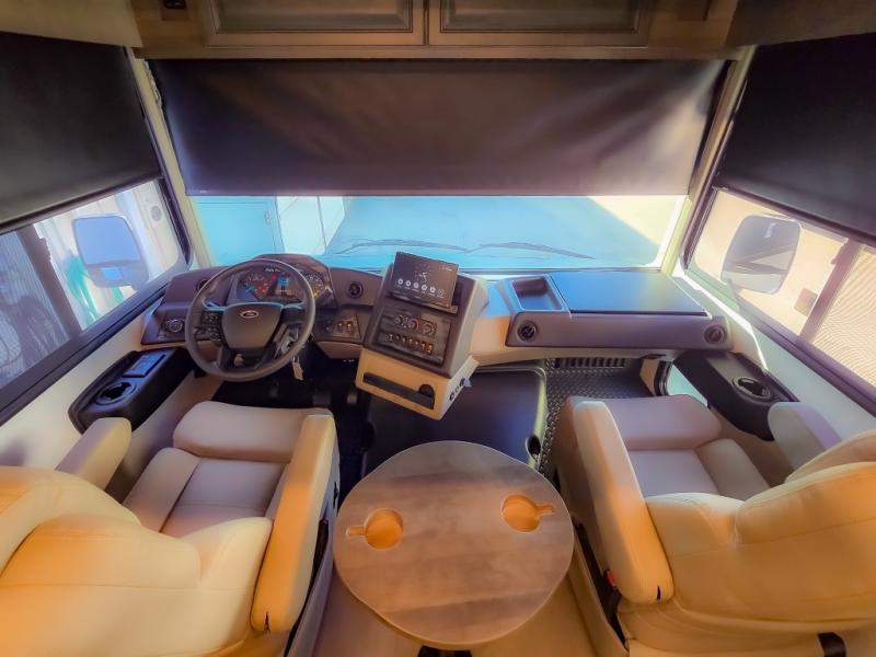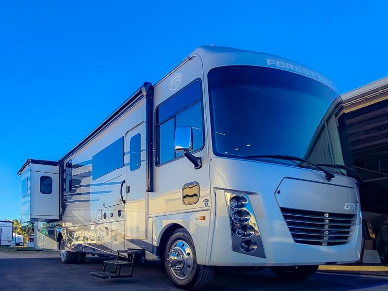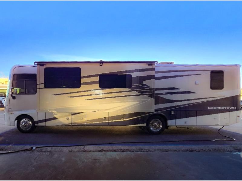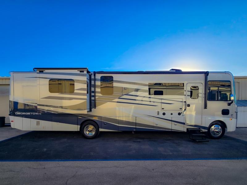 Start exploring your favorite destinations with one of these Forest River Georgetown 7 Series Class A gas motorhomes! Their solid surface kitchen countertops and stainless-steel appliances will have you feeling right at home. There are also day/night shades, wood trim around the windows, a clear glass shower door, and more interior comforts. The Arctic package lets you travel in harsher weather, and the automatic hydraulic 4-point leveling system will keep your unit leveled wherever you set up. The construction consists of aluminum framed vacuum bonded floors and gel coated sidewalls, a crowned roof, and high-density block foam insulation built to support adventures in both warm and cooler months! The drive will be just as enjoyable as the destination with swivel driver's seats, a custom cockpit soft touch dash, and a Sony 10" entertainment system!