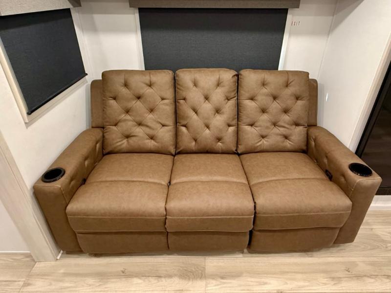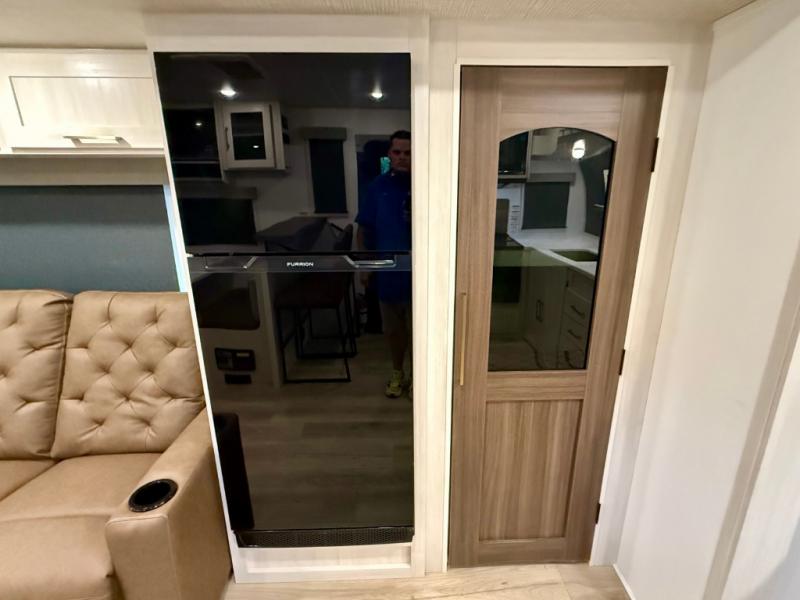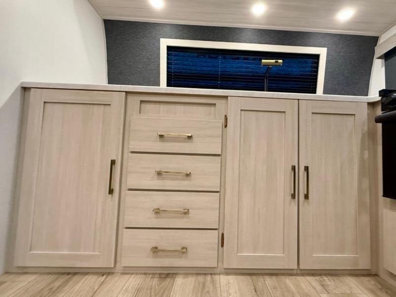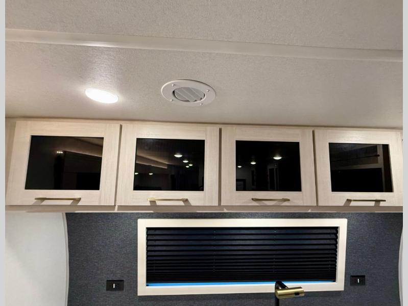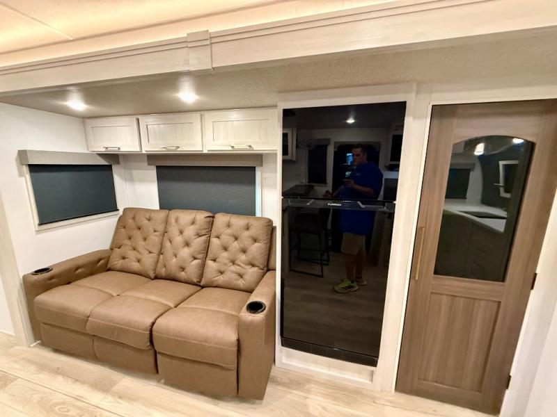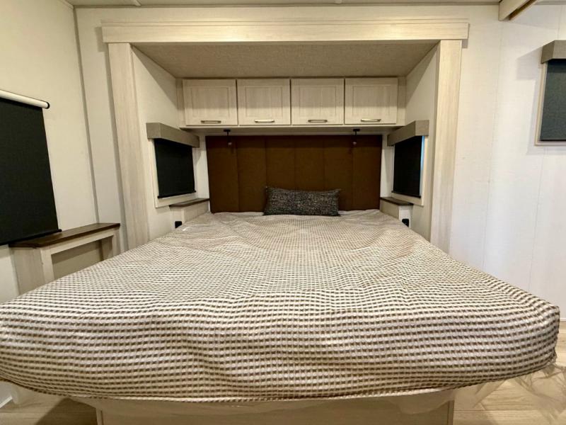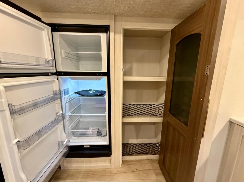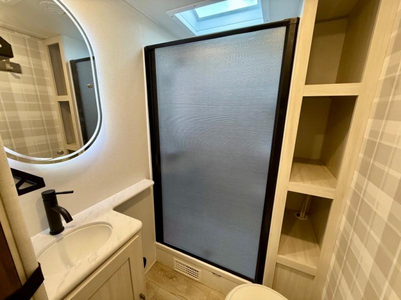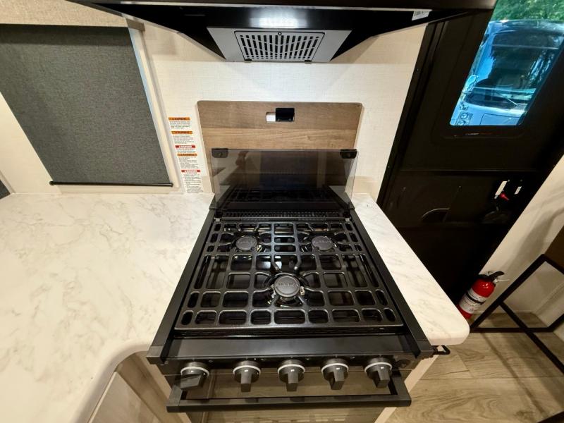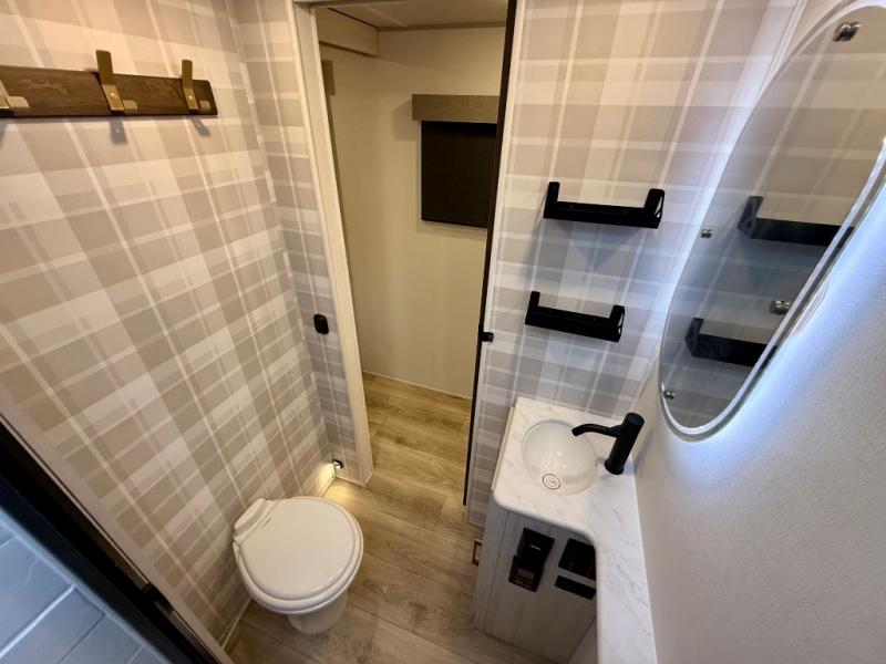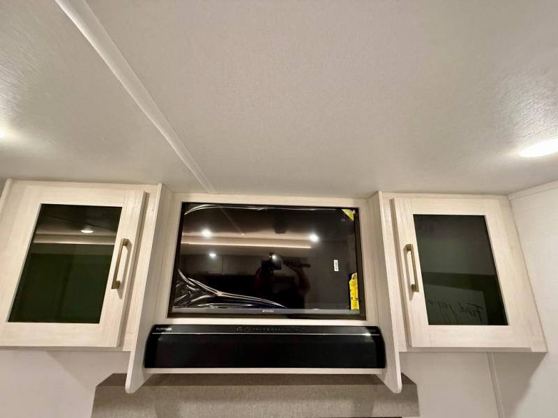 This travel trailer is a masterpiece of comfort, style, and functionality. Take the party outside with the outdoor kitchen, perfect for family dining, socializing, and making unforgettable memories! Retreat to the serene bedroom, featuring a king bed, spacious wardrobe, and overhead storage for effortless organization, plus, cozy up by the warm fireplace on chilly nights. Moreover, the incredible kitchen is a culinary dream, equipped with a pantry, 10 cu. refrigerator, overhead cabinets, and a countertop with stylish bar stools. The living room is a haven of relaxation, boasting a vibrant LED TV, overhead cabinets, and theater seating. Also, share meals with loved ones at the convenient dinette. Finally, bath in the amazing full bathroom, perfect for cleaning up after a long day in the woods.