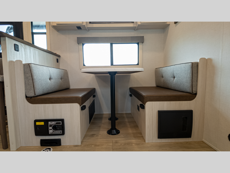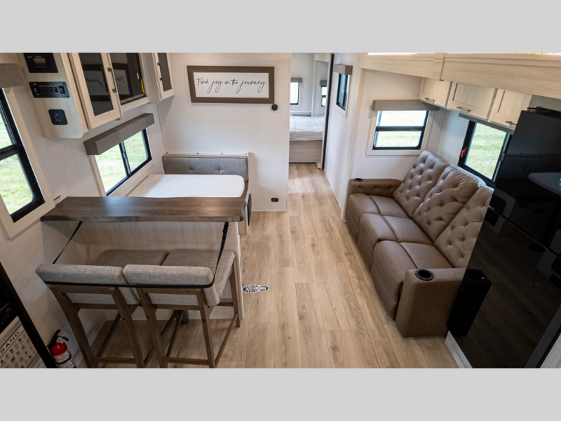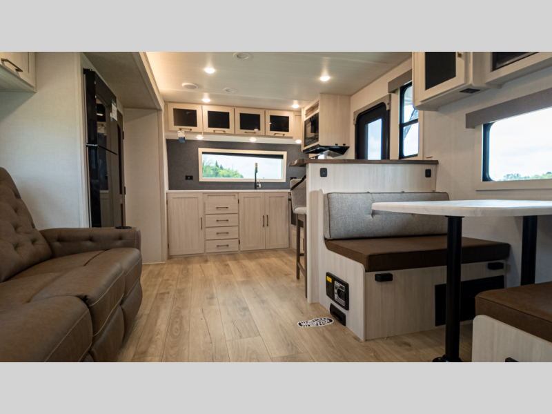 - Opposing Slides: True open-concept living with recliners and booth dinette