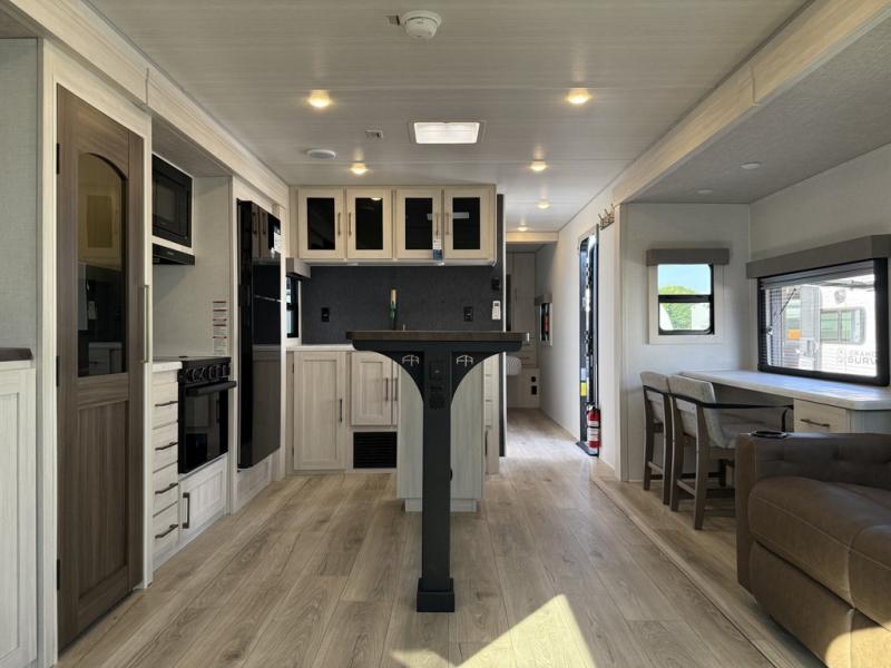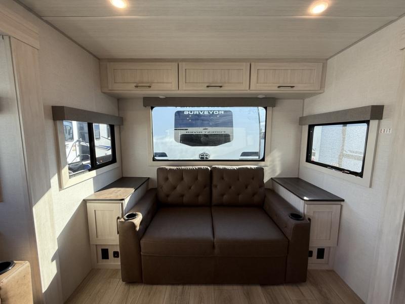 Step into comfort and adventure with the 2026 Forest River Grand Surveyor 290RLDS—a travel trailer designed to feel like home while taking you anywhere your journey leads. At 36 feet 7 inches in length, this spacious RV offers an open rear-living floorplan that blends style, convenience, and durability. Large panoramic windows flood the living area with natural light, highlighting the dual opposing slide-outs that expand your space for entertaining or relaxing. The modern kitchen is fully equipped with premium appliances, abundant counter space, and thoughtful storage, making meal preparation a pleasure whether you’re at the campground or off the beaten path. Unwind in the theater seating or gather around the freestanding dinette before retreating to the private front bedroom, complete with a queen bed and wardrobe storage. Built with a lightweight yet durable frame, the Grand Surveyor 290RLDS balances an impressive UVW of 8,083 pounds with a 1,500-pound cargo carrying capacity, so you can bring along all the essentials for extended adventures. With dual awnings for outdoor living, 40-gallon fresh and gray water capacities, and Forest River’s trusted craftsmanship, this travel trailer delivers comfort, quality, and value for families or couples seeking unforgettable experiences on the road.