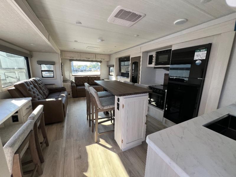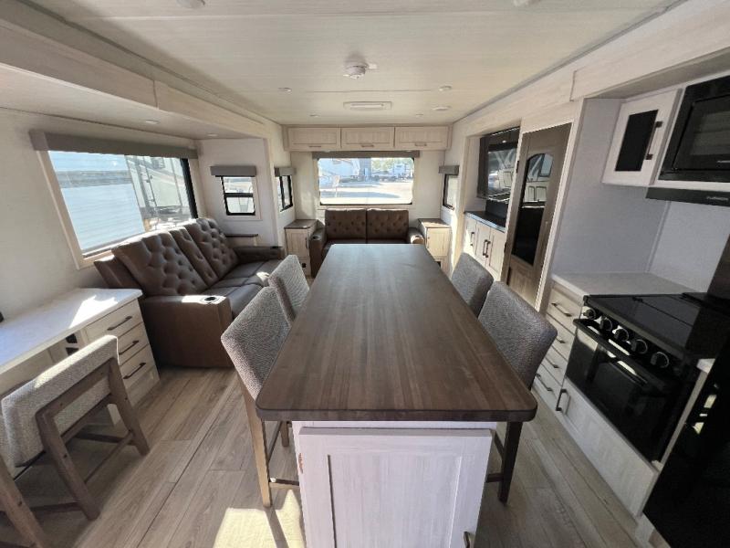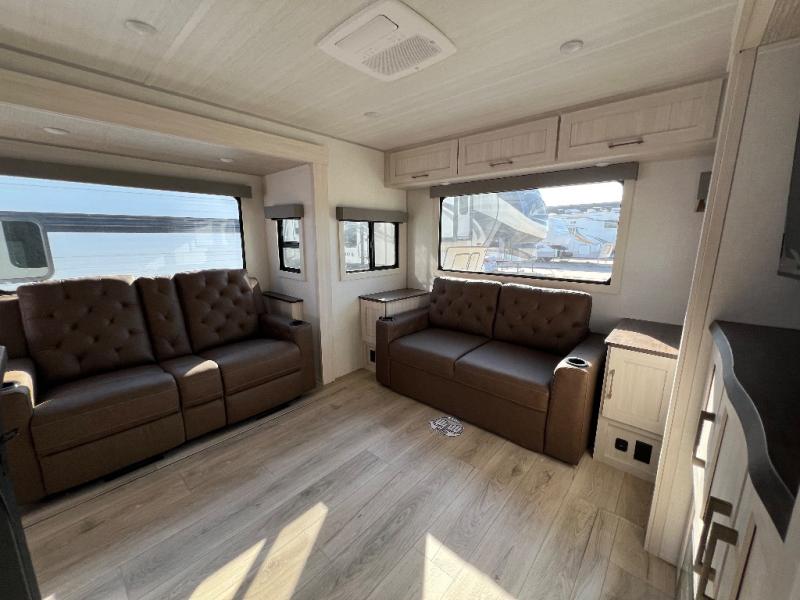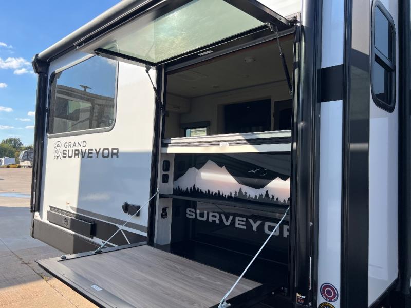Step into comfort and adventure with the 2026 Forest River Grand Surveyor 290RLDS—a travel trailer designed to feel like home while taking you anywhere your journey leads. At 36 feet 7 inches in length, this spacious RV offers an open rear-living floorplan that blends style, convenience, and durability. Large panoramic windows flood the living area with natural light, highlighting the dual opposing slide-outs that expand your space for entertaining or relaxing. The modern kitchen is fully equipped with premium appliances, abundant counter space, and thoughtful storage, making meal preparation a pleasure whether you’re at the campground or off the beaten path. Unwind in the theater seating or gather around the freestanding dinette before retreating to the private front bedroom, complete with a king bed and wardrobe storage. Built with a lightweight yet durable frame, the Grand Surveyor 290RLDS balances an impressive UVW of 8,083 pounds with a 1,500-pound cargo carrying capacity, so you can bring along all the essentials for extended adventures. With dual awnings for outdoor living, 40-gallon fresh and gray water capacities, and Forest River’s trusted craftsmanship, this travel trailer delivers comfort, quality, and value for families or couples seeking unforgettable experiences on the road.